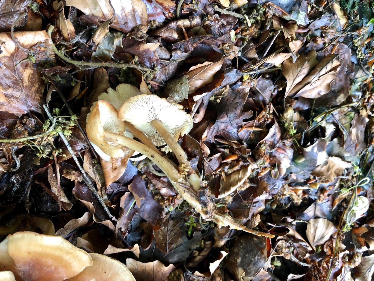 Fundort war am Wegrand in der Laubstreu, Begleitbäume Buchen, saurer Boden, beide Gruppen standen dicht nebeneinander und wuchsen jeweils büschelig.