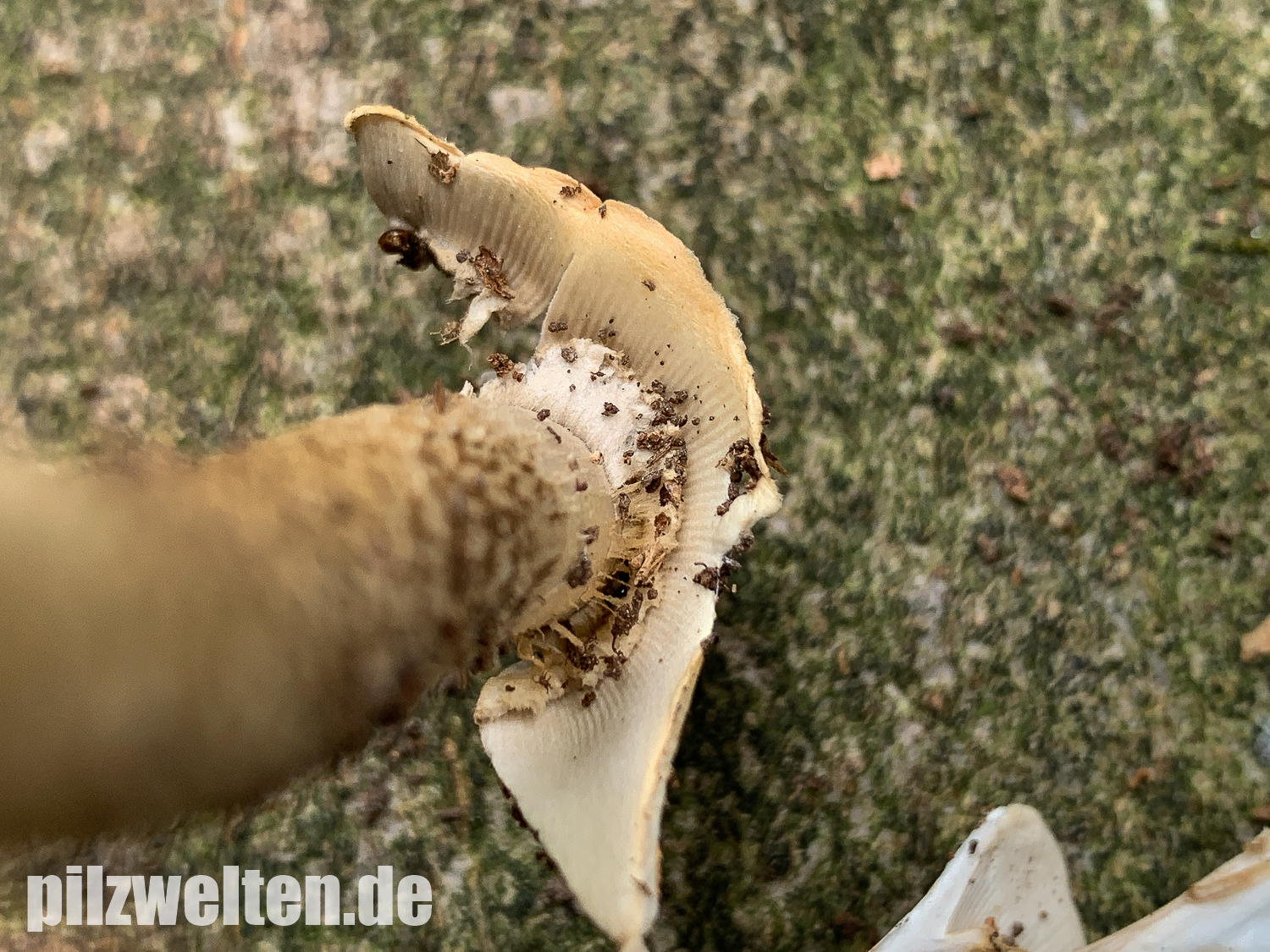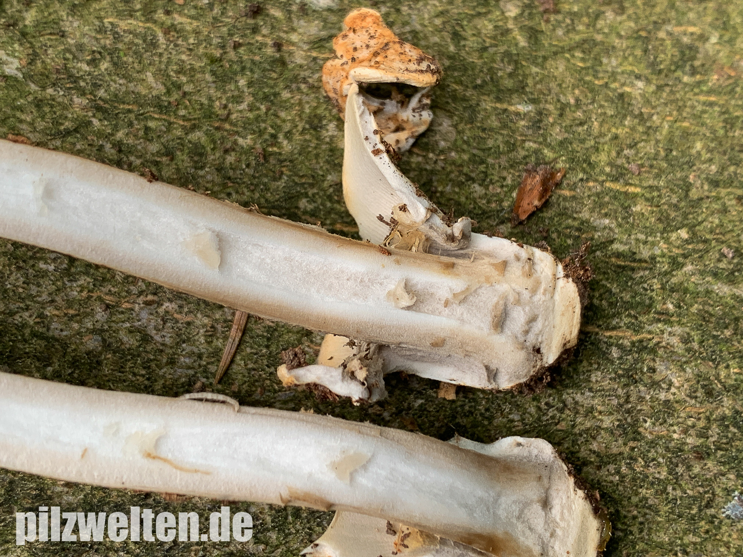 Wir sind gespannt, was Ihr anhand der Bilder erkennen könnte. Vielleicht haben wir irgendein (Alleinstellungs-)Merkmal übersehen, das trotz der Hutfarbe definitiv auf A. battarrae, oder vielleicht auf eine andere Scheidenstreiflings-Art hinweist?