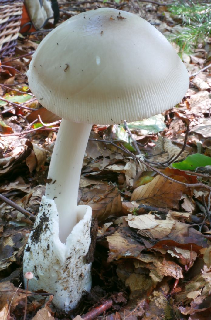 - Ansonsten alles "typisch Scheidenstreifling" (keine Knolle, geriefter Hutrand, etc.)