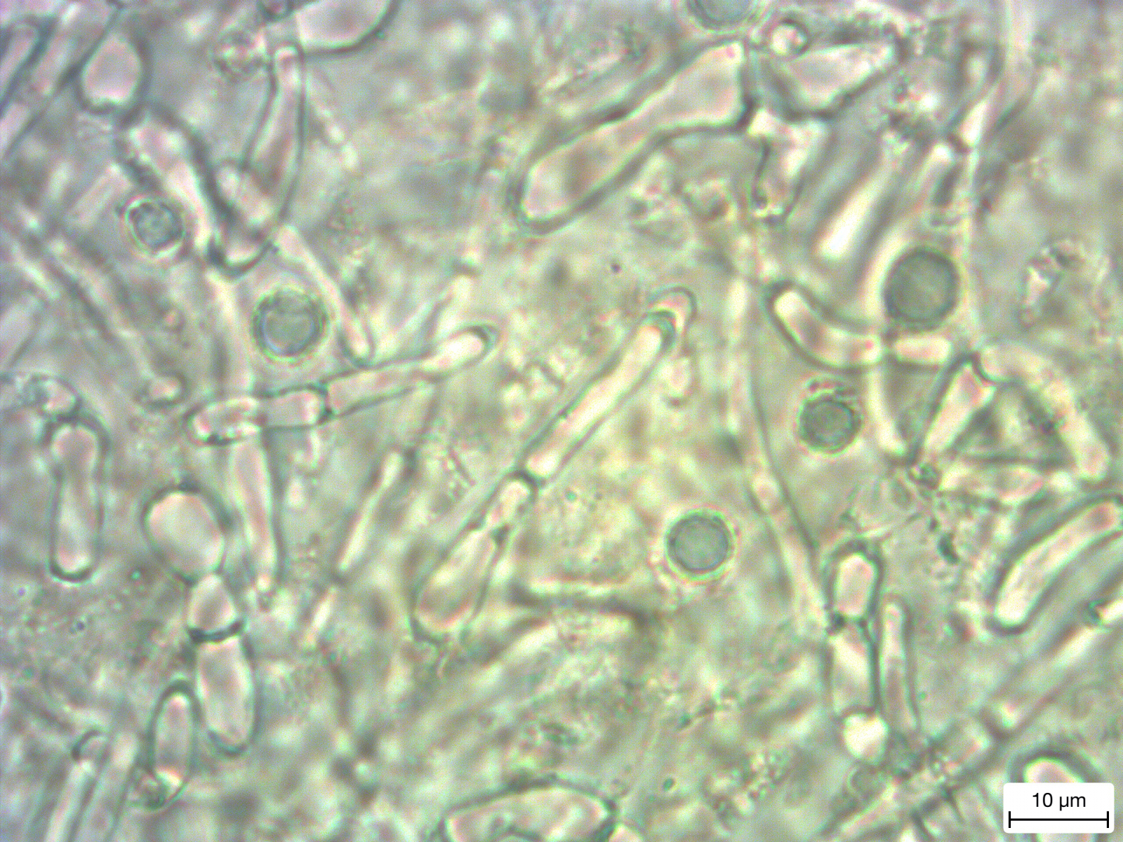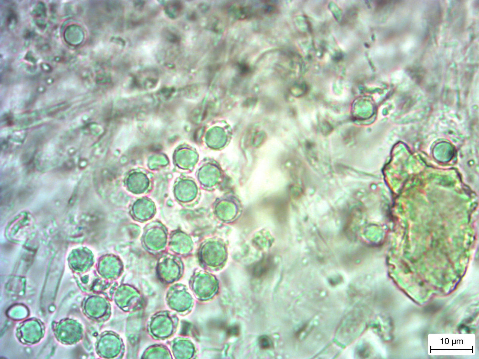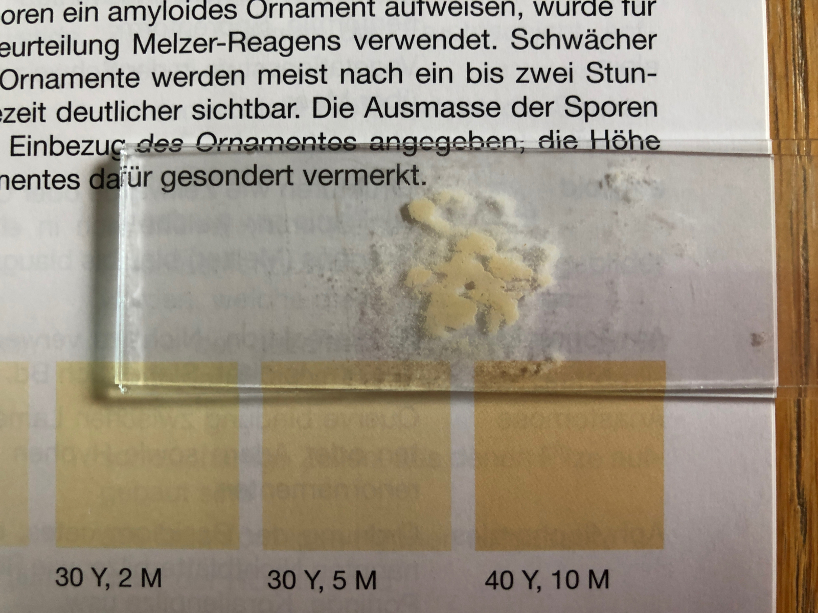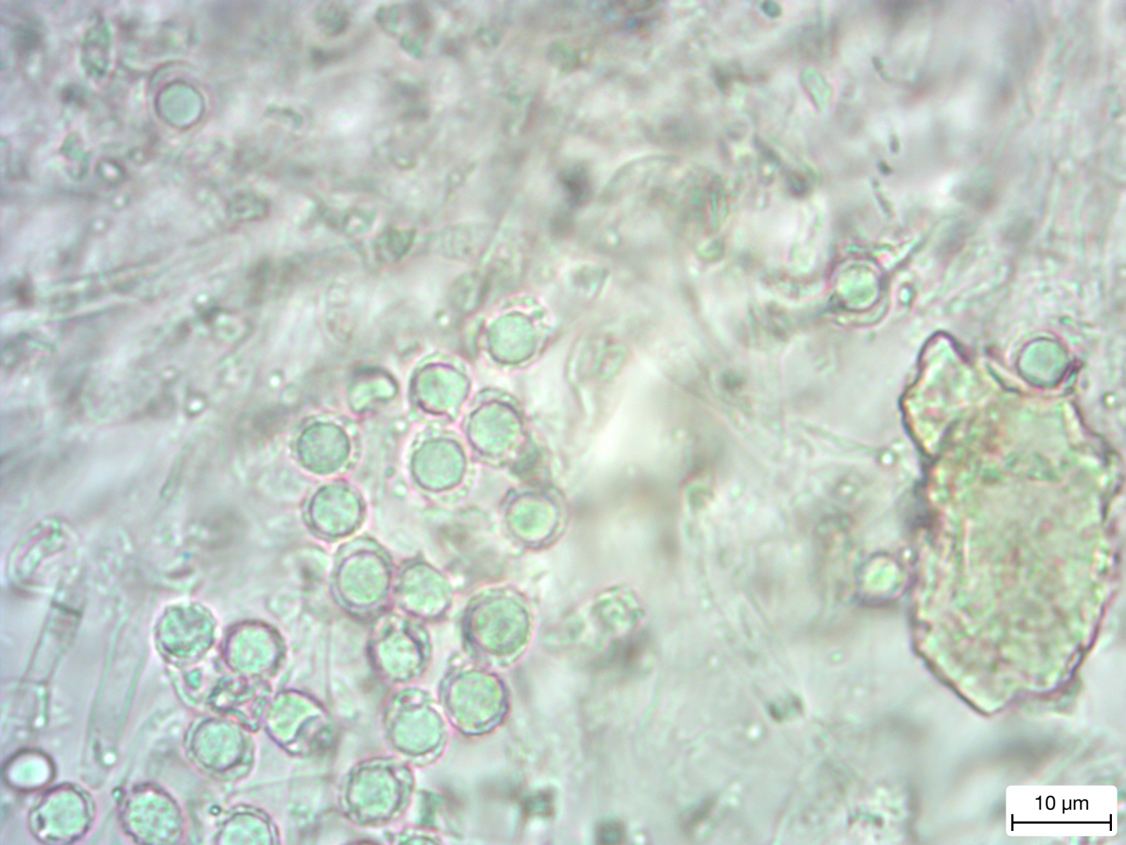 den Wieseltäubling kaufe ich dir ab, auch wegen der starken Eisensulfat-Reaktion. Die Sporen werden ohne Ornament und in Wasser gemessen. Ich bin selber nicht so ein Messfanatiker und schaue nur, ob die Sporen auffallend klein oder groß sind und ob sie eher rund oder elliptisch sind. Da ich außerdem von Haus aus faul bin, lasse ich sie zum Messen meist in Melzers, in welchem sie wegen des Ornamentes ohnehin liegen, ich schäme mich aber deswegen. Dafür nehme ich für die Huthaut grundsätzlich Kongorot statt Wasser, da sieht man die Zellwände und Septen einfach am besten.