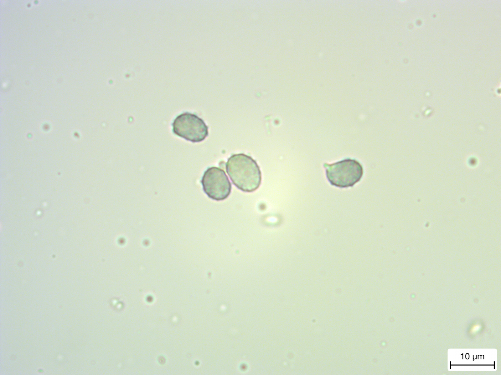 Sporen aus Sporenabwurf - Kann mir jemand sagen, warum die so unterschiedlich groß, bzw. was das für verschieden große Kugeln sind?