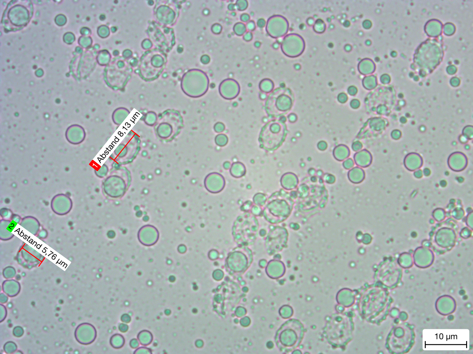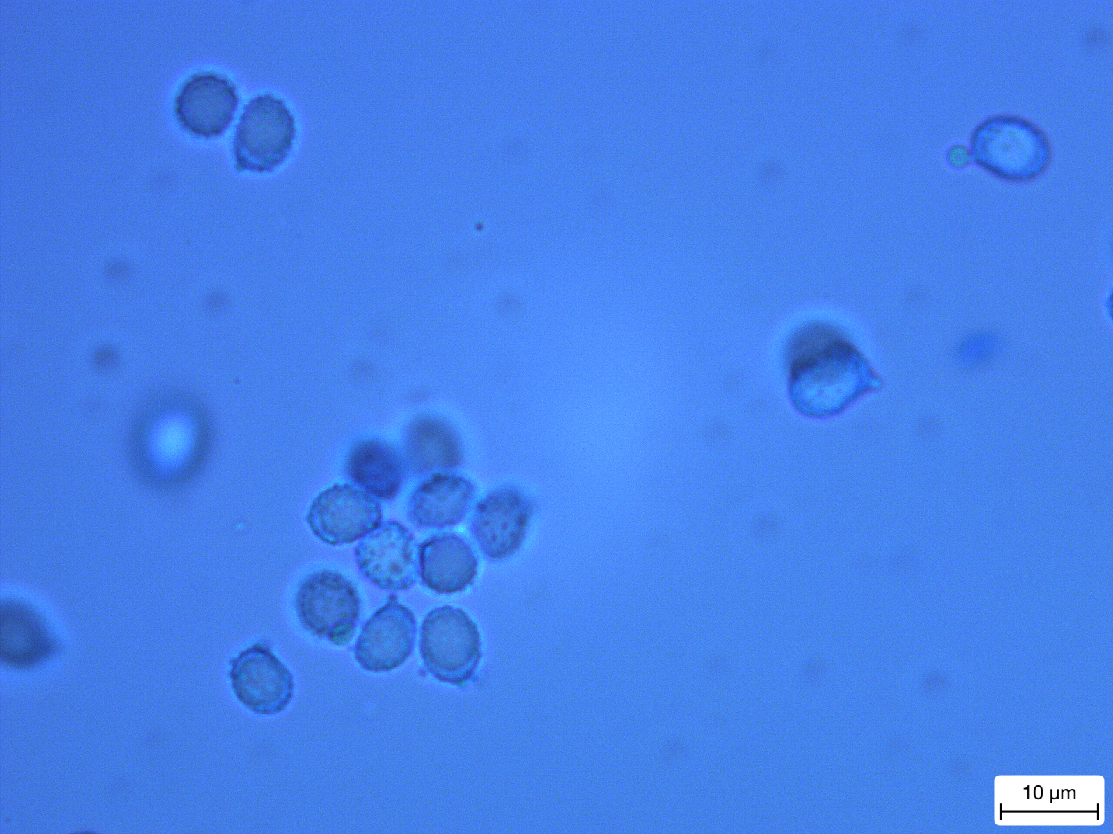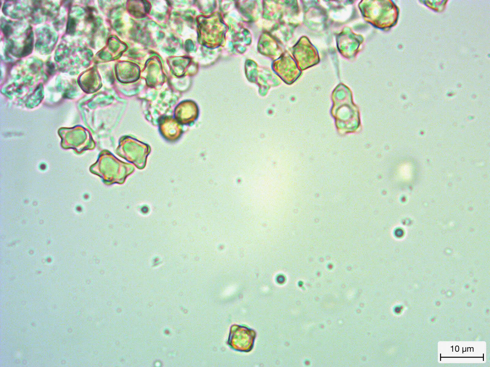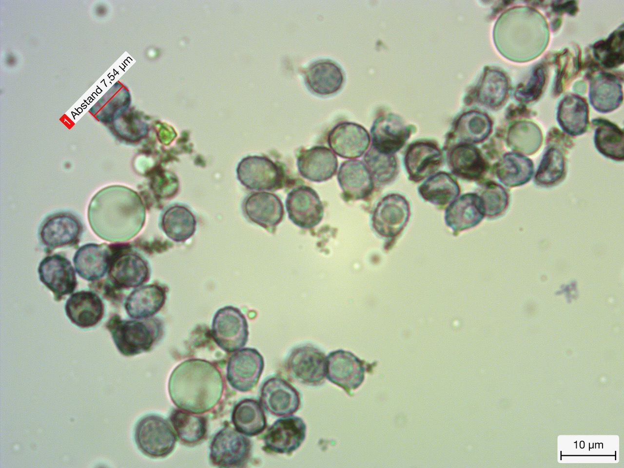 Sporen aus Sporenabwurf - Kann mir jemand sagen, warum die so unterschiedlich groß, bzw. was das für verschieden große Kugeln sind?