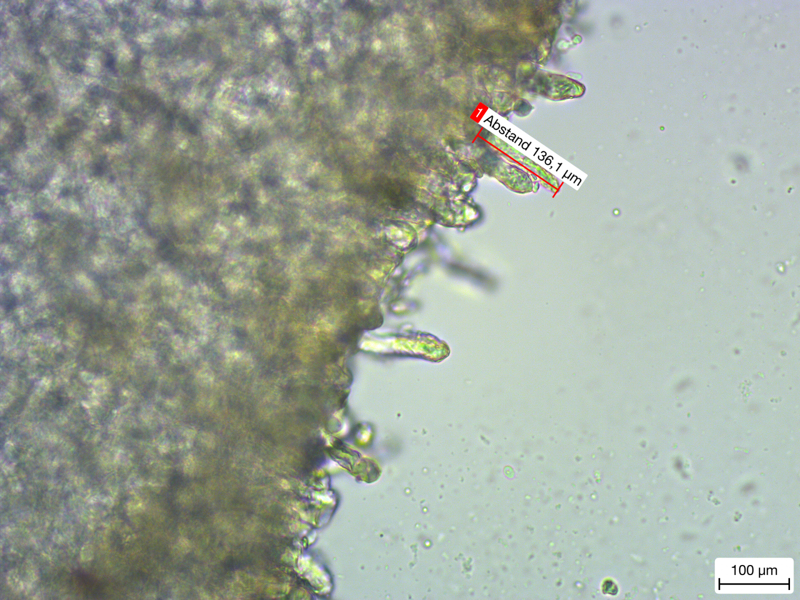 Hallo Ditte. Ich hatte im Eingangsfred Blödsinn geschrieben. Das Mikroskop war wegen der Bauarbeiten eingemottet. Jetzt verstehe ich Deine Frage besser. Aber wie auch immer ich habe den Pilz zerlegt und mit den scharfen Augen betrachtet.