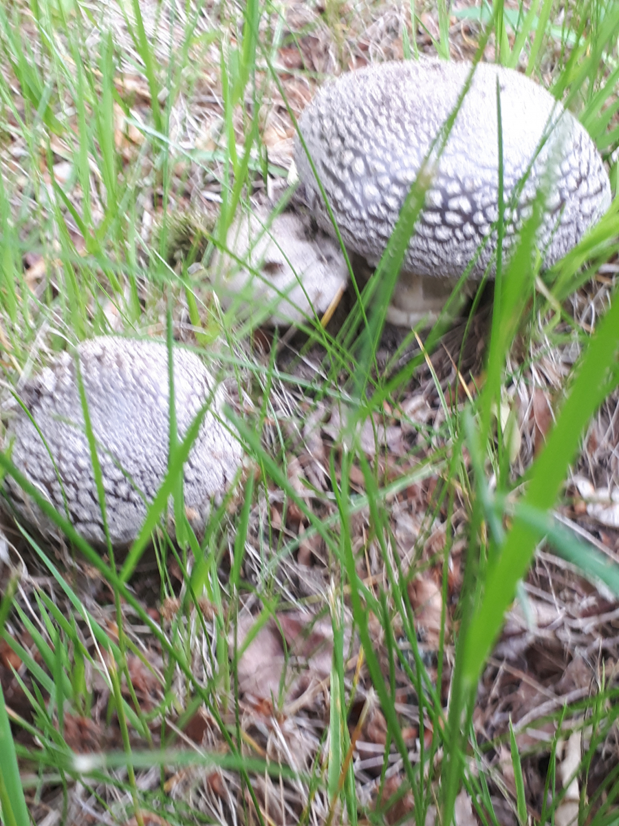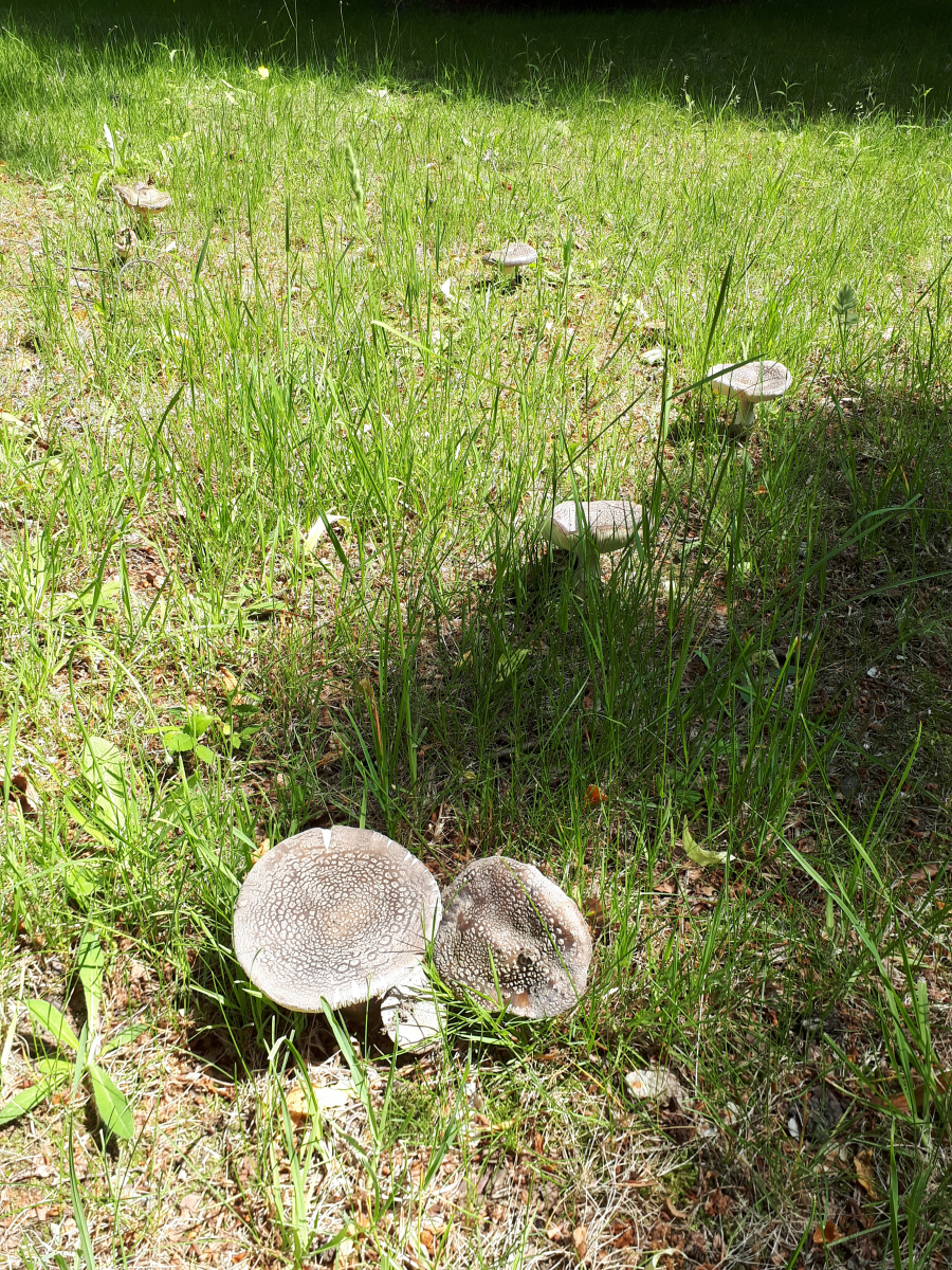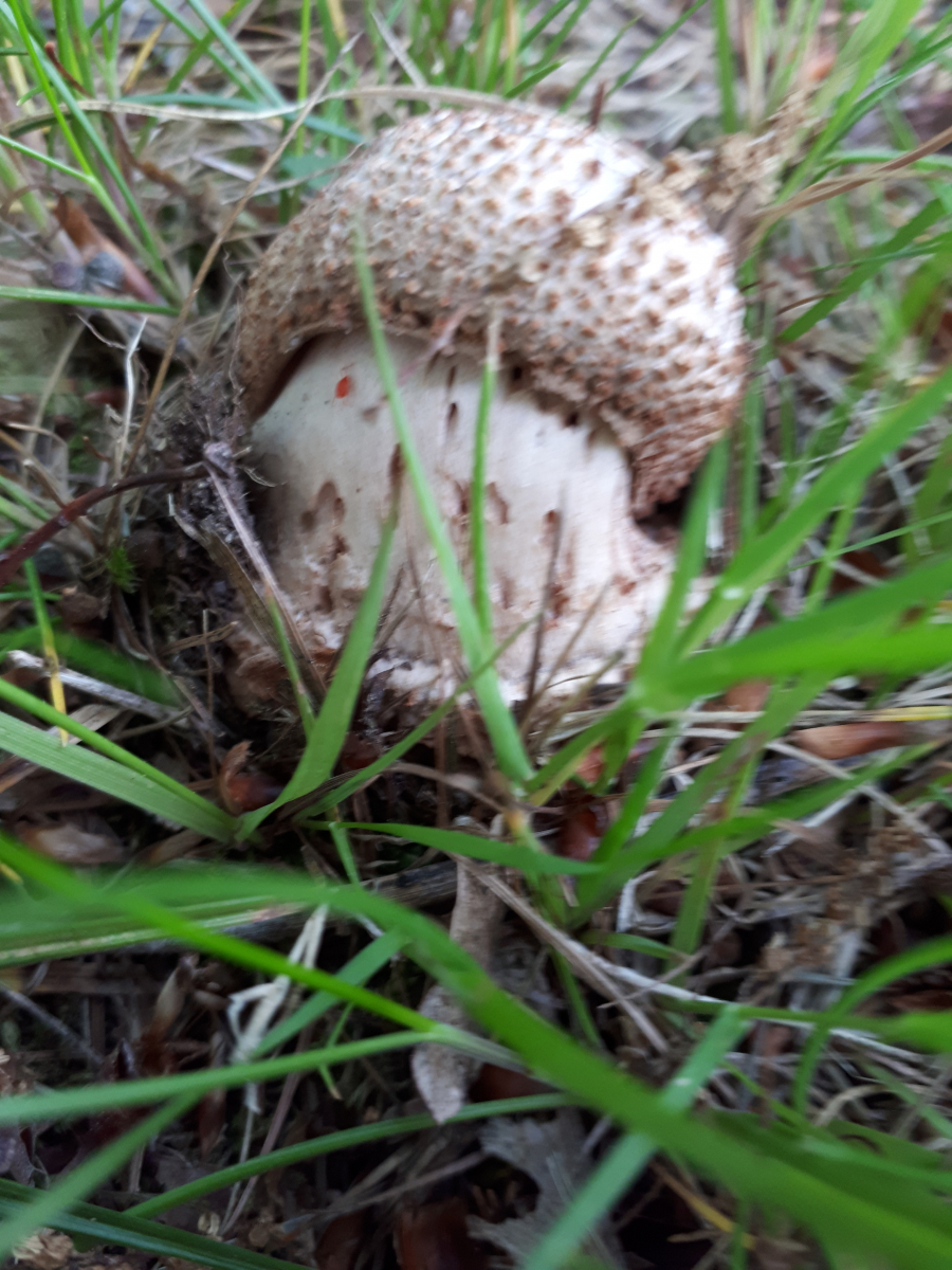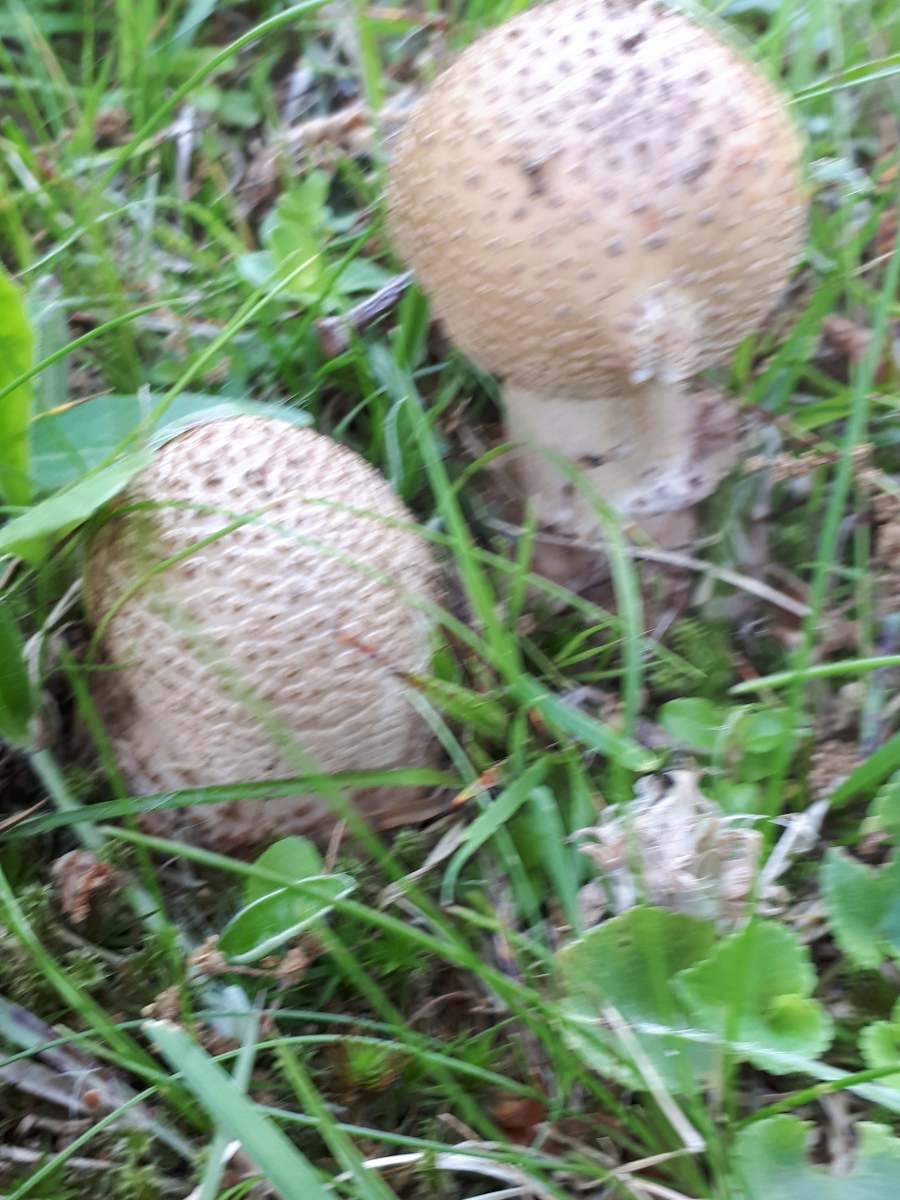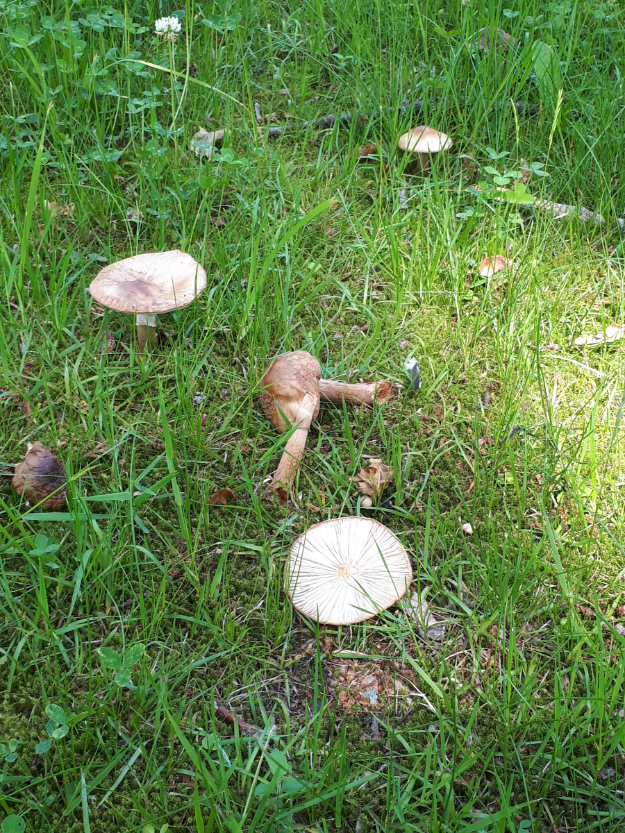 Und dann gings los: Graue Wulstlinge oder dunkle Perlpilze, beide Arten gibt es dort. Da ich alle Pilze stehengelassen habe, unterblieb die genaue Bestimmung.
