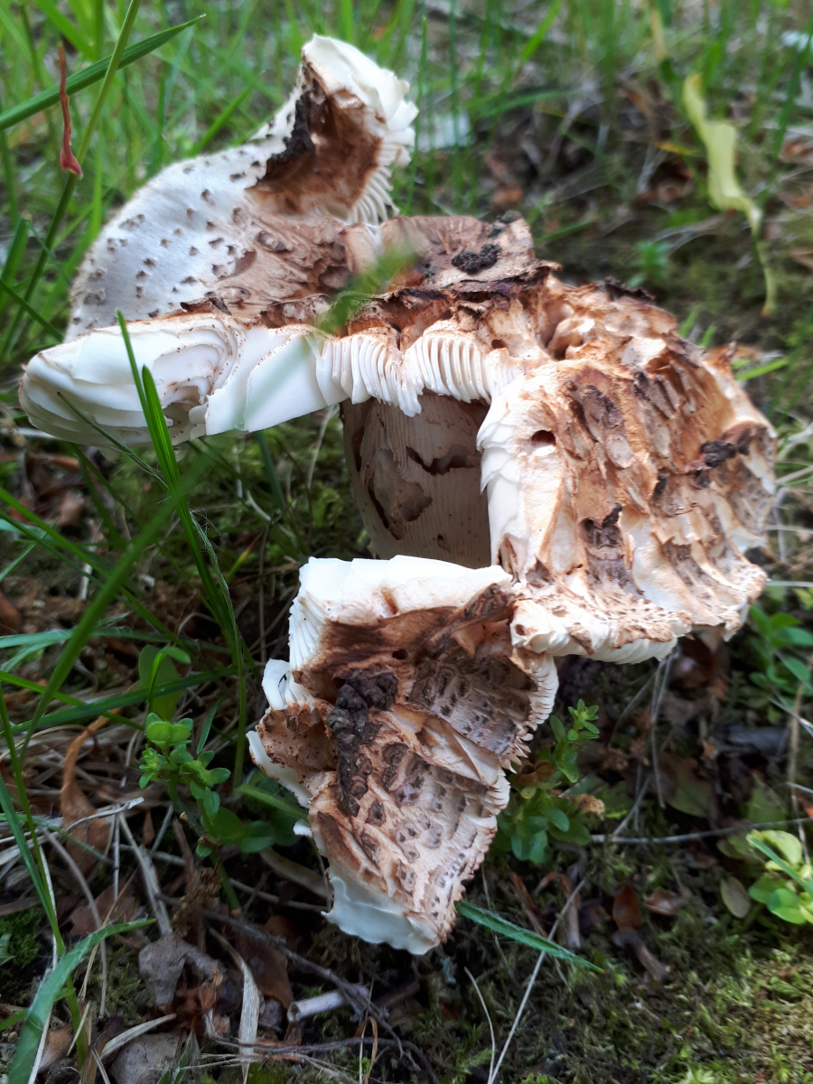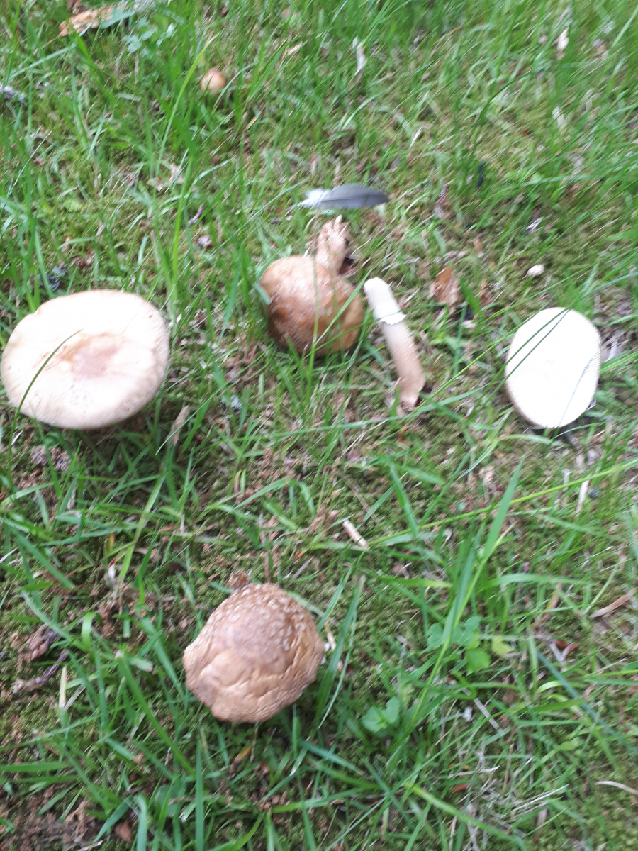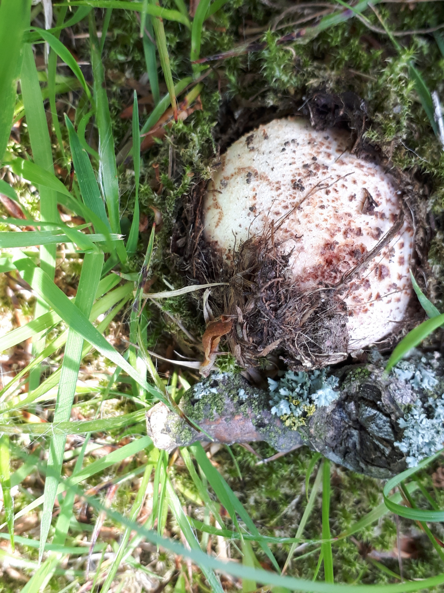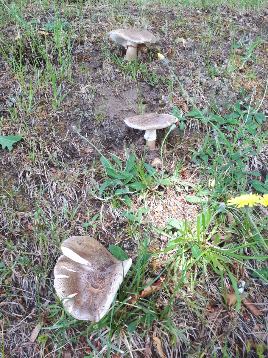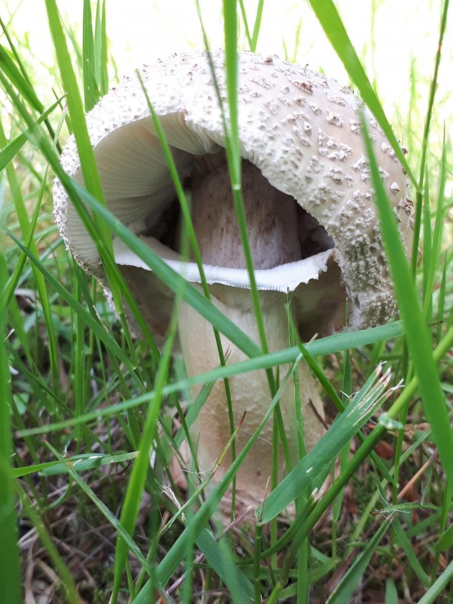 Und dann gings los: Graue Wulstlinge oder dunkle Perlpilze, beide Arten gibt es dort. Da ich alle Pilze stehengelassen habe, unterblieb die genaue Bestimmung.