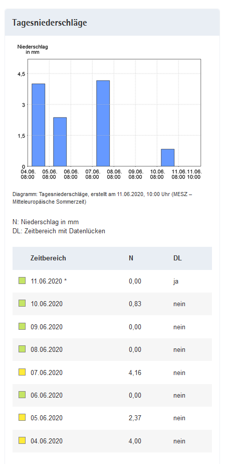 Als erstes wieder einen Blick auf unser Ombrometer - Niederschlagsmäßig haben wir zwar feinen Landregen abbekommen, aber die Menge war nicht allzu viel, aber besser wie nüscht.