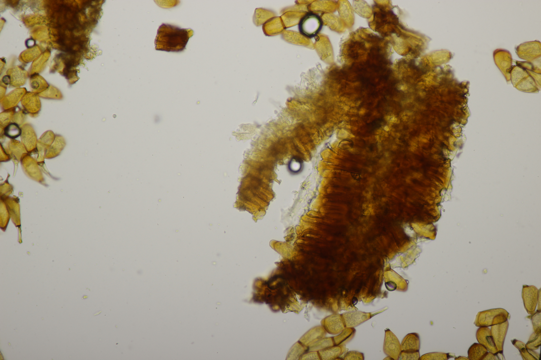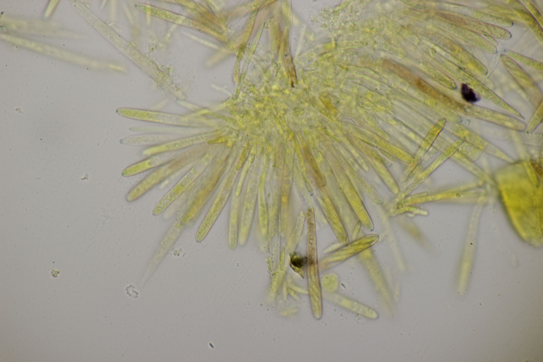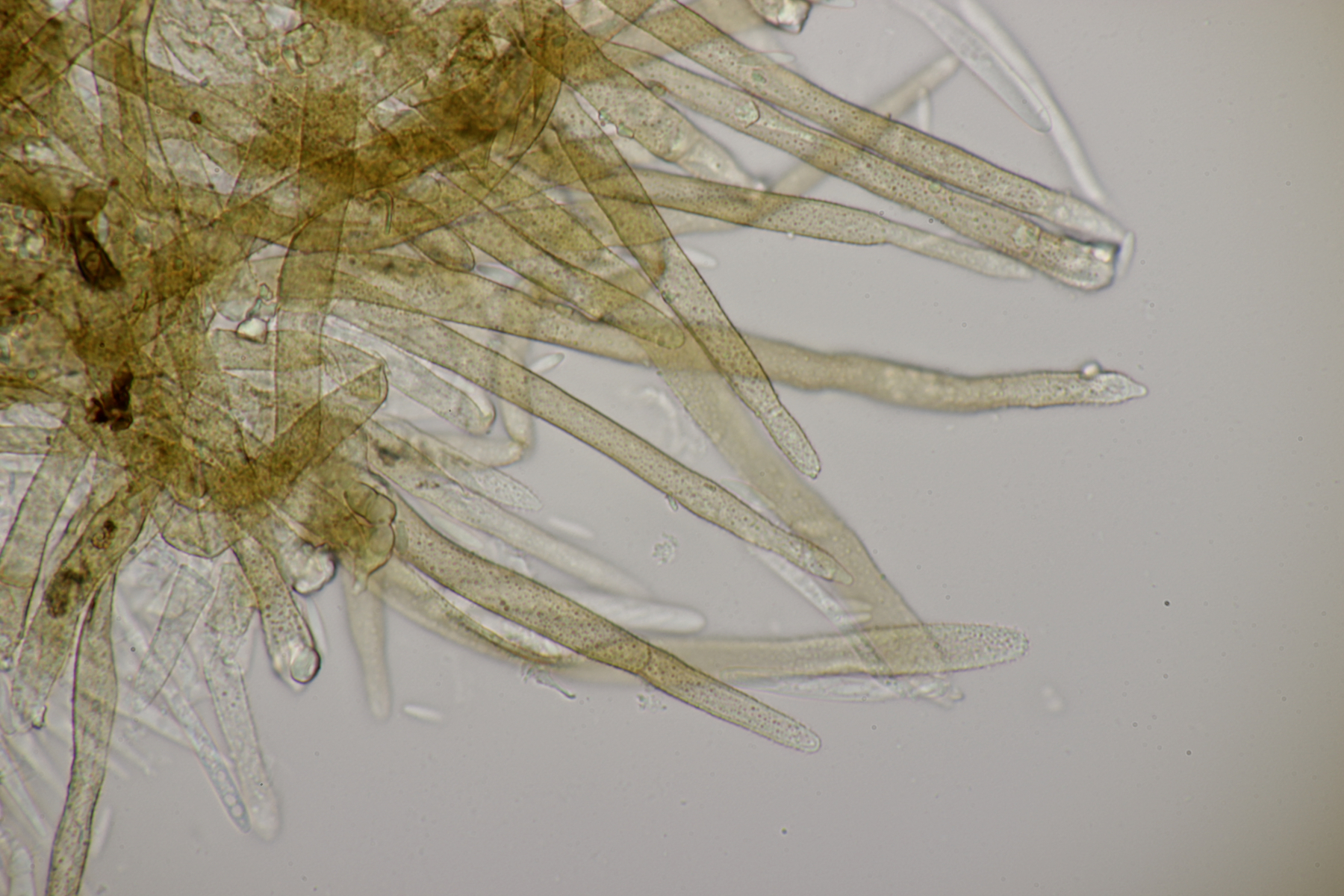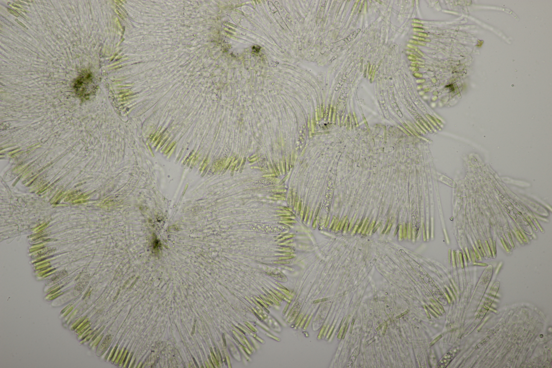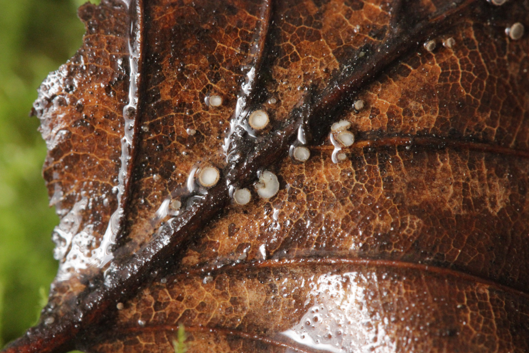 1. Brunnipila fuscescens auf alten Buchenblättern