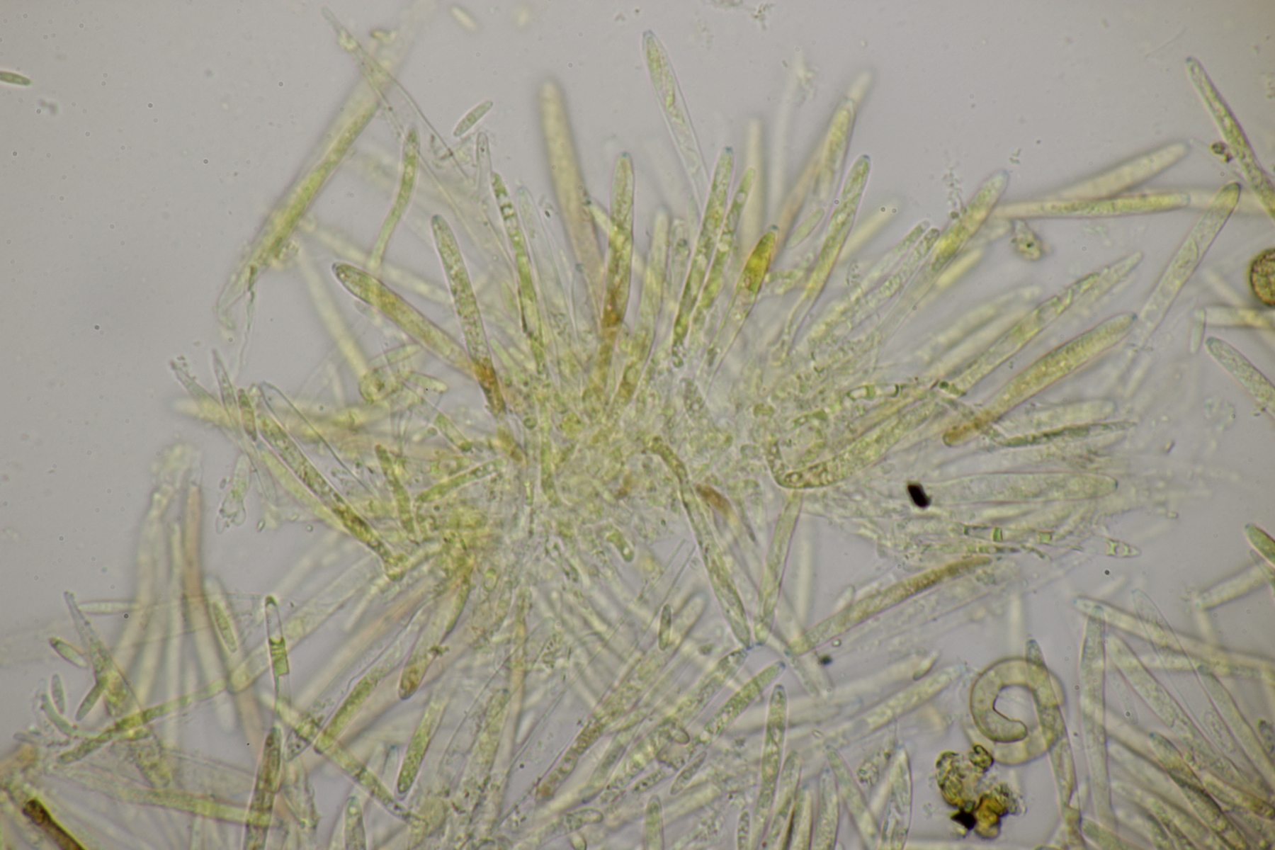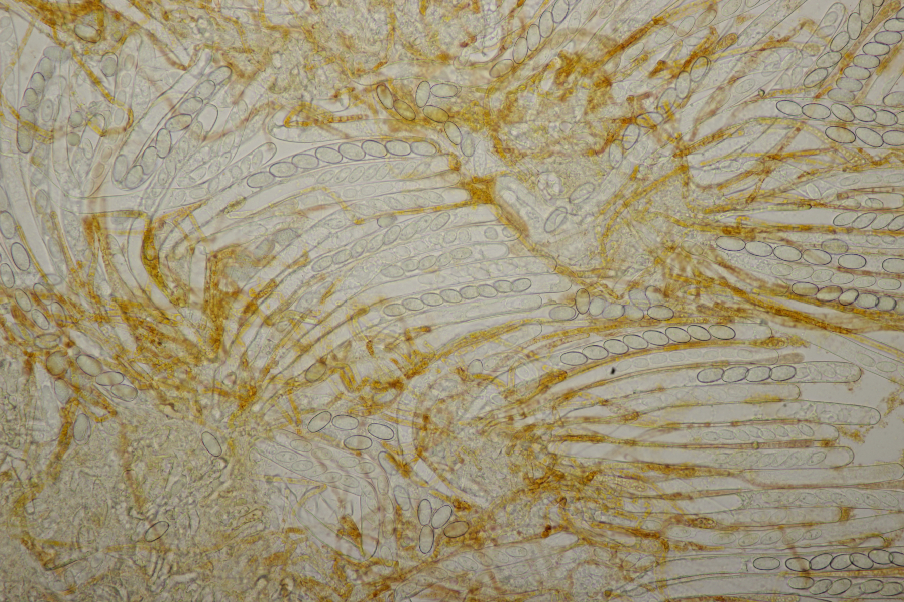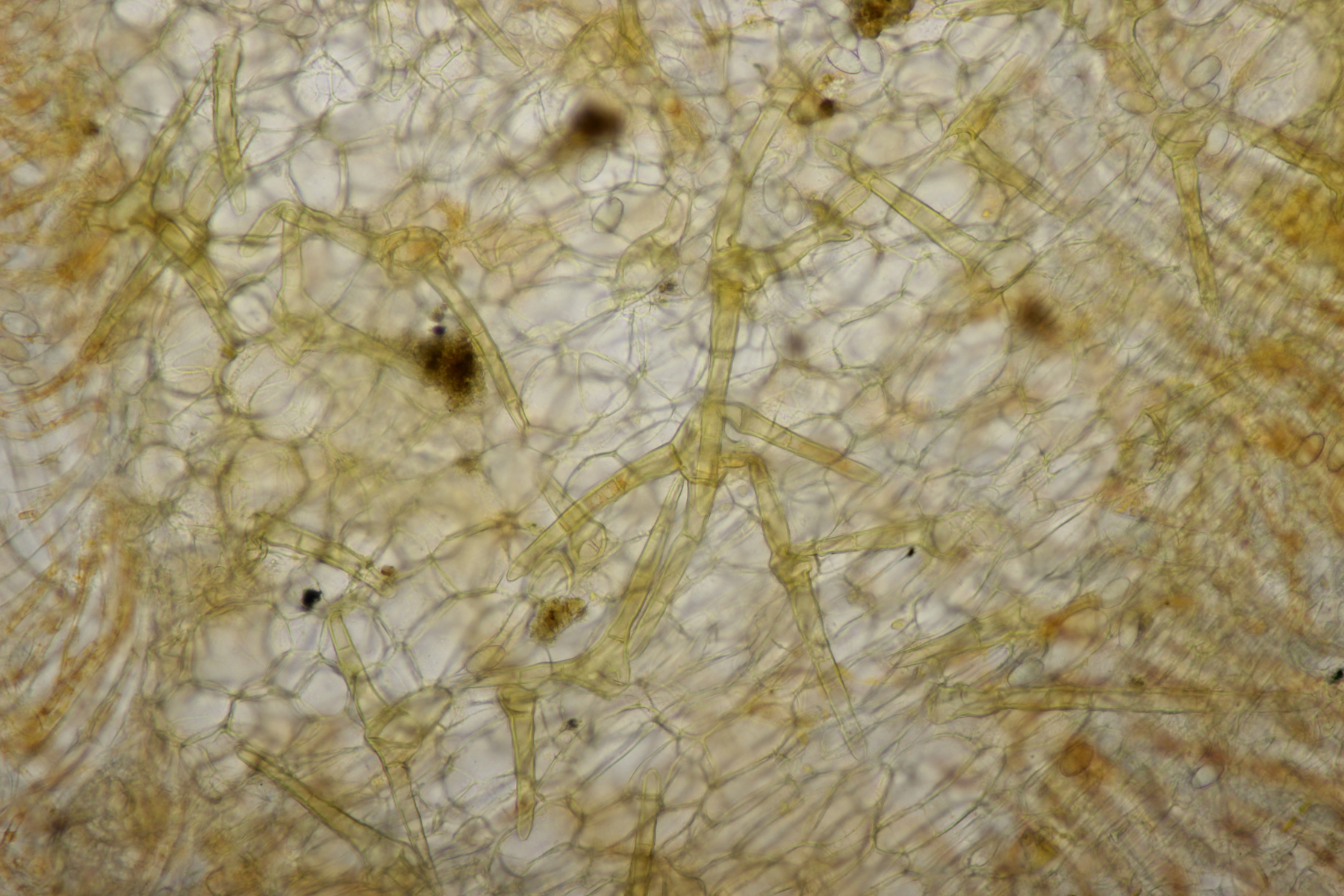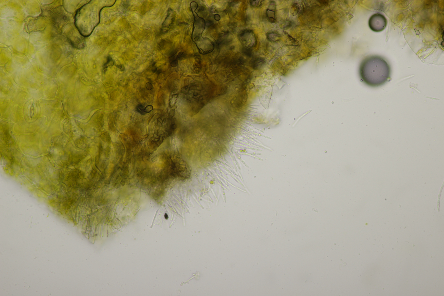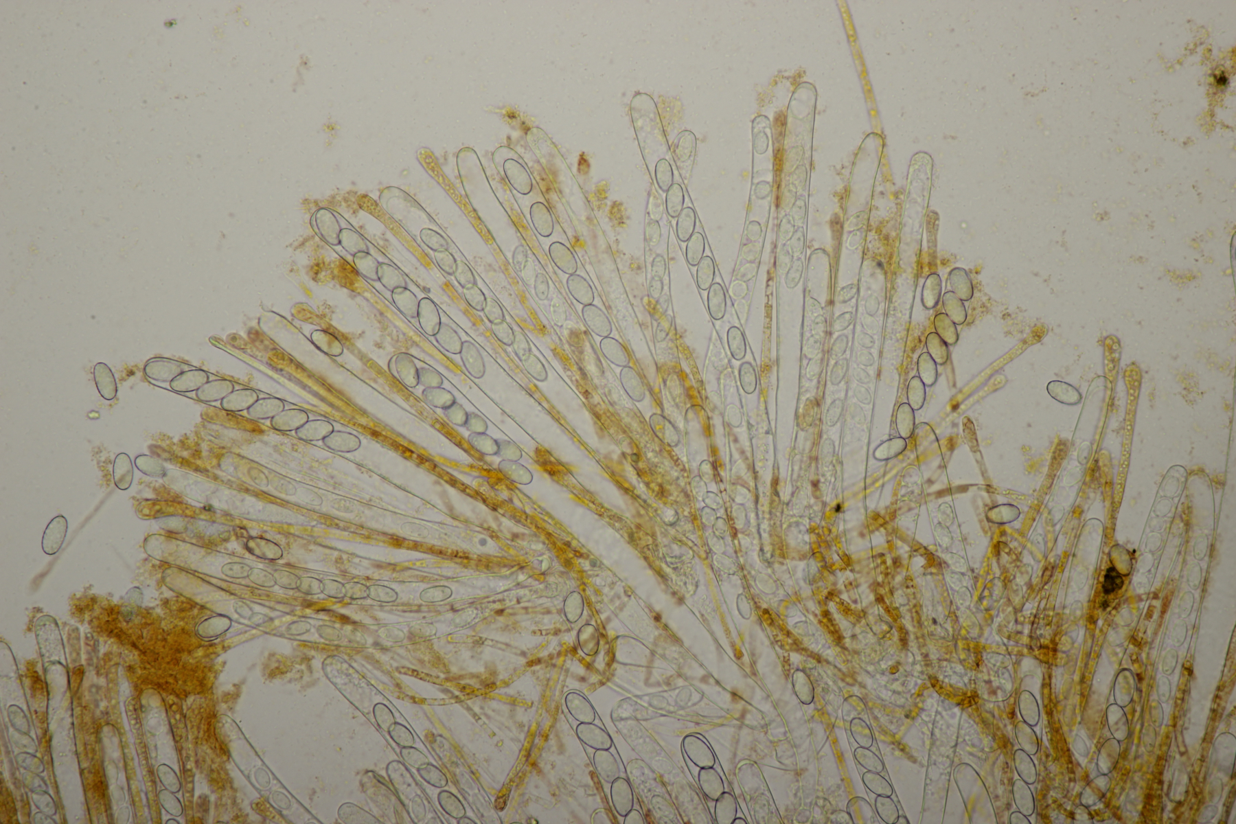 1. Brunnipila fuscescens auf alten Buchenblättern