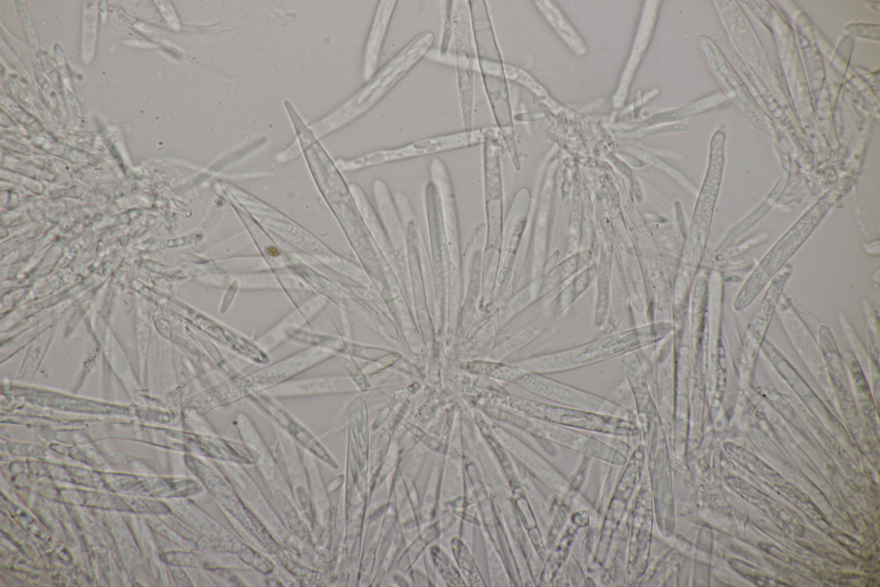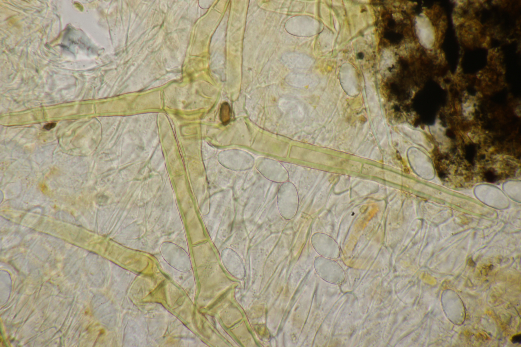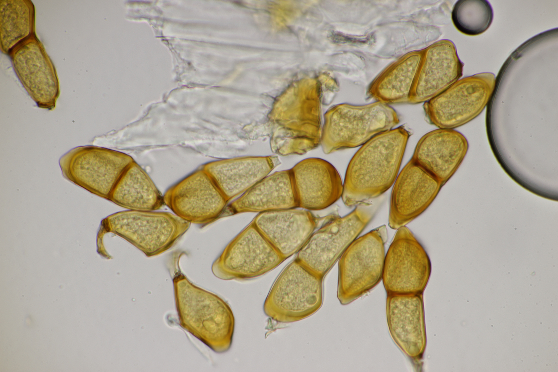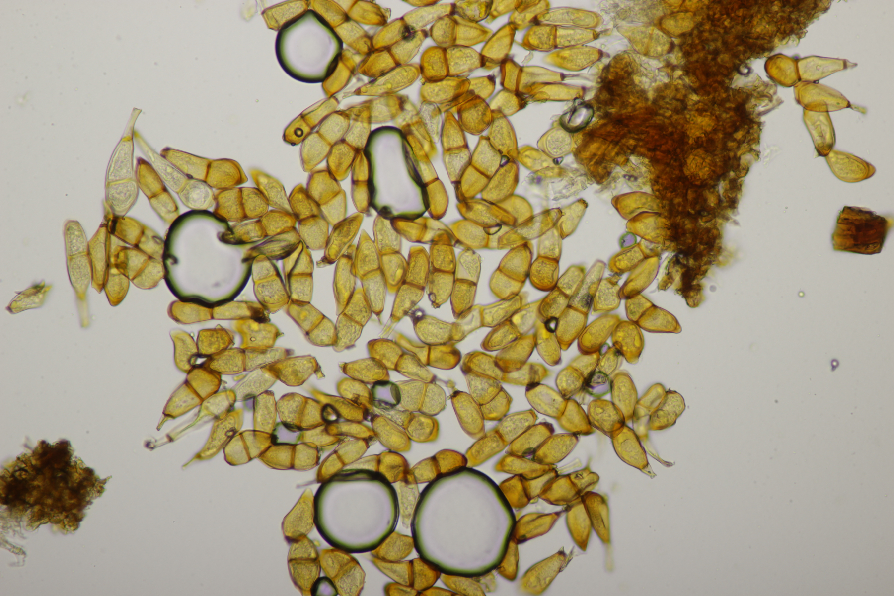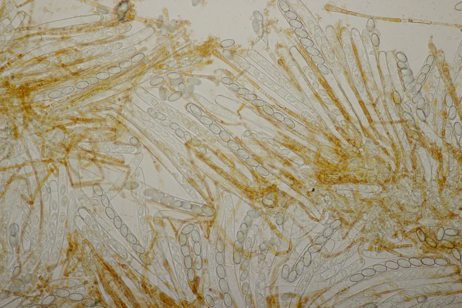 1. Brunnipila fuscescens auf alten Buchenblättern