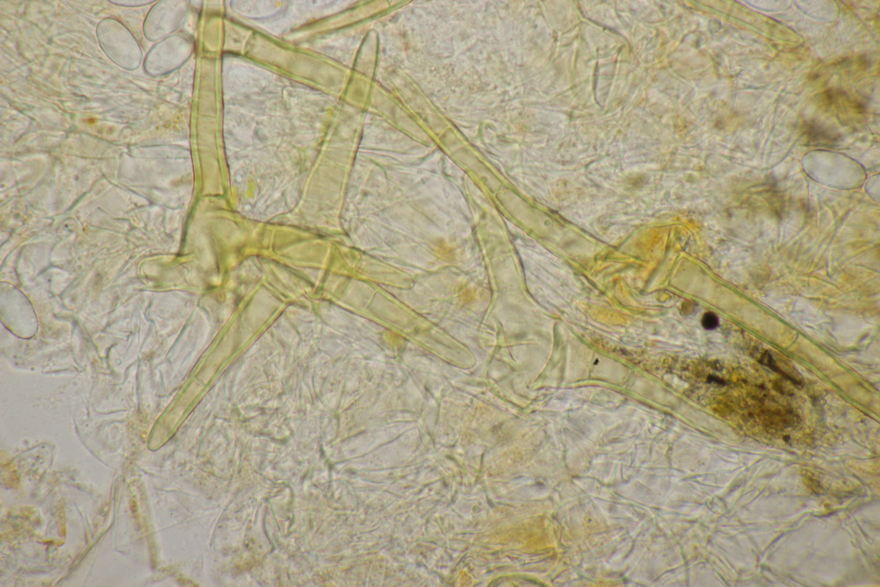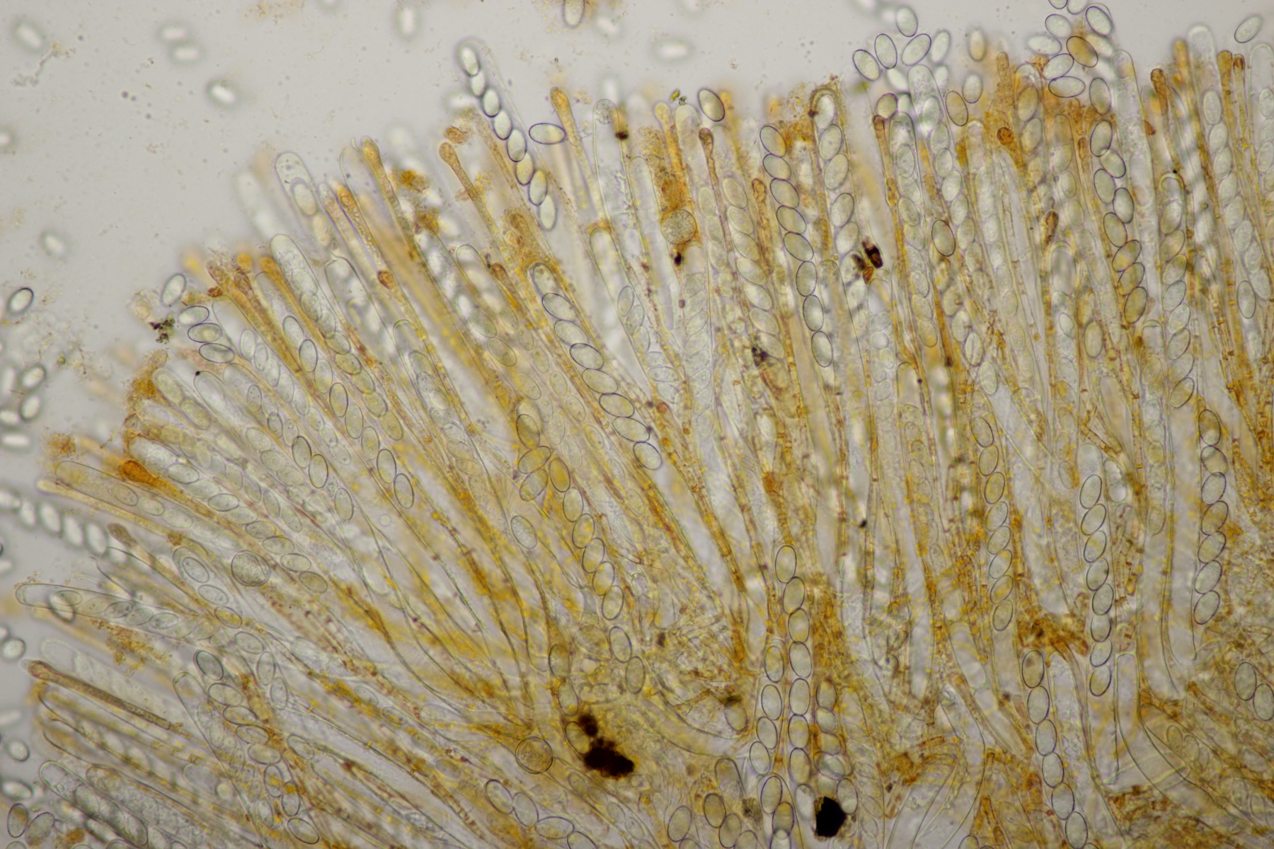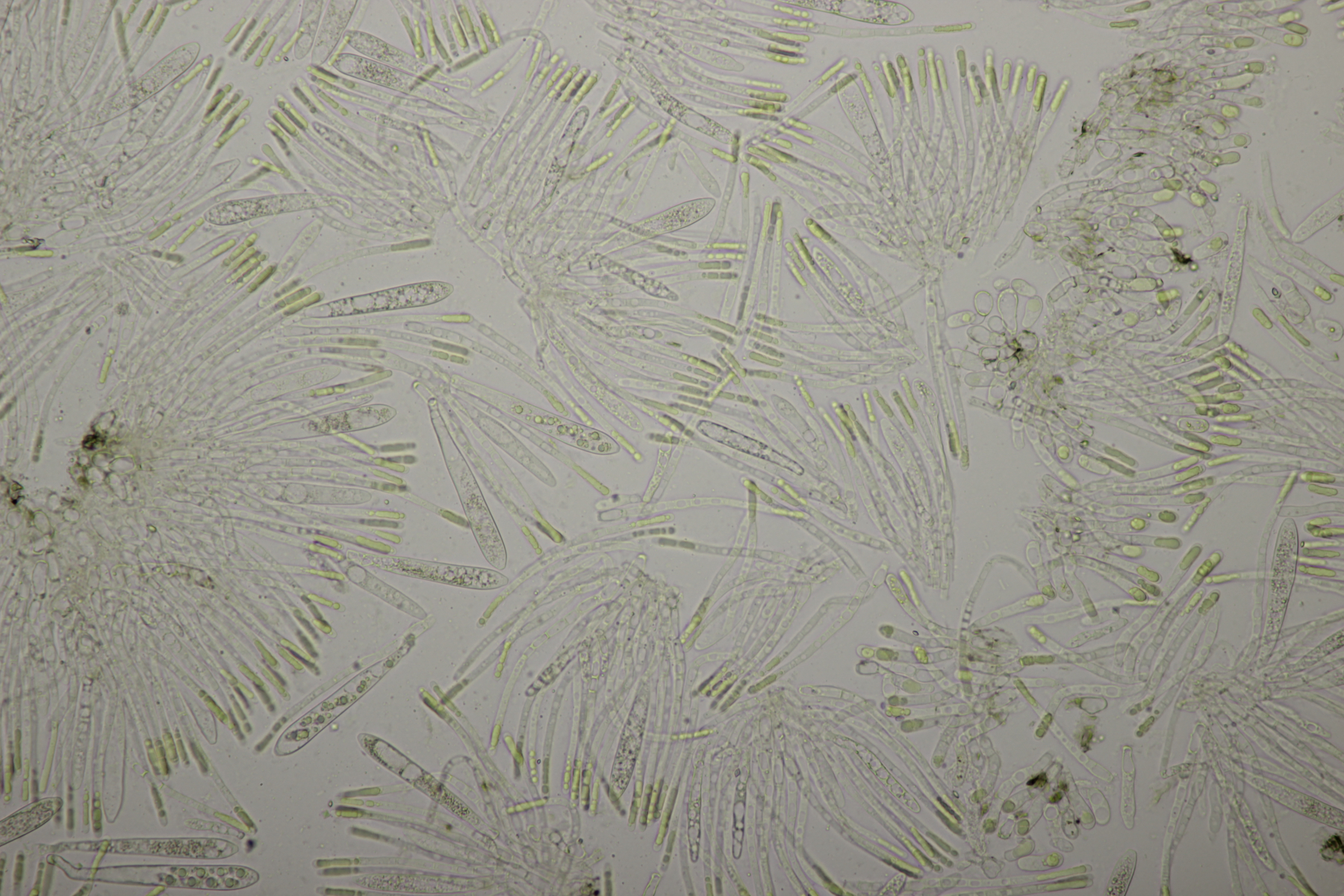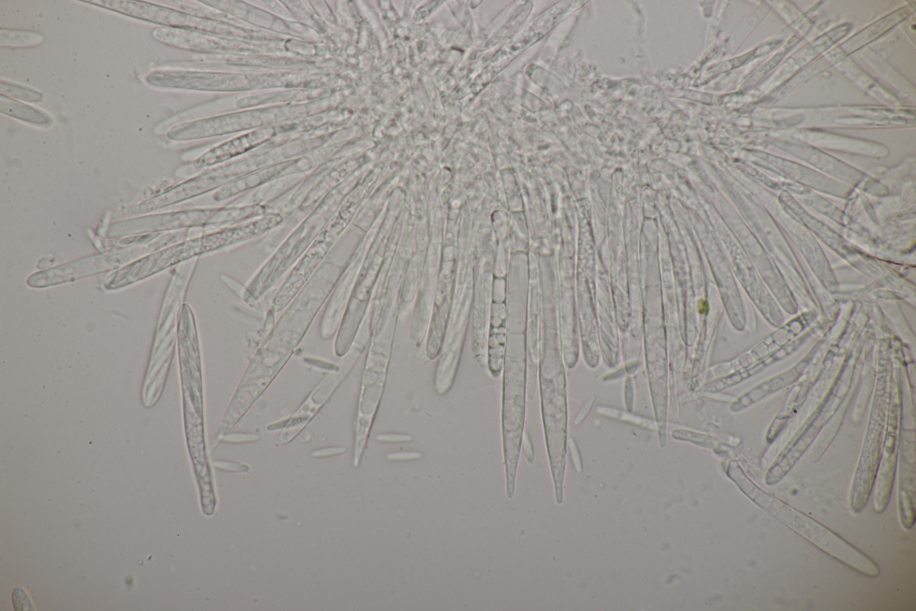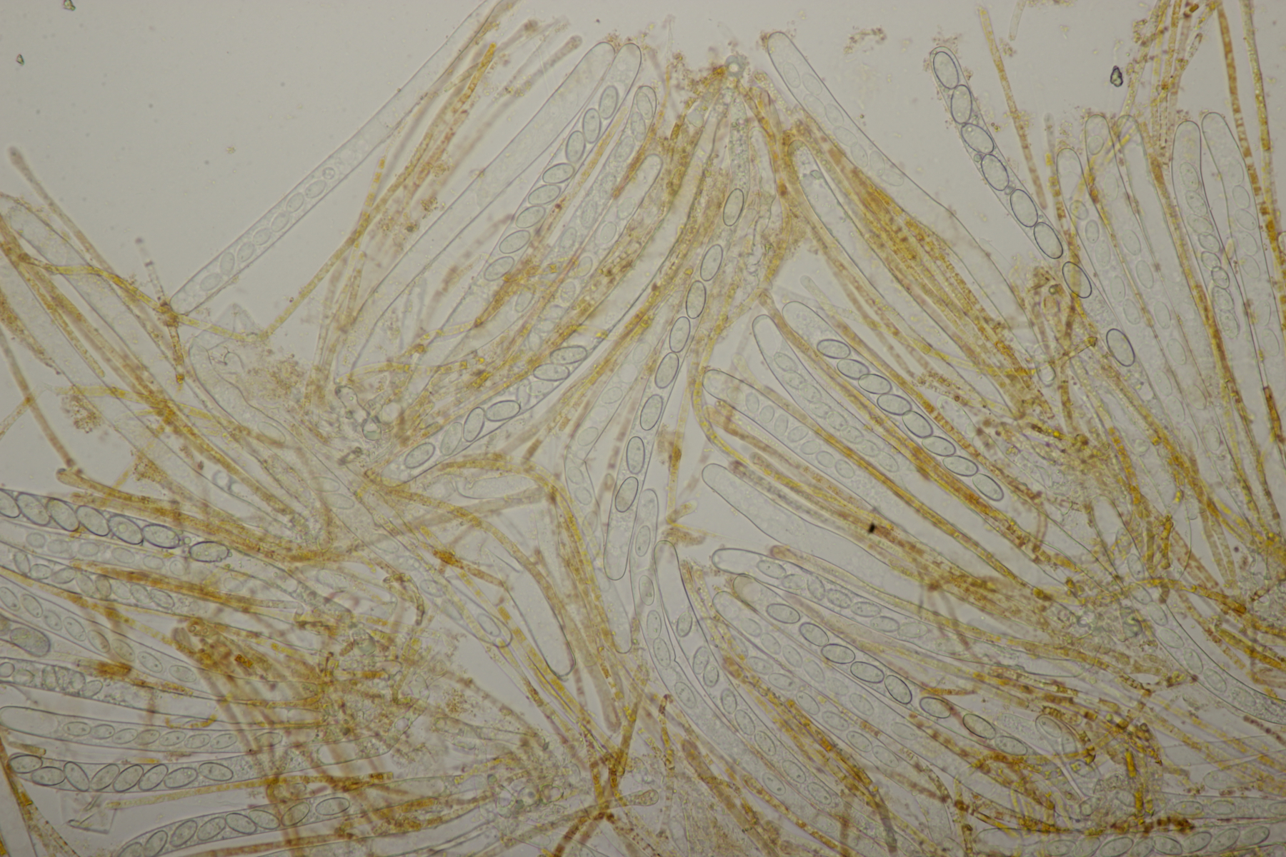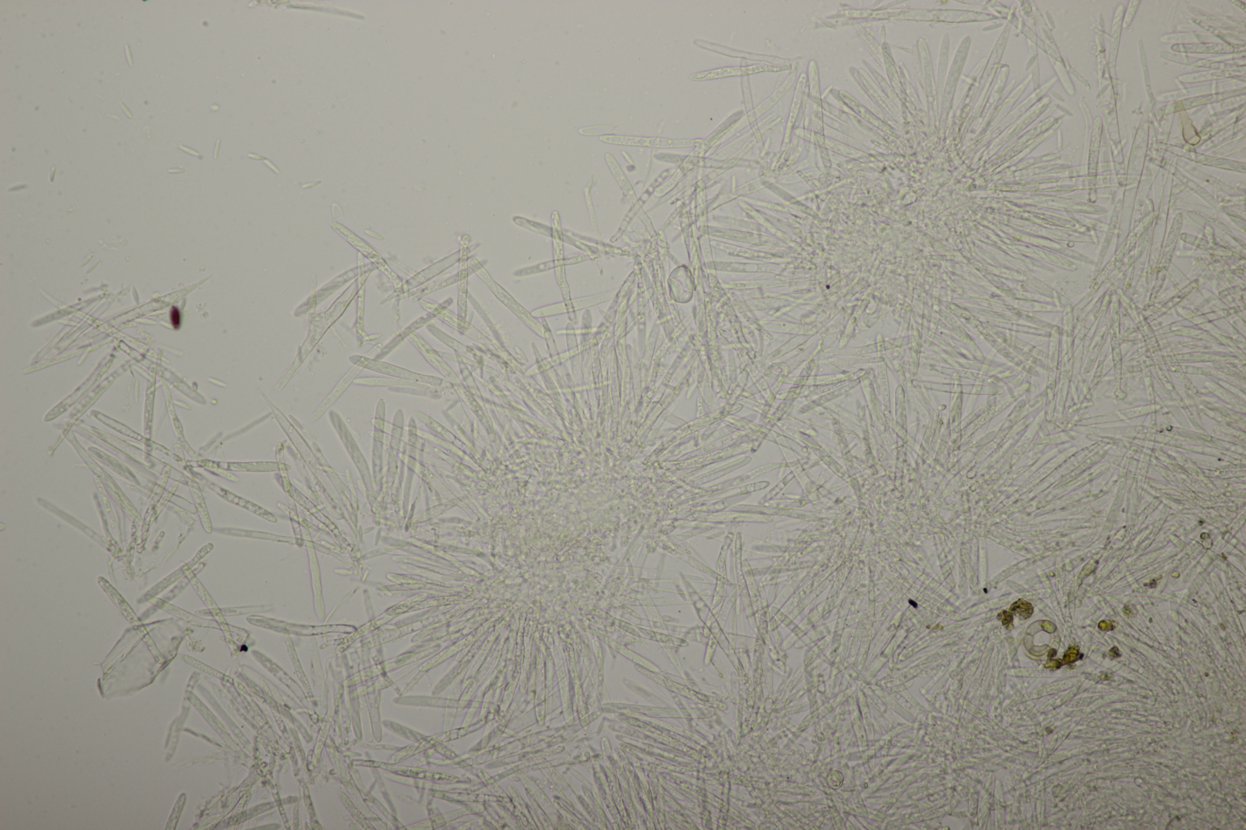 1. Brunnipila fuscescens auf alten Buchenblättern