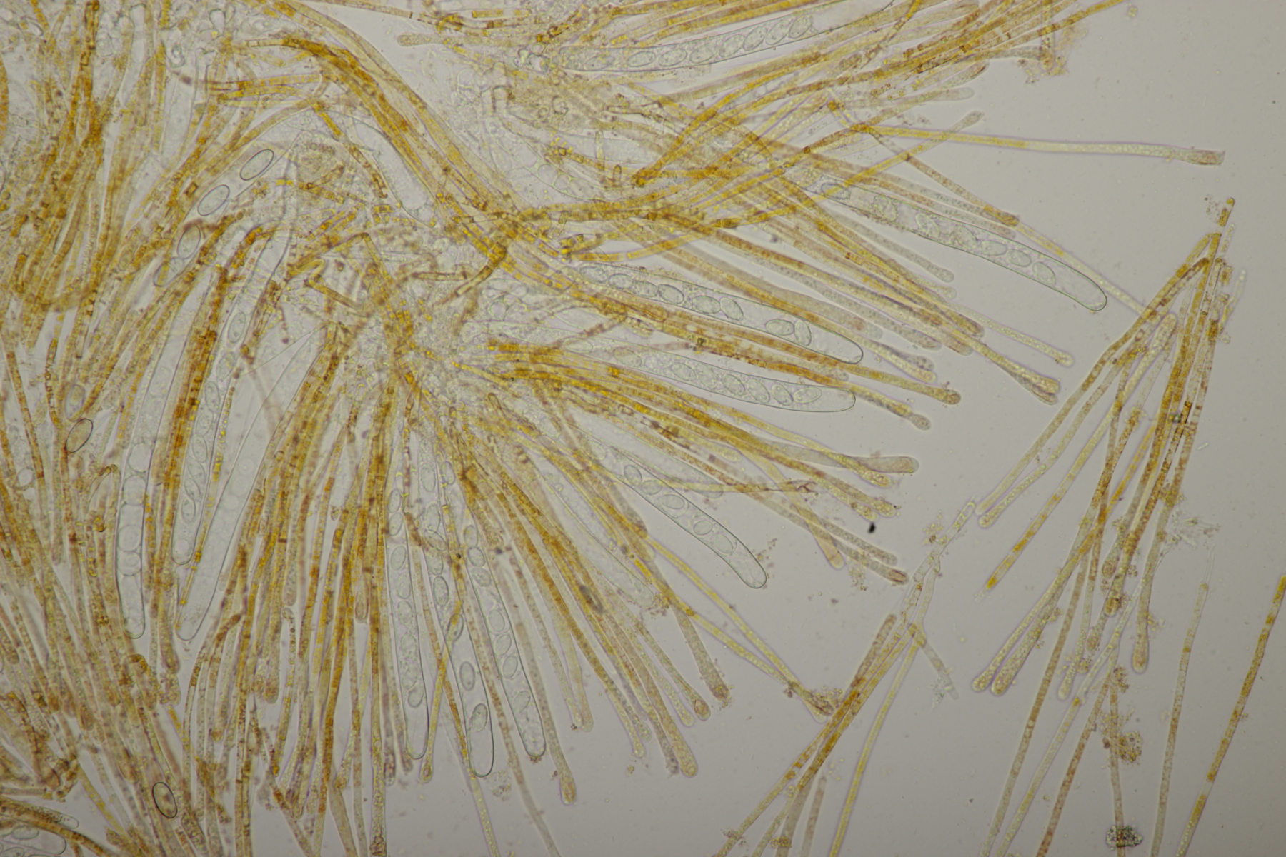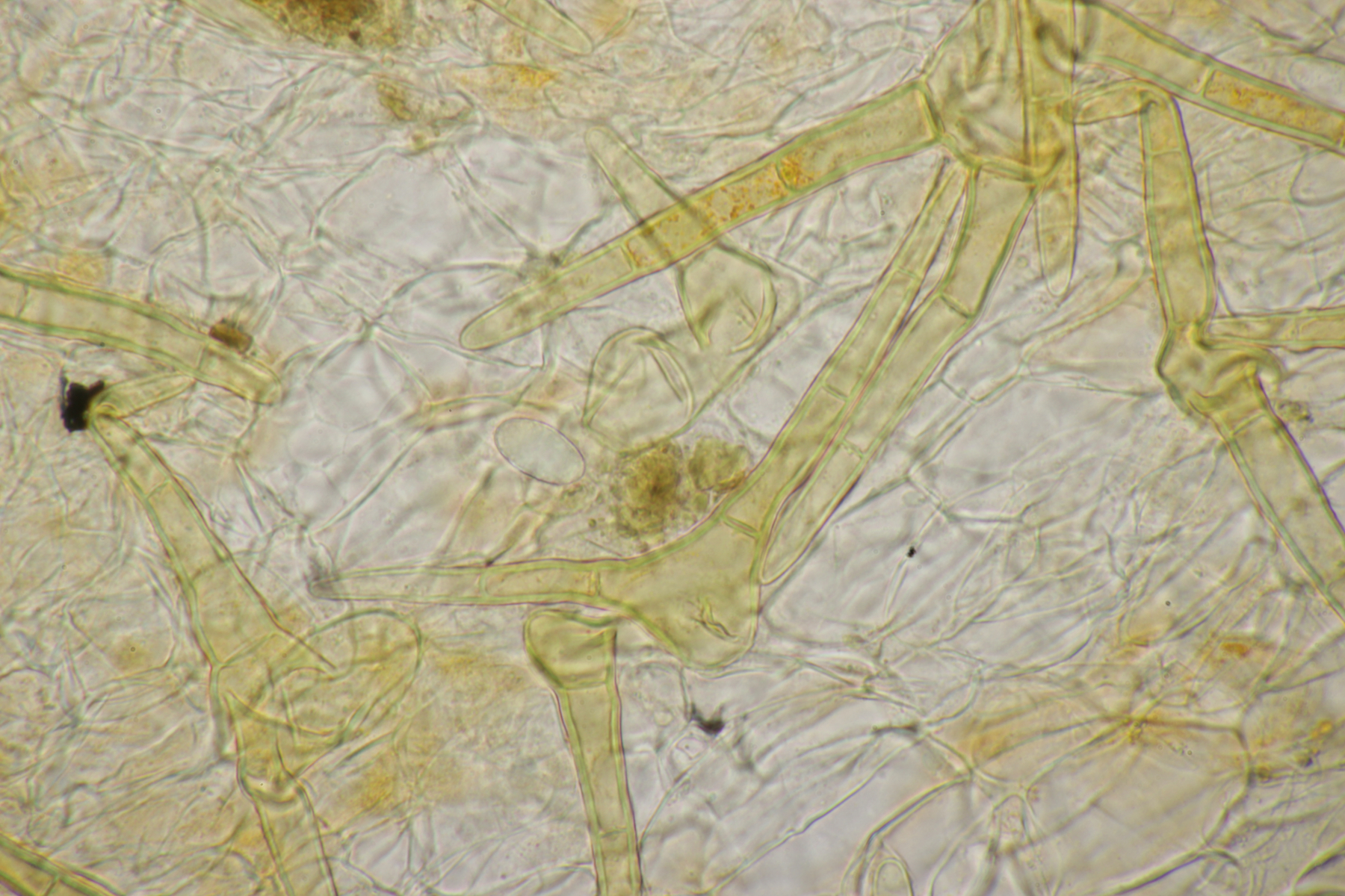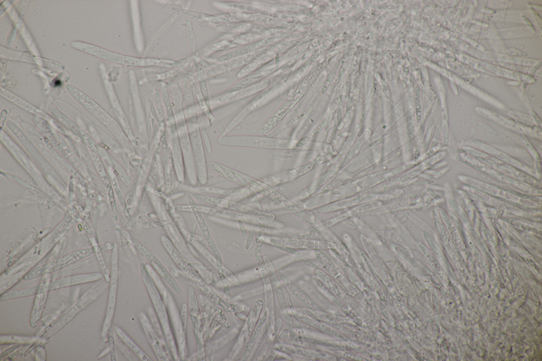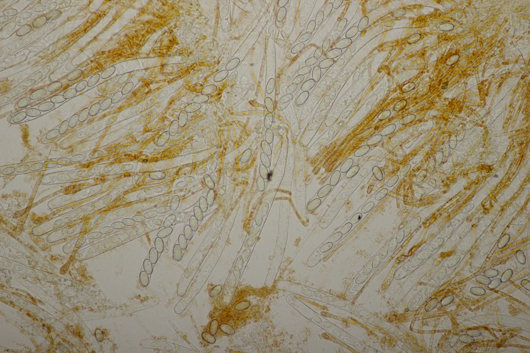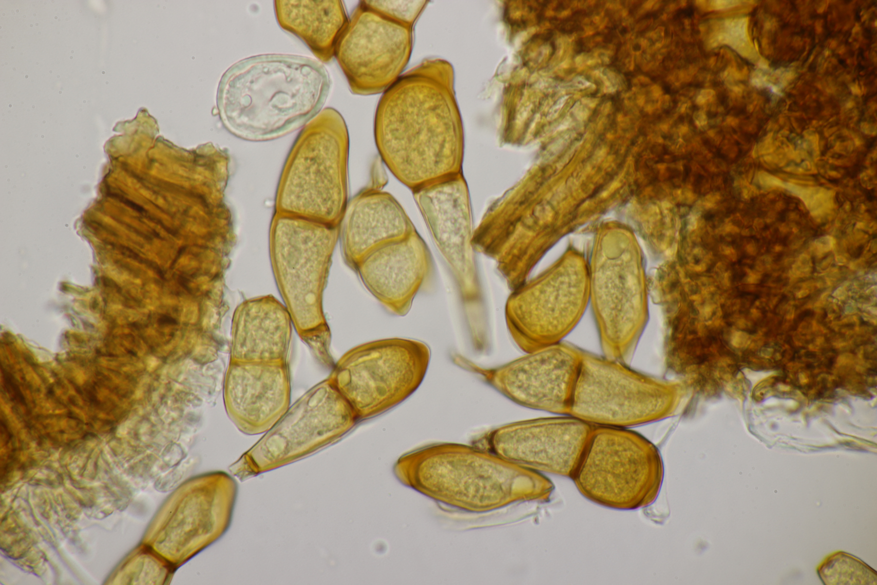 1. Brunnipila fuscescens auf alten Buchenblättern