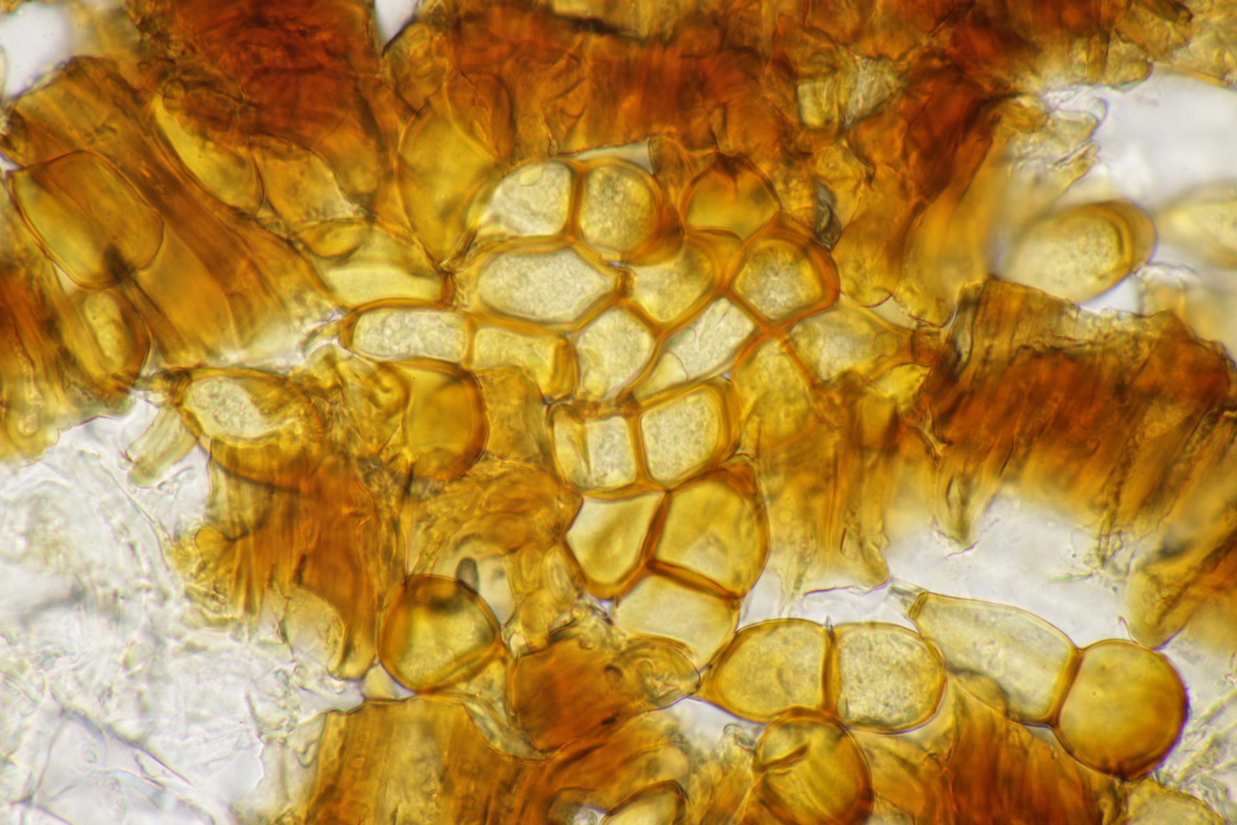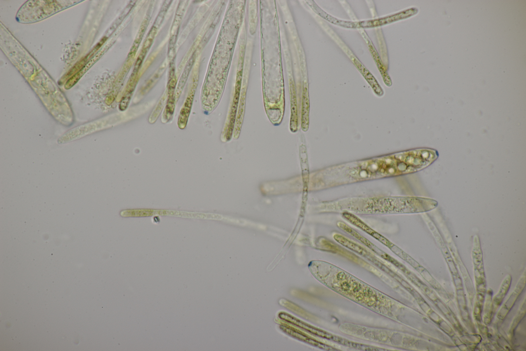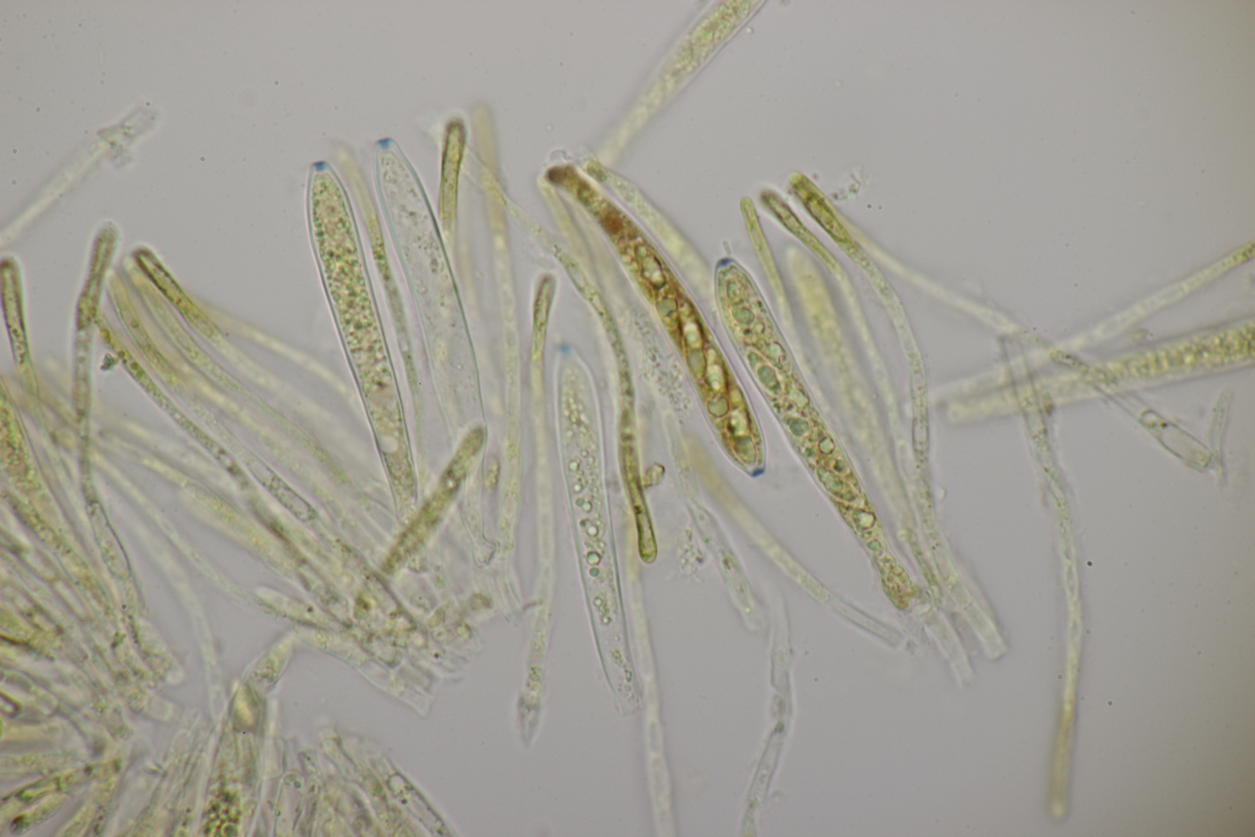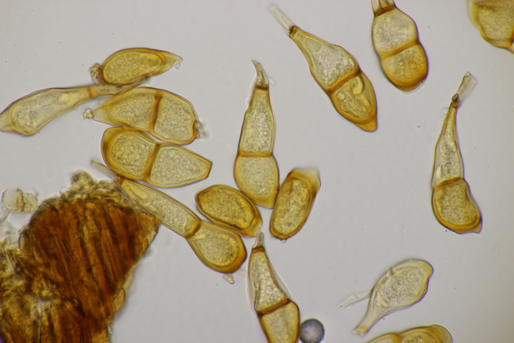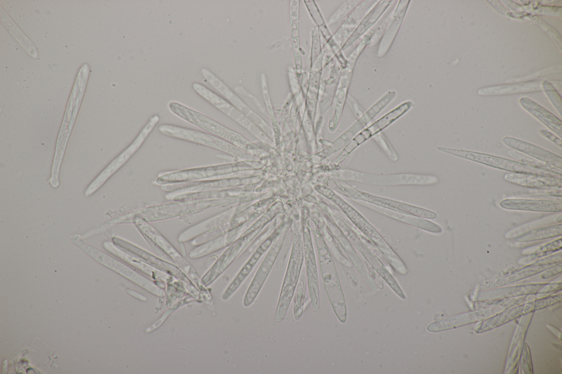 1. Brunnipila fuscescens auf alten Buchenblättern