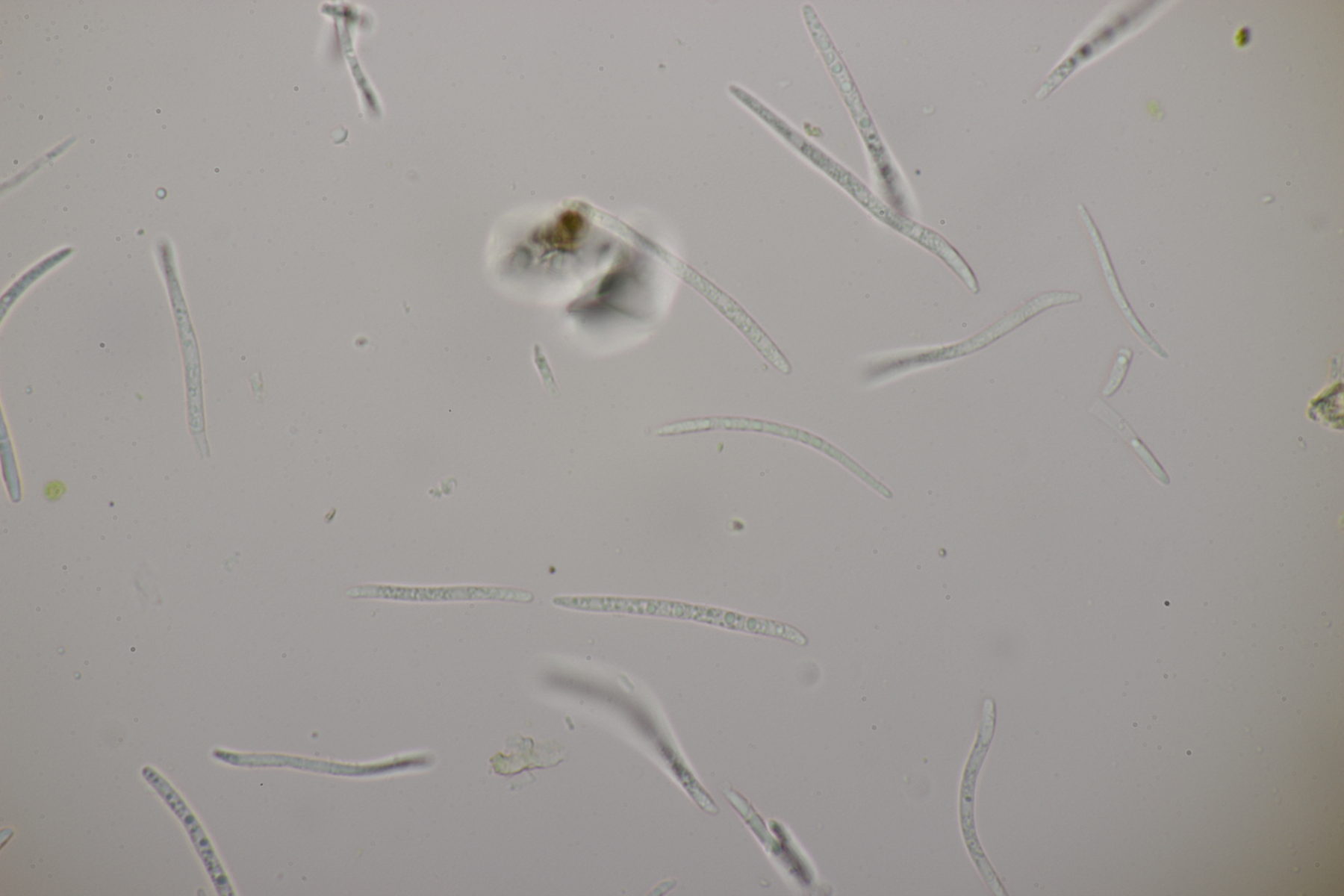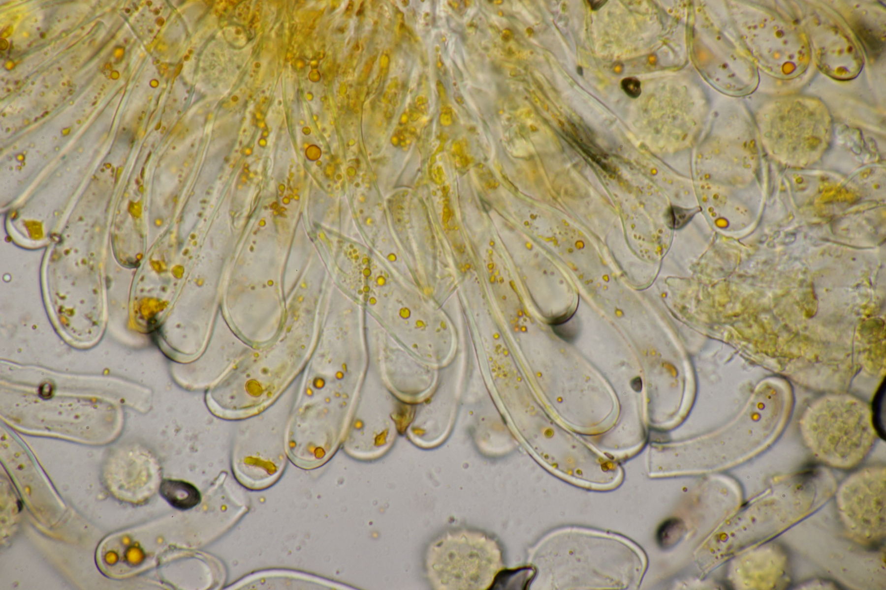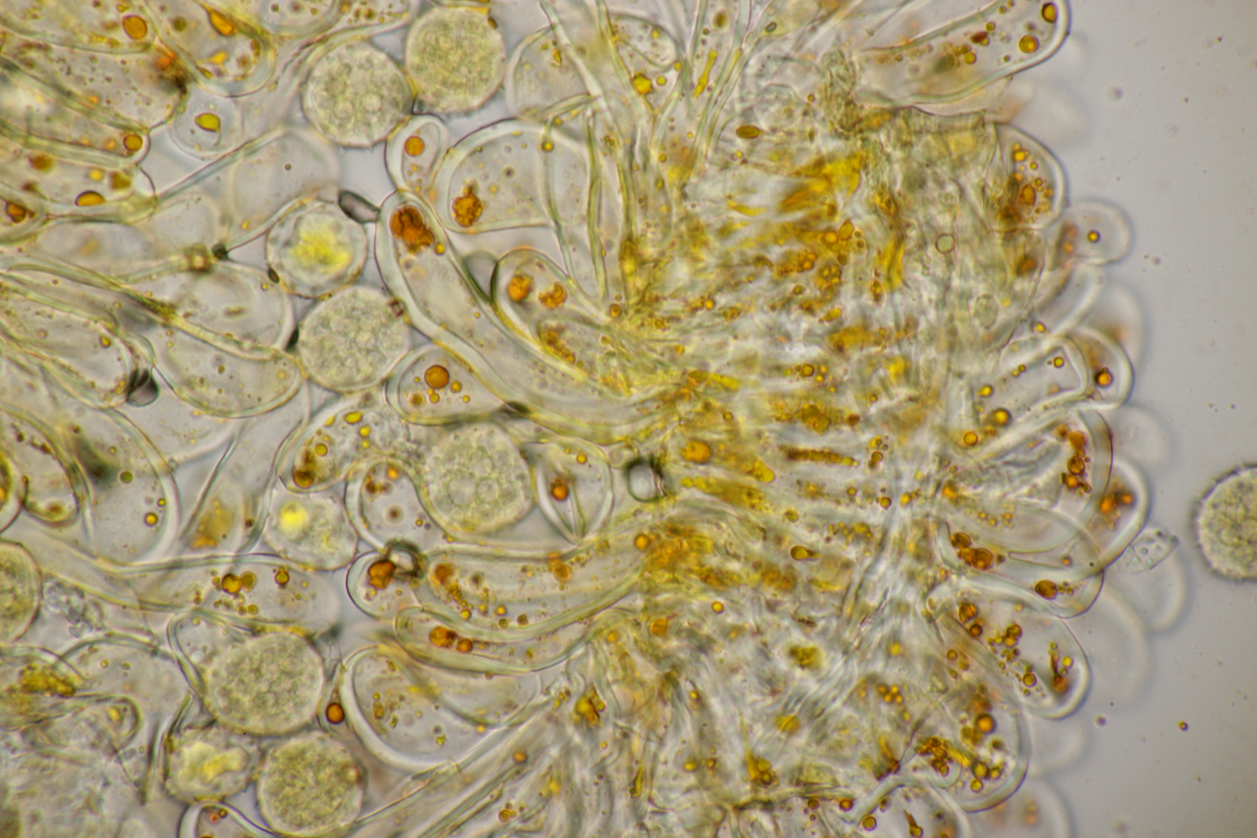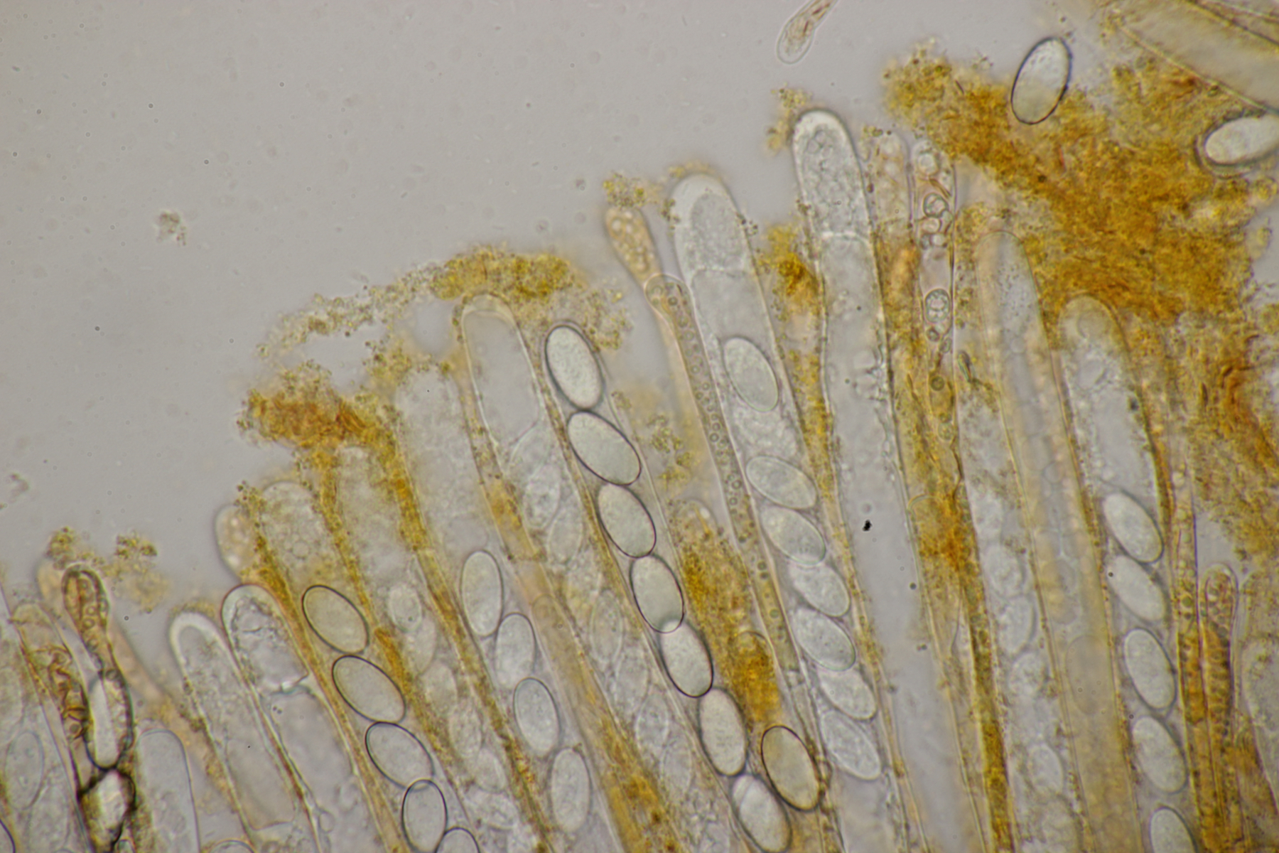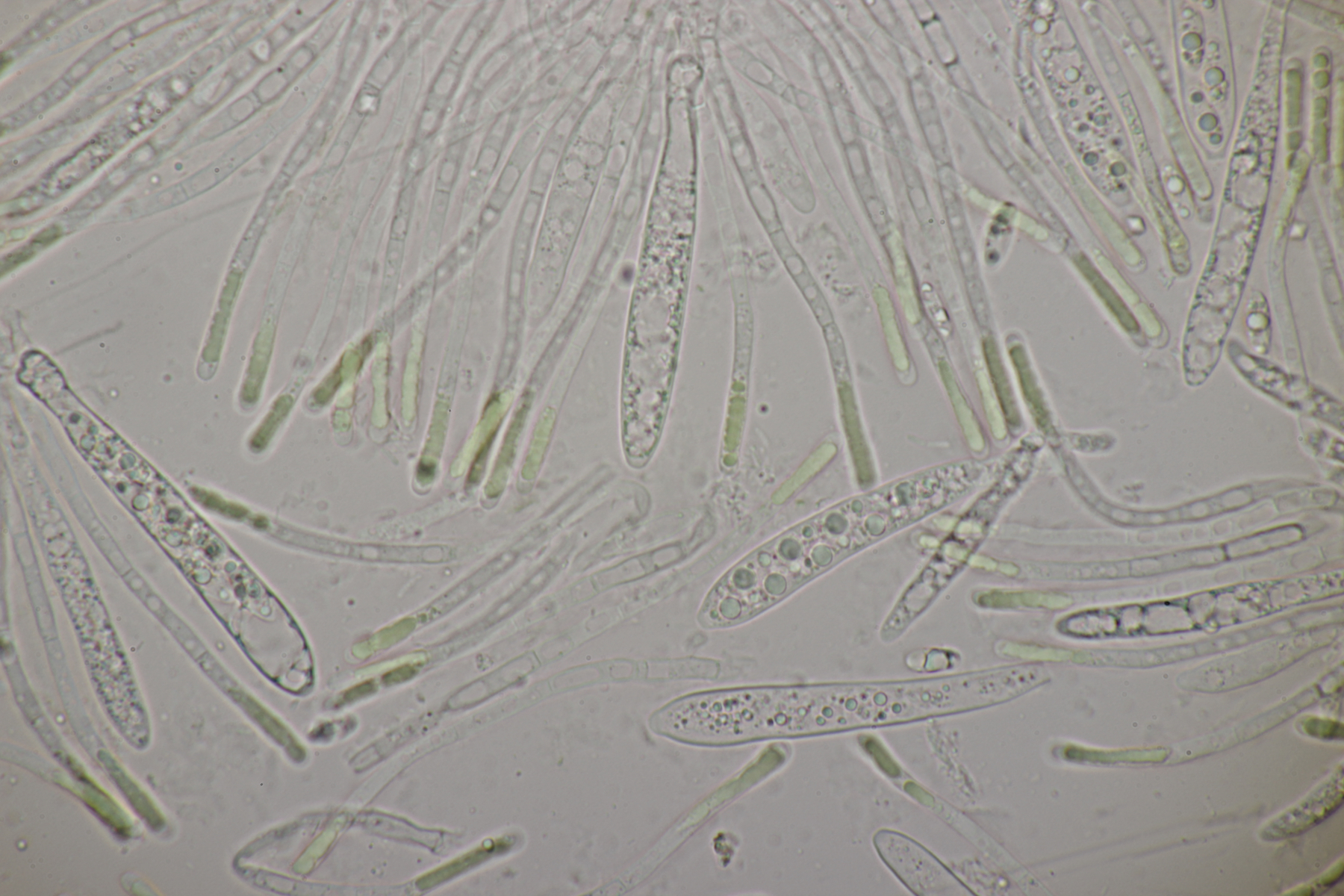 1. Brunnipila fuscescens auf alten Buchenblättern