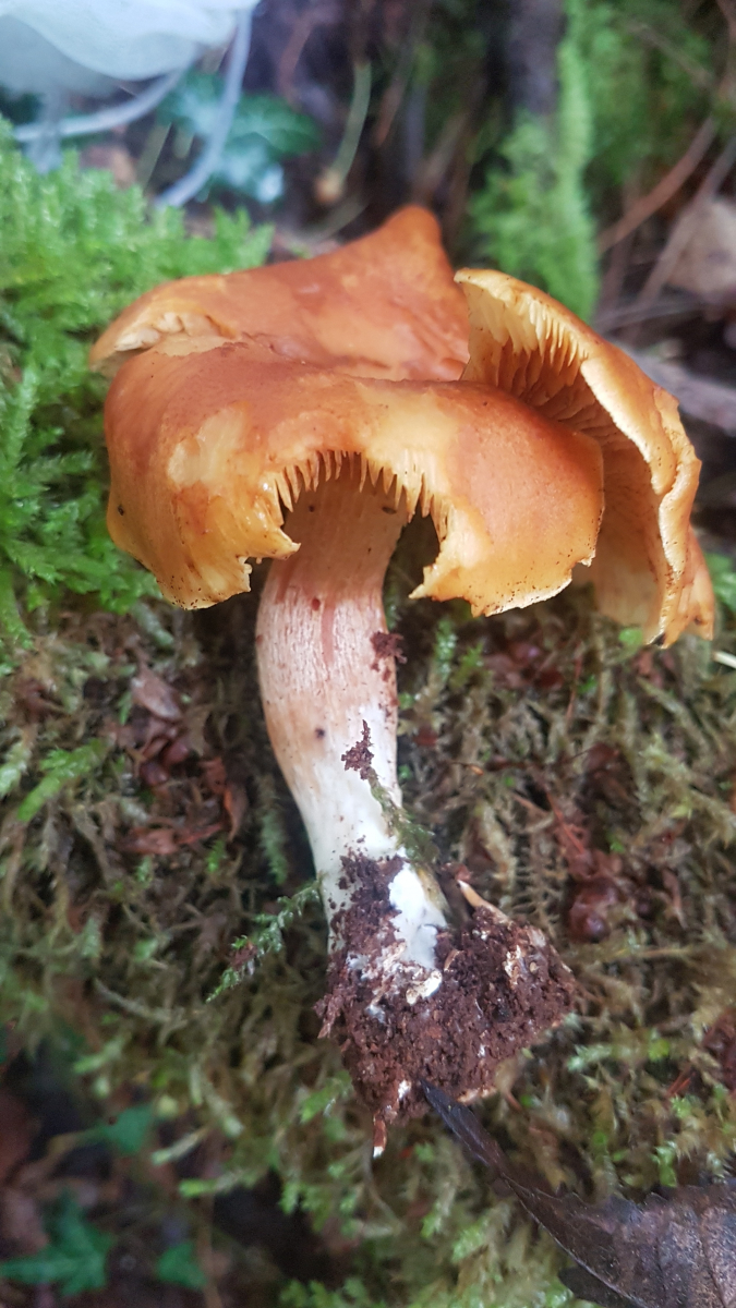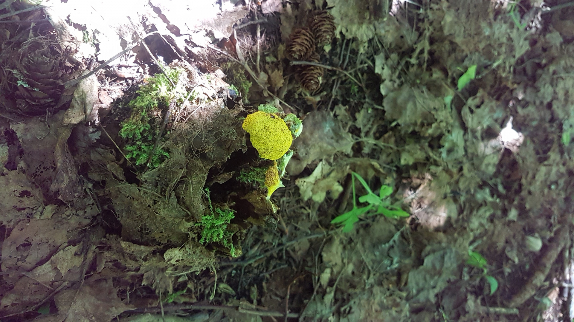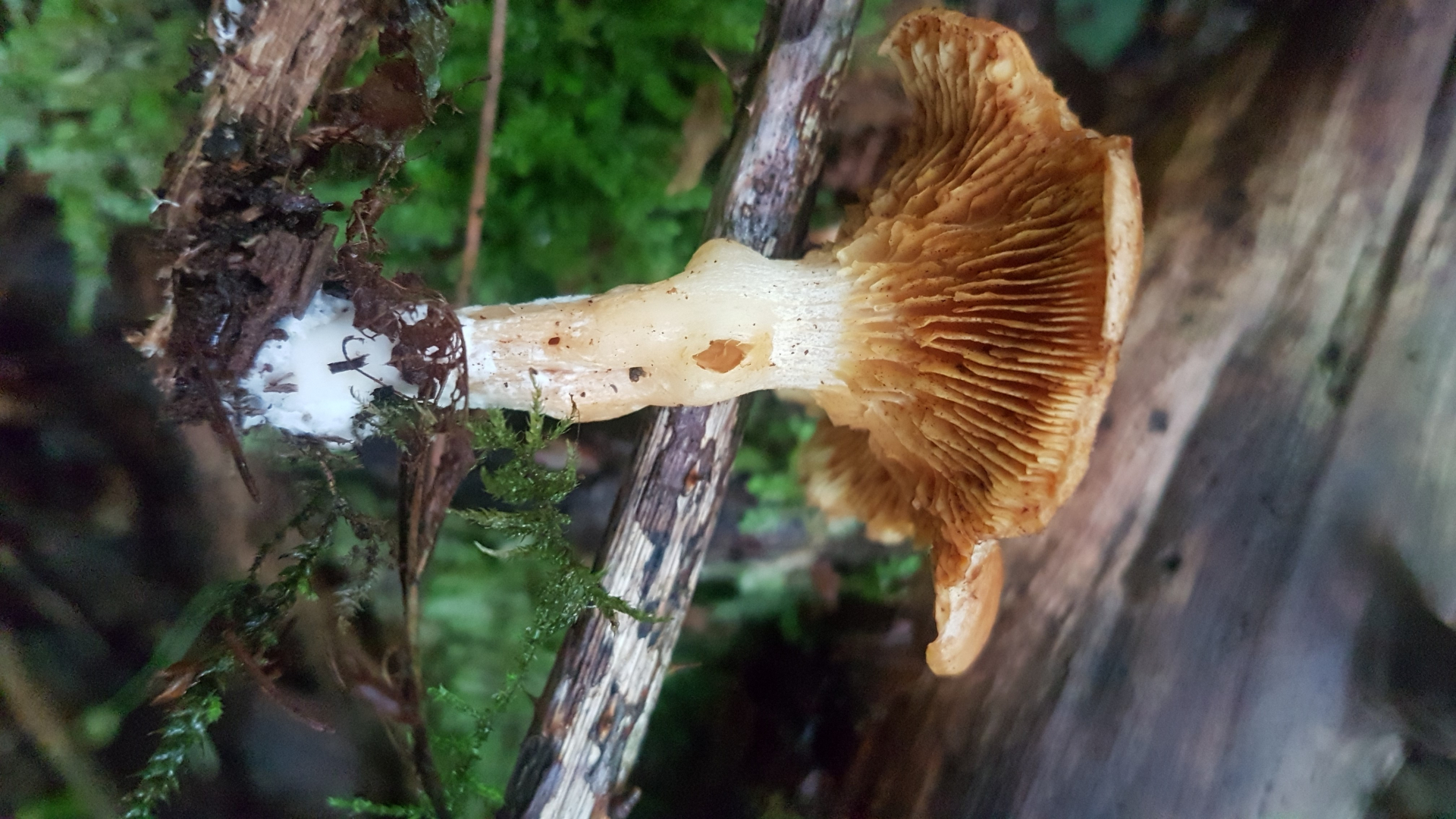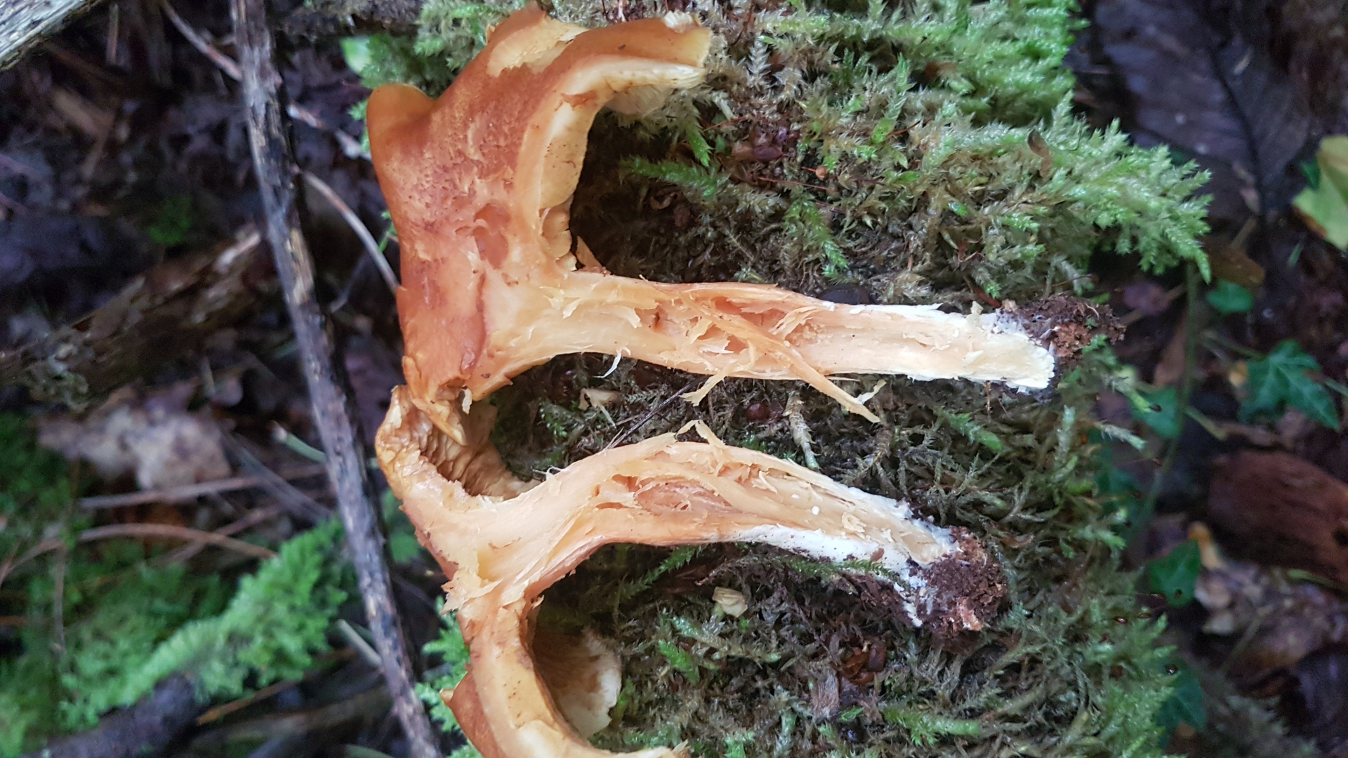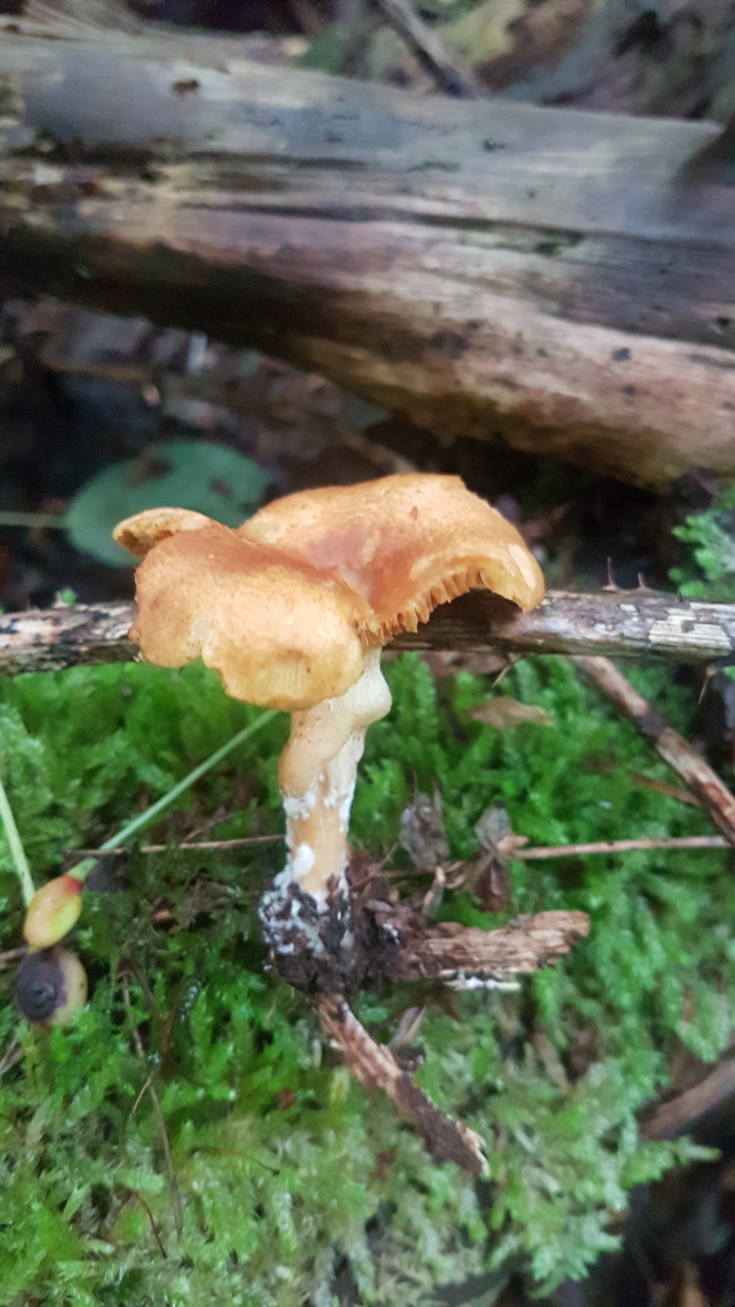 Das erste Exemplar wuchs, soweit ich erkennen konnte, auf stark zersetztem Totholz, das leider nicht mehr zu bestimmen war und roch angenehm pilzig. Hoffentlich fällt der nicht wieder in die Kategorie kbP ![]()