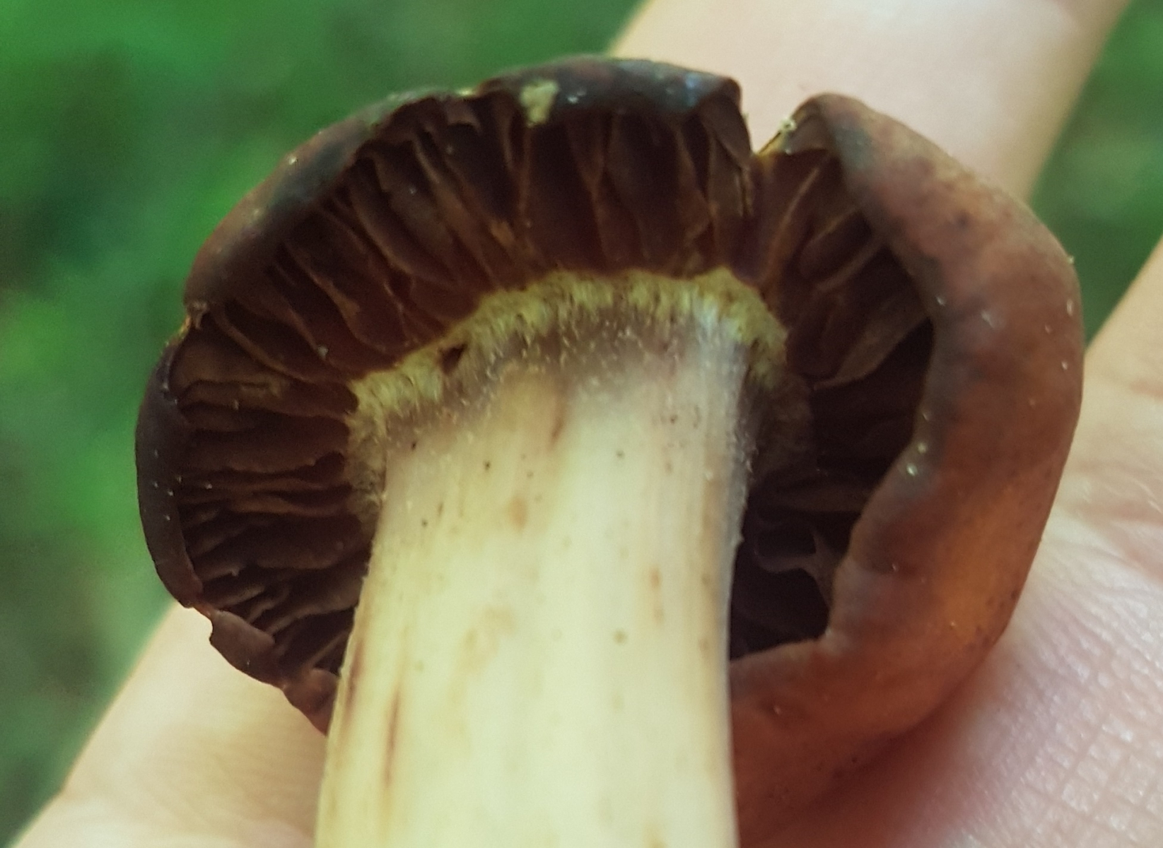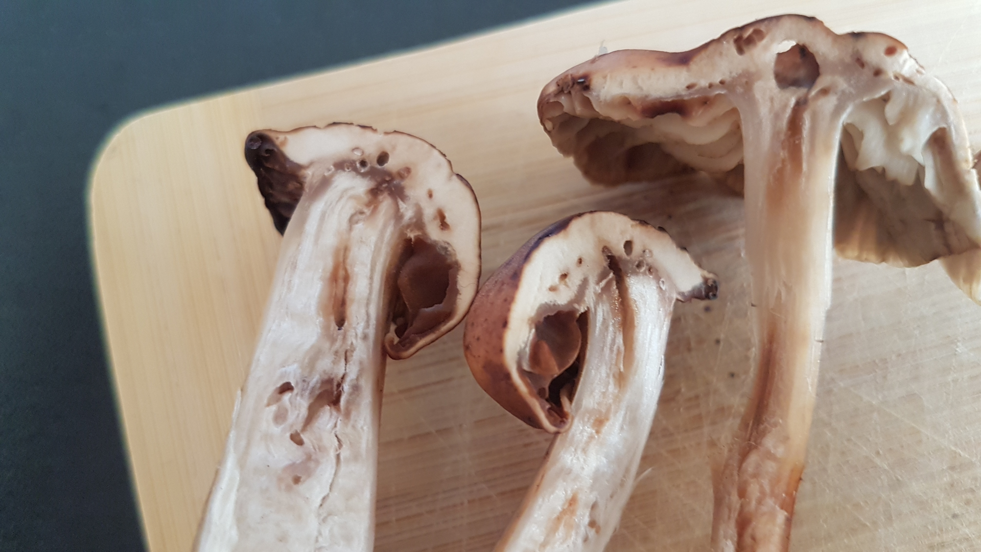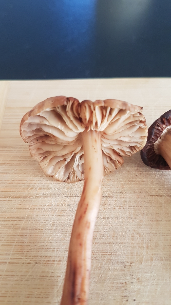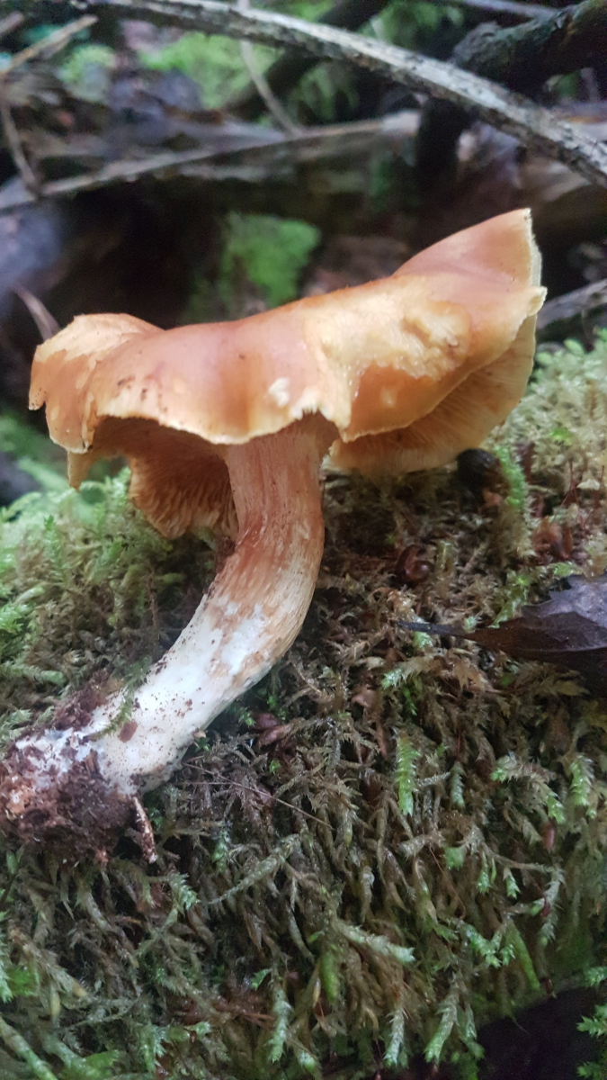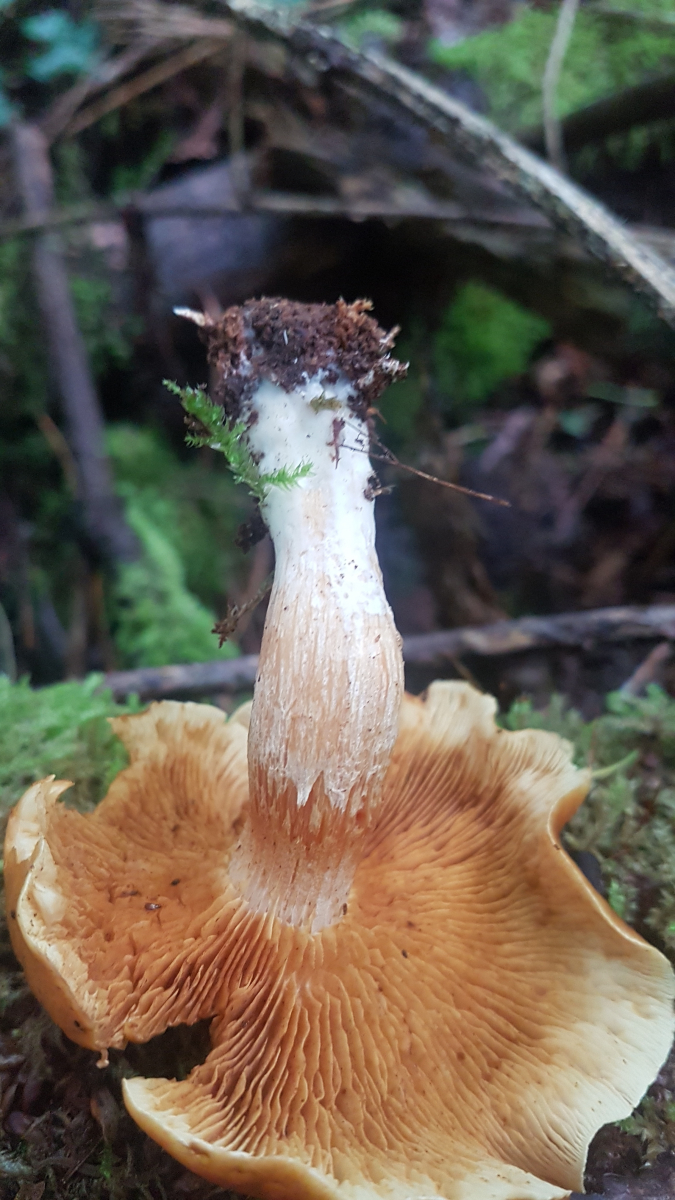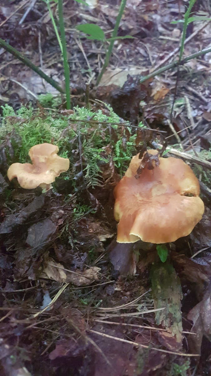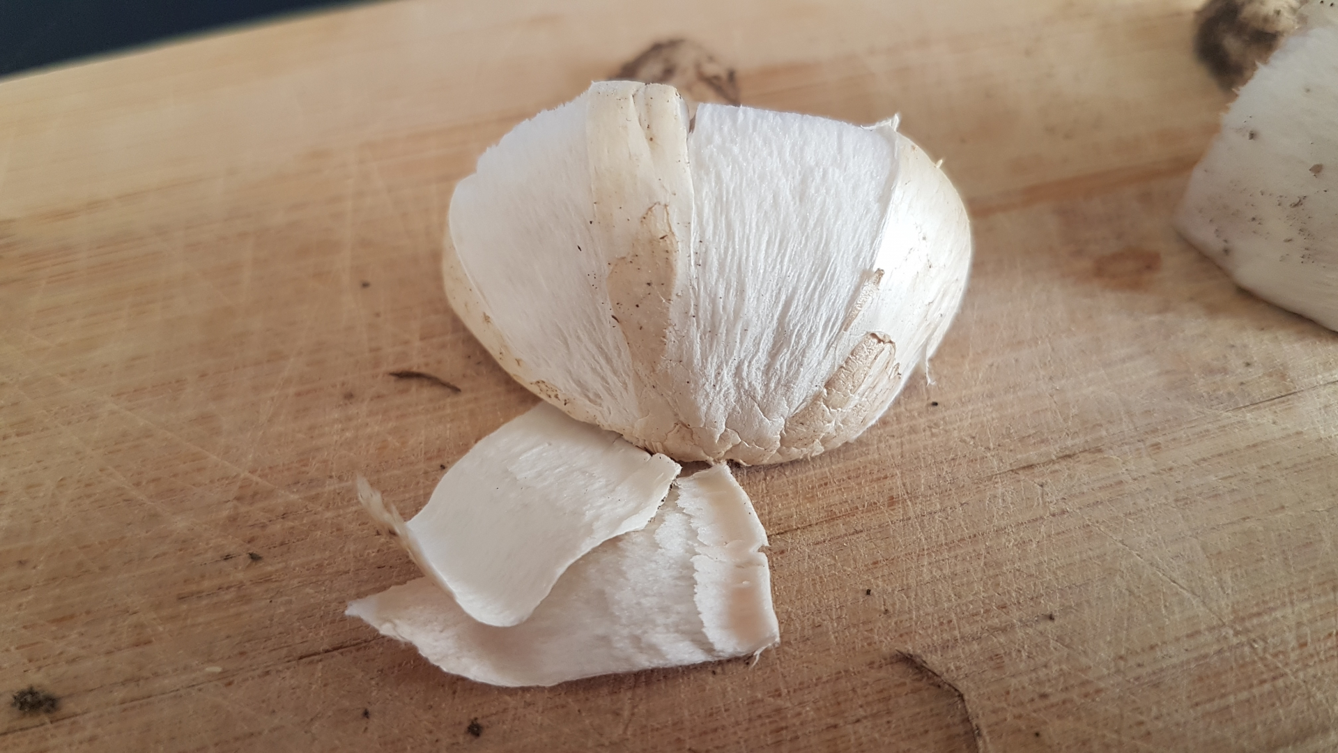 Das erste Exemplar wuchs, soweit ich erkennen konnte, auf stark zersetztem Totholz, das leider nicht mehr zu bestimmen war und roch angenehm pilzig. Hoffentlich fällt der nicht wieder in die Kategorie kbP ![]()
