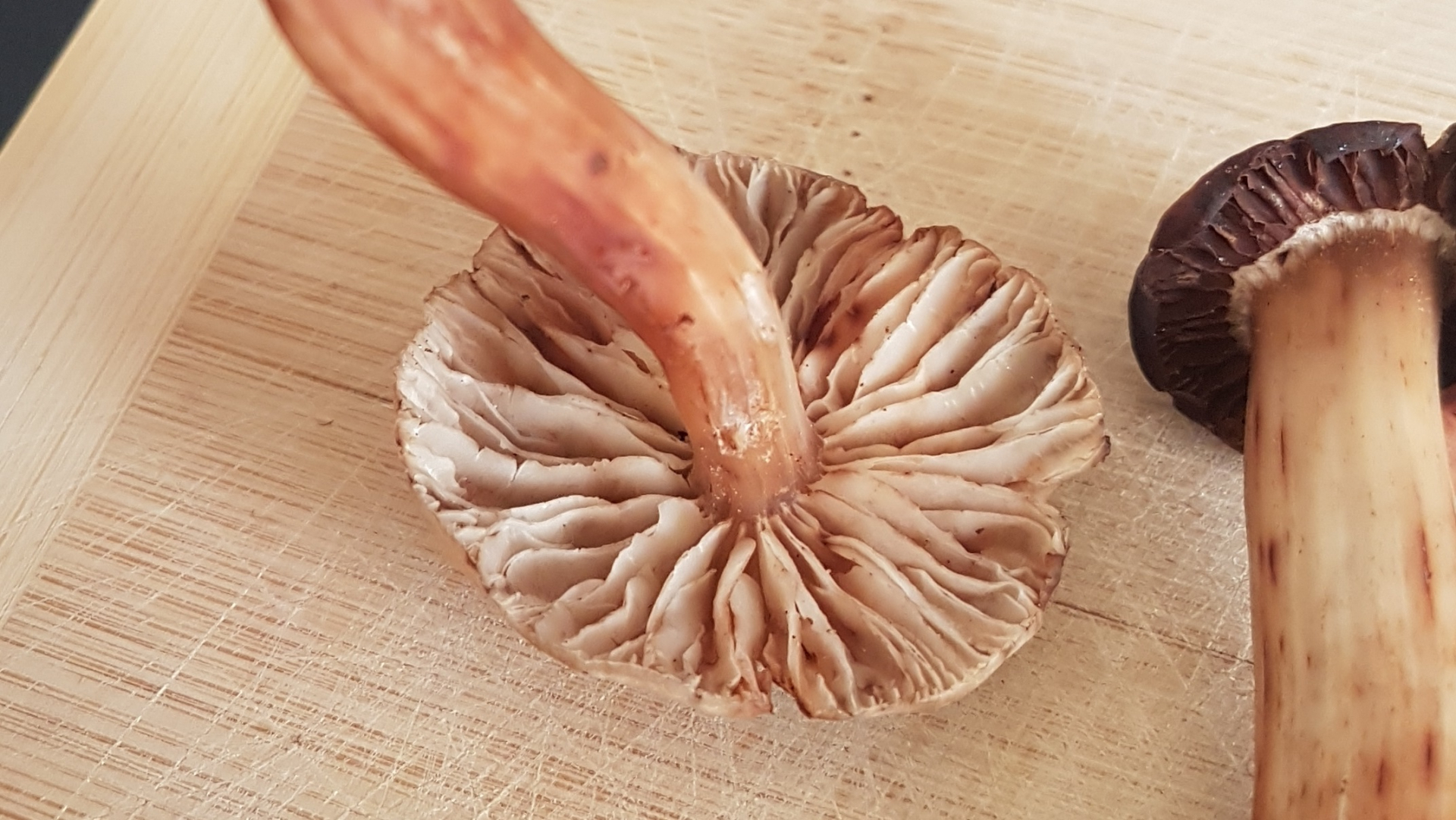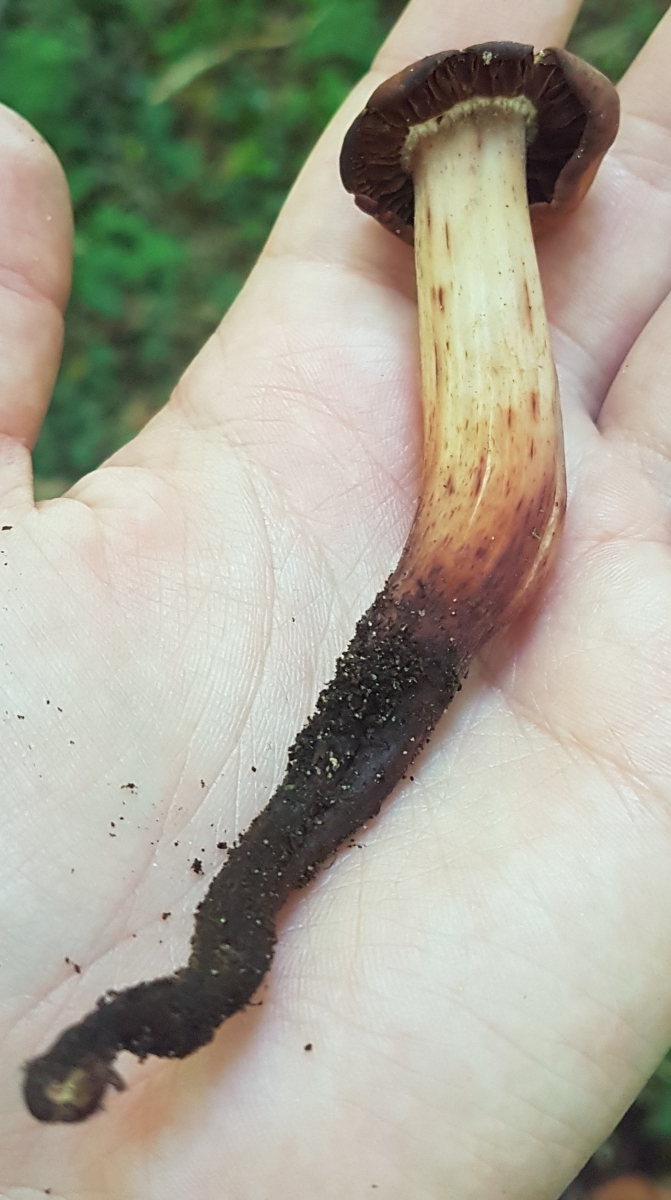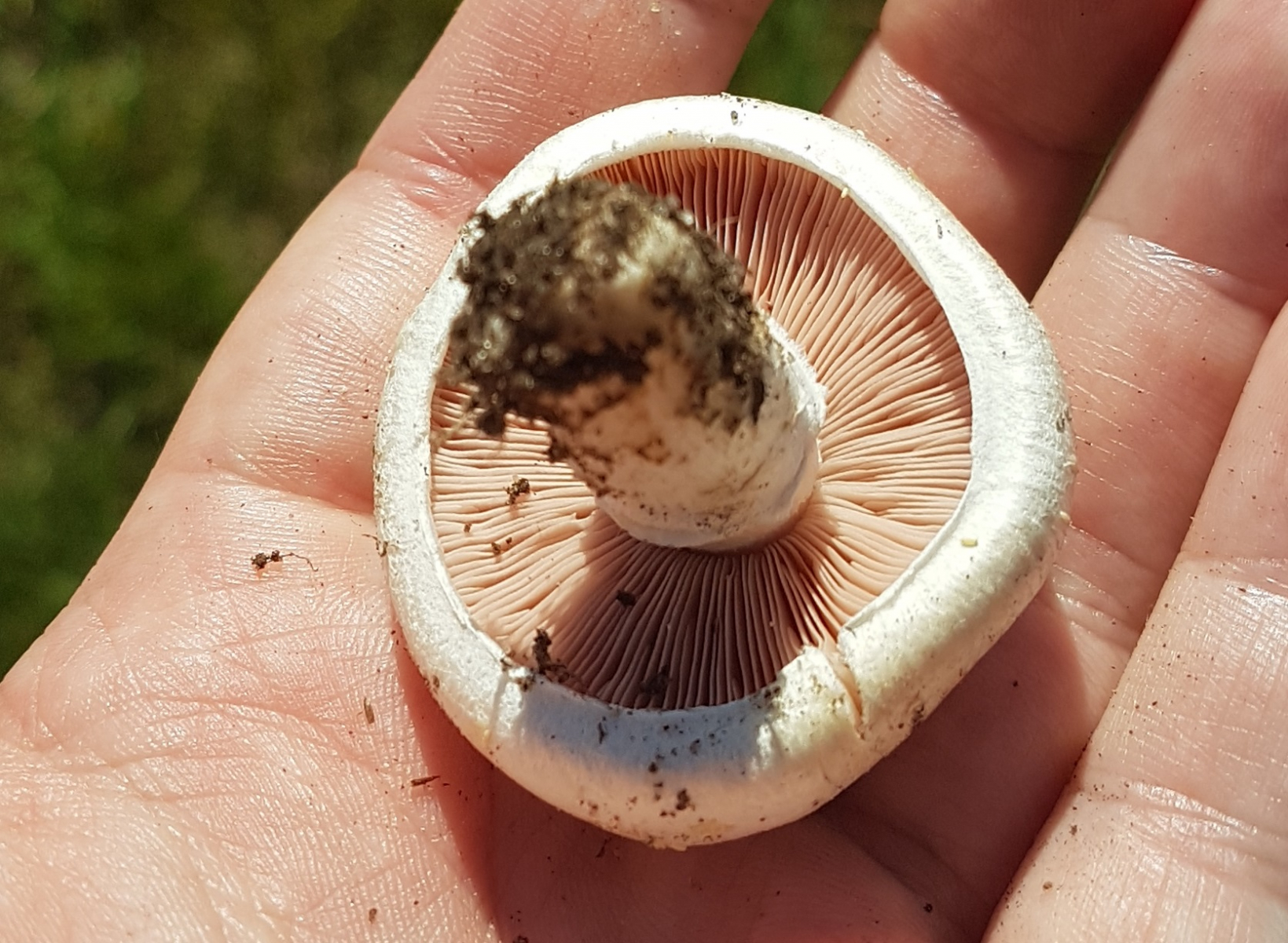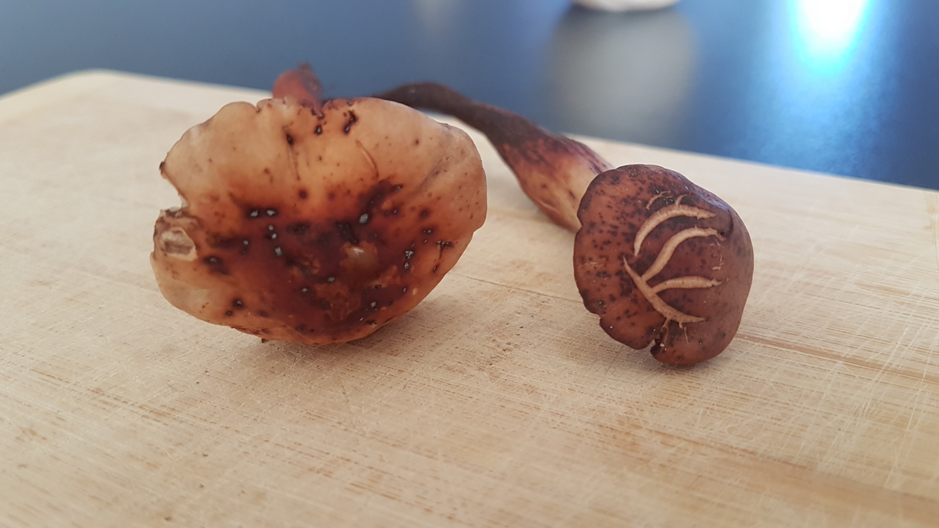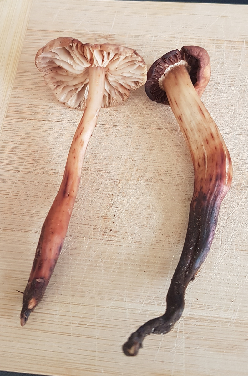 Das erste Exemplar wuchs, soweit ich erkennen konnte, auf stark zersetztem Totholz, das leider nicht mehr zu bestimmen war und roch angenehm pilzig. Hoffentlich fällt der nicht wieder in die Kategorie kbP ![]()