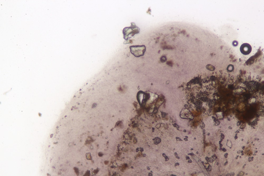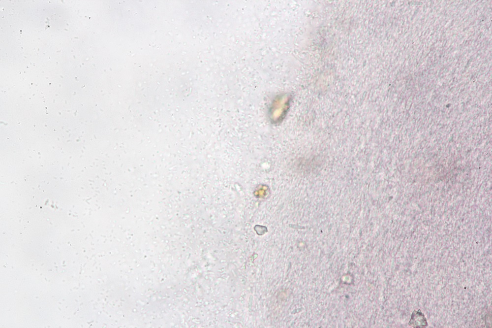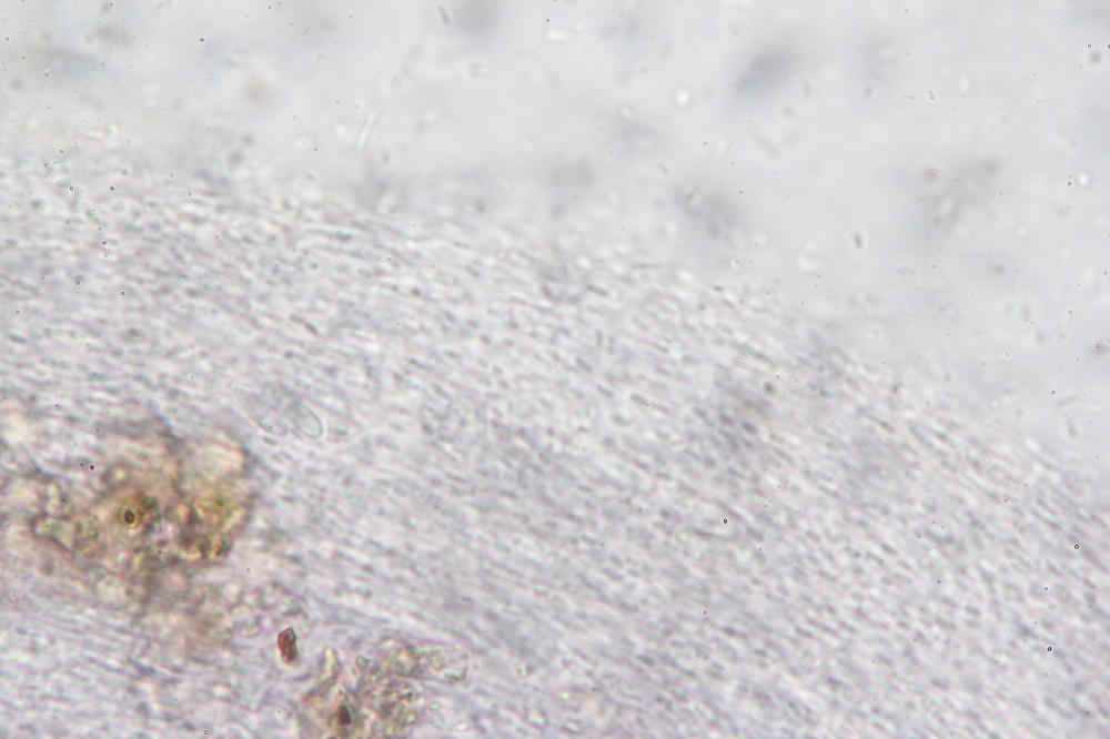 Makroskopisch könnte man meinen jemanden hätte Tinte verschüttet, aber Mikroskopisch besteht dieser Befall aus Stäbchenartigen Gebilden, die in Ketten vorhanden zerfallen.