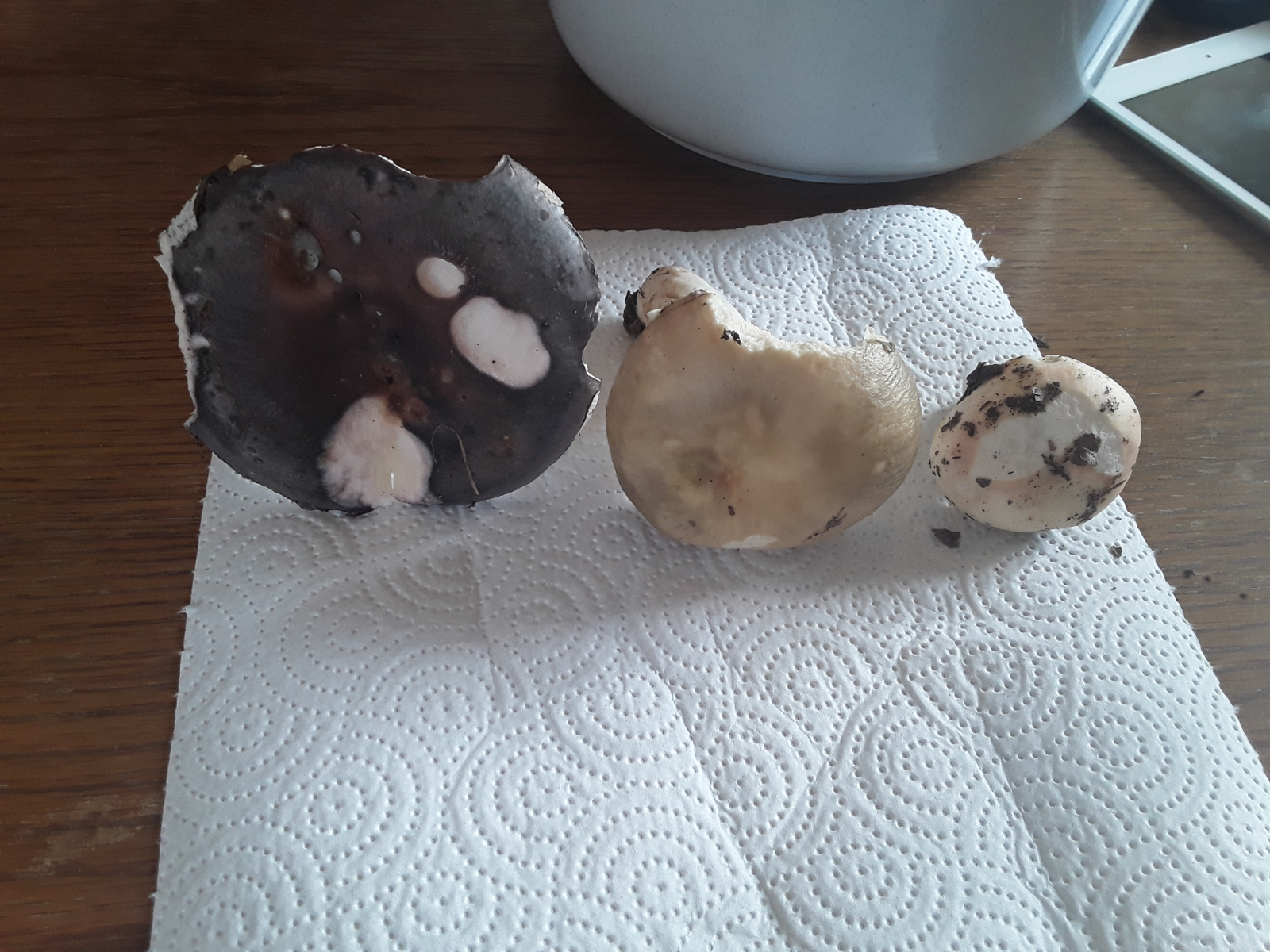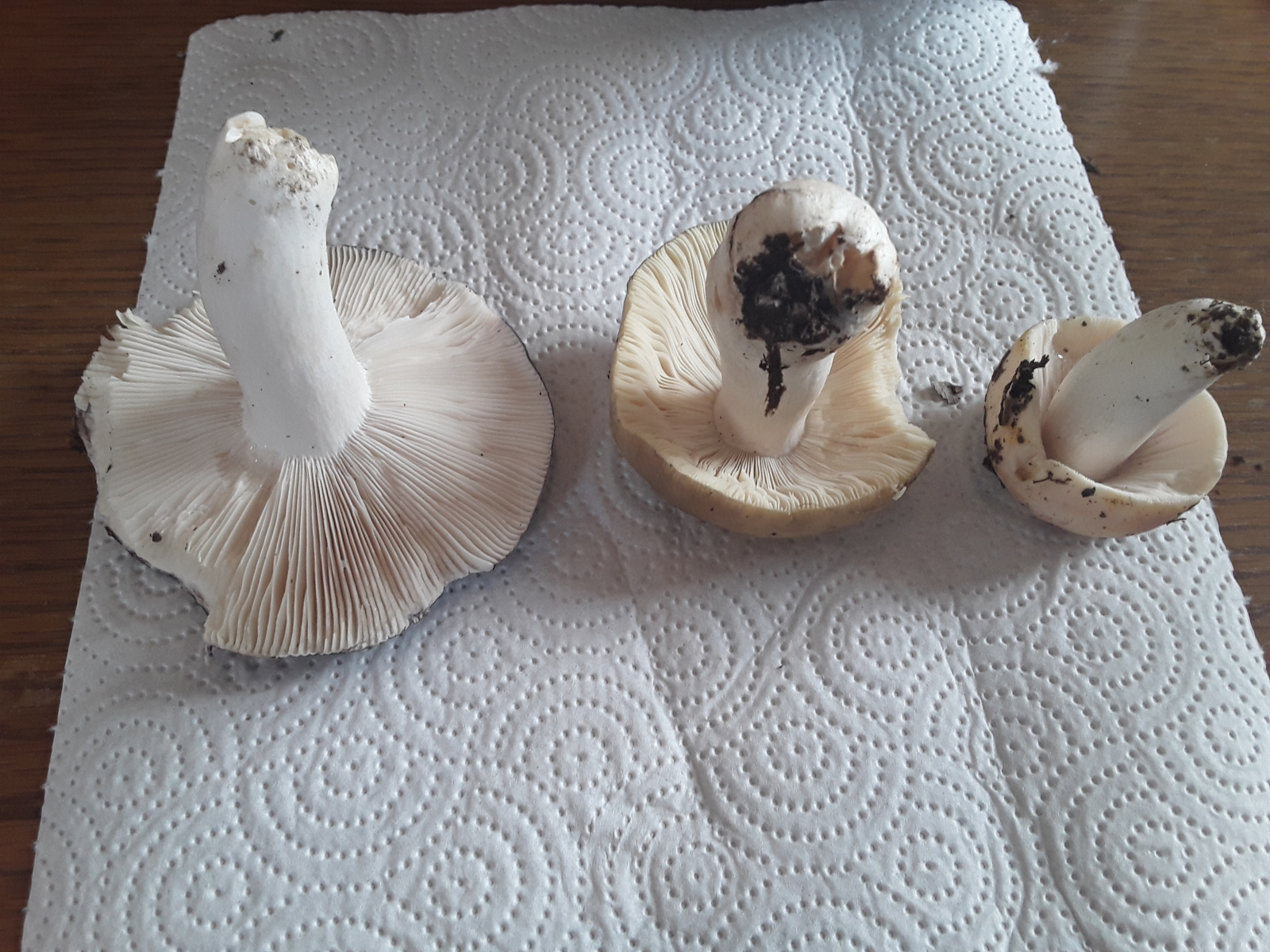 Alle drei haben einen angenehm pilzigen Geruch, Lamellen waren flexibel bis auf dem mittleren, dort waren die ganz leicht brüchig.