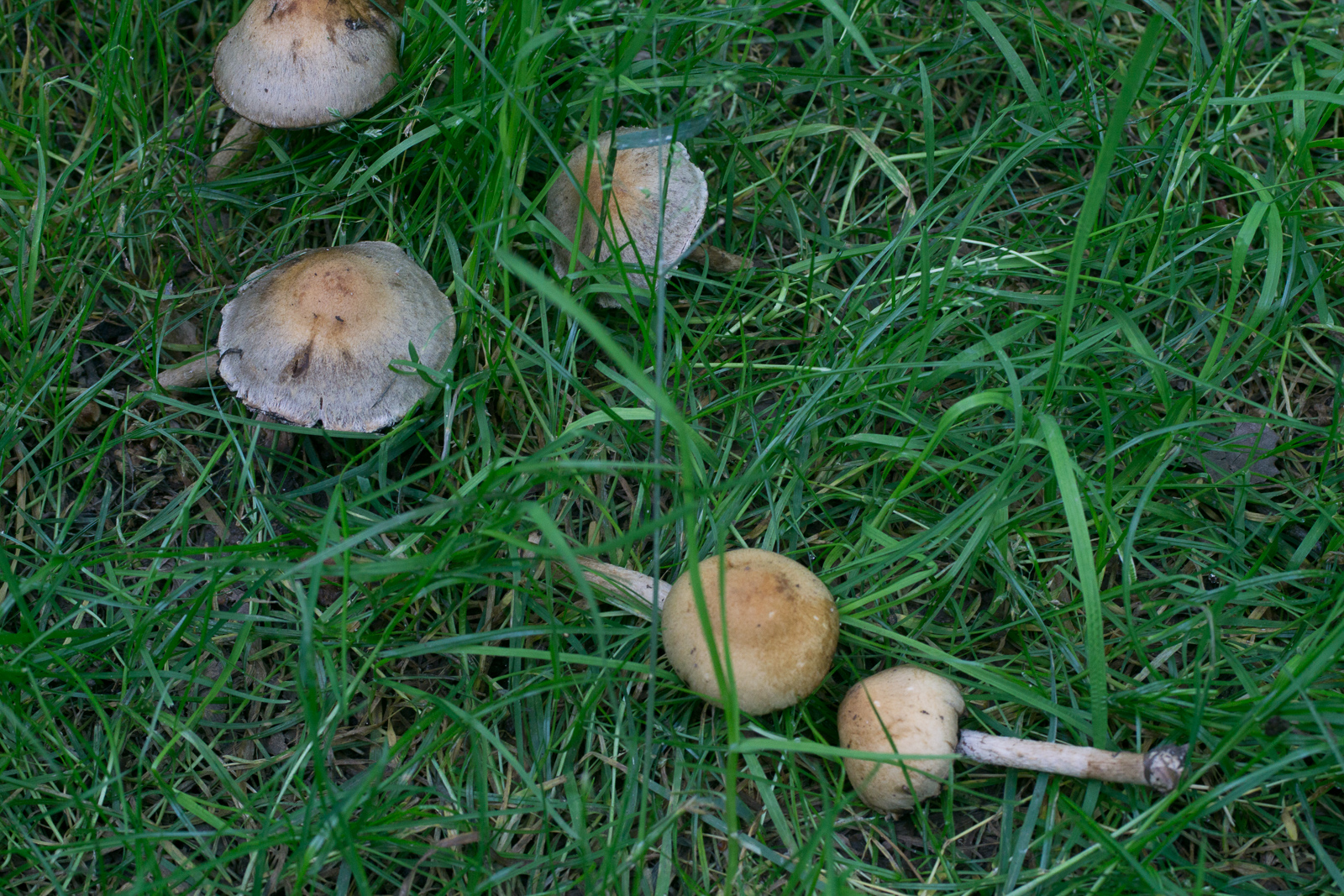 Nicht abgelichtet aber gesehen: Ein einzelner Hallimasch, ein Perlpilz, ein Breitblatt, Frauentäublinge, unbestimmte Tintlinge und Minipilzchen, zwei weitere Champignons und ein kleiner gelber Porling.