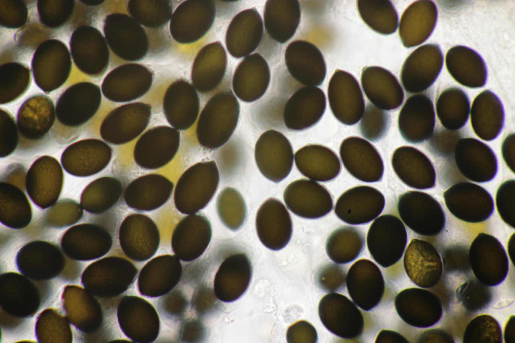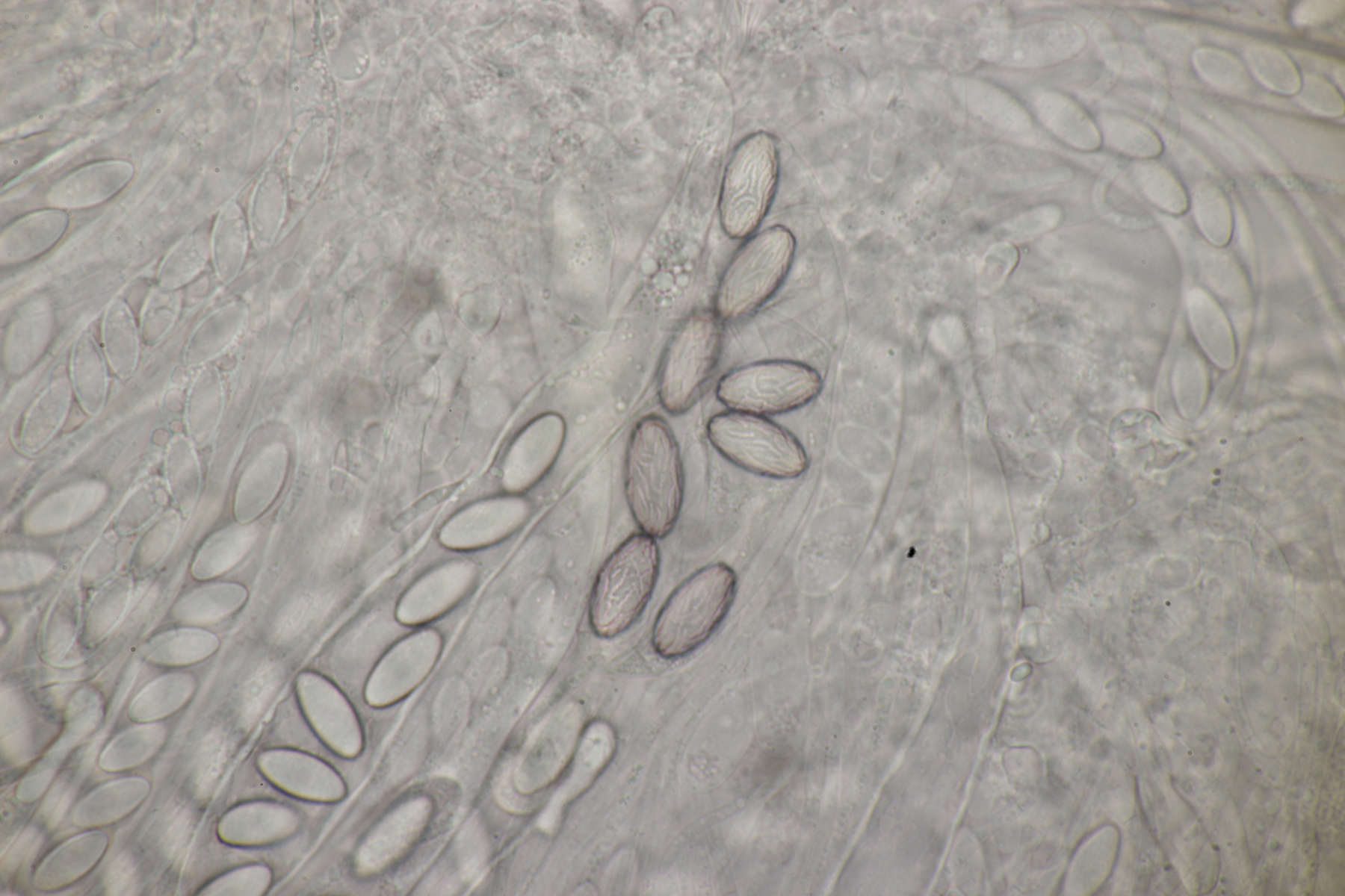 Eine richtige Idee habe ich hier gerade nicht. Sporengröße (18.3-21.4) µm x (11.6-12.9) µm, Asci ohne Reaktion mit Lugol