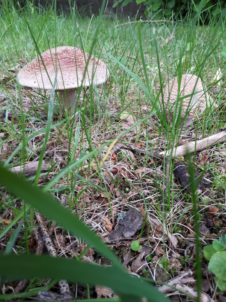 Es gab wieder einige schöne Perlpilze - frisch gewachsen und dieses Mal nur der Stiel madig.:)