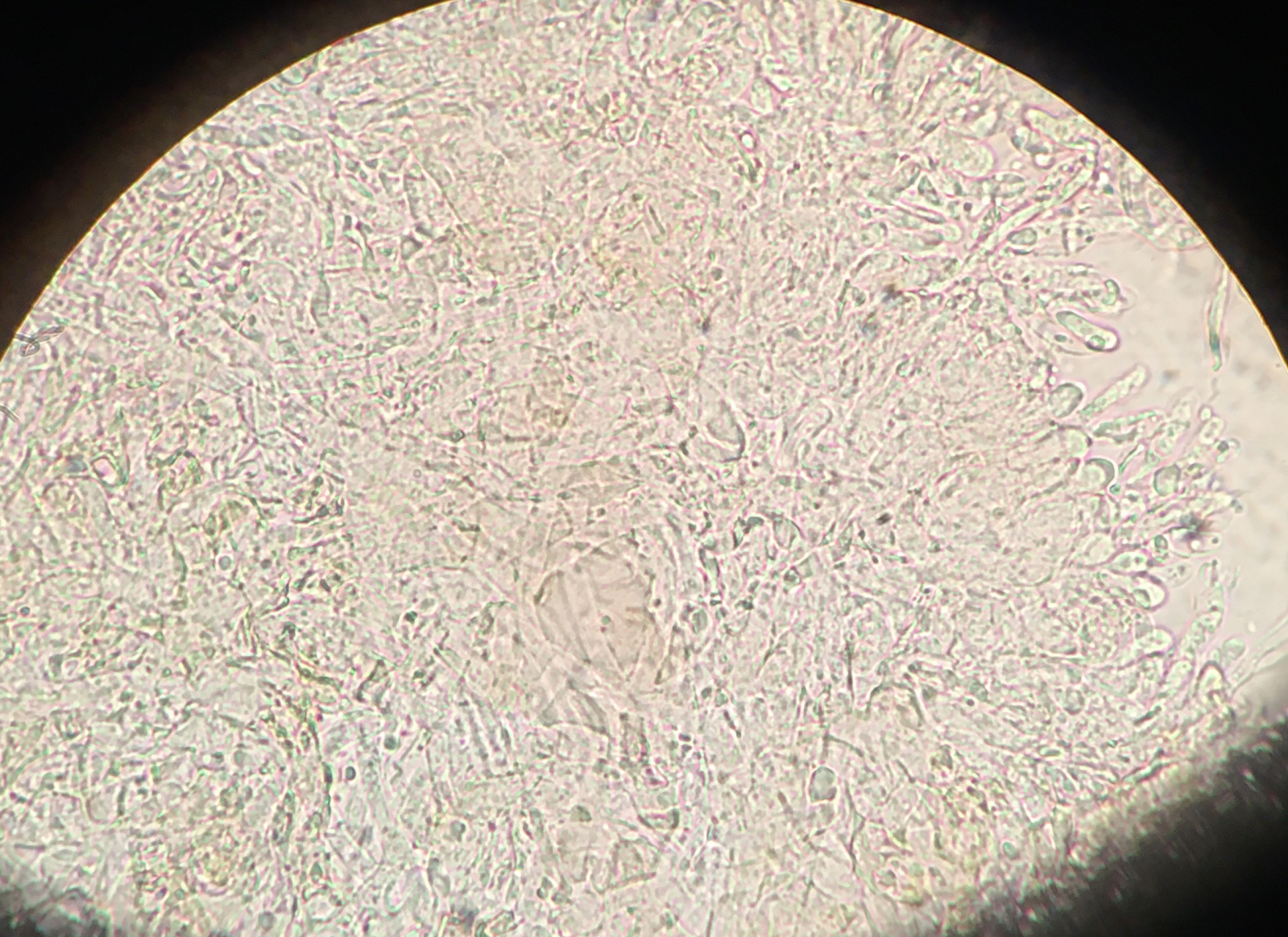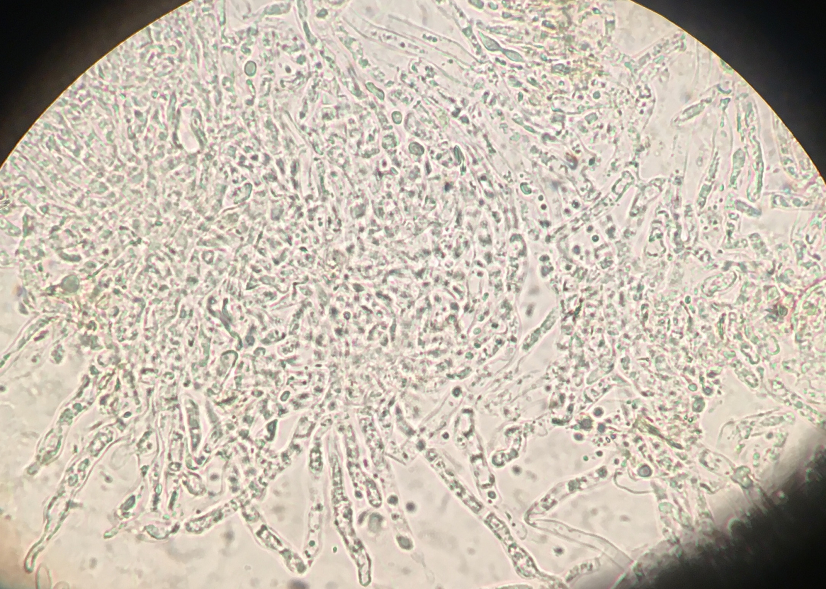 C. mellita sieht meinem Fund tatsächlich sehr ähnlich. Ich habe den Pilz heute nochmal mikroskopiert und keine Schnallen gefunden. Mit der Interpretation der mikroskopischen Strukturen tu ich mir noch etwas schwer, aber ich denke, er ist monomitisch und dass ich auch Oleiferen gefunden habe.