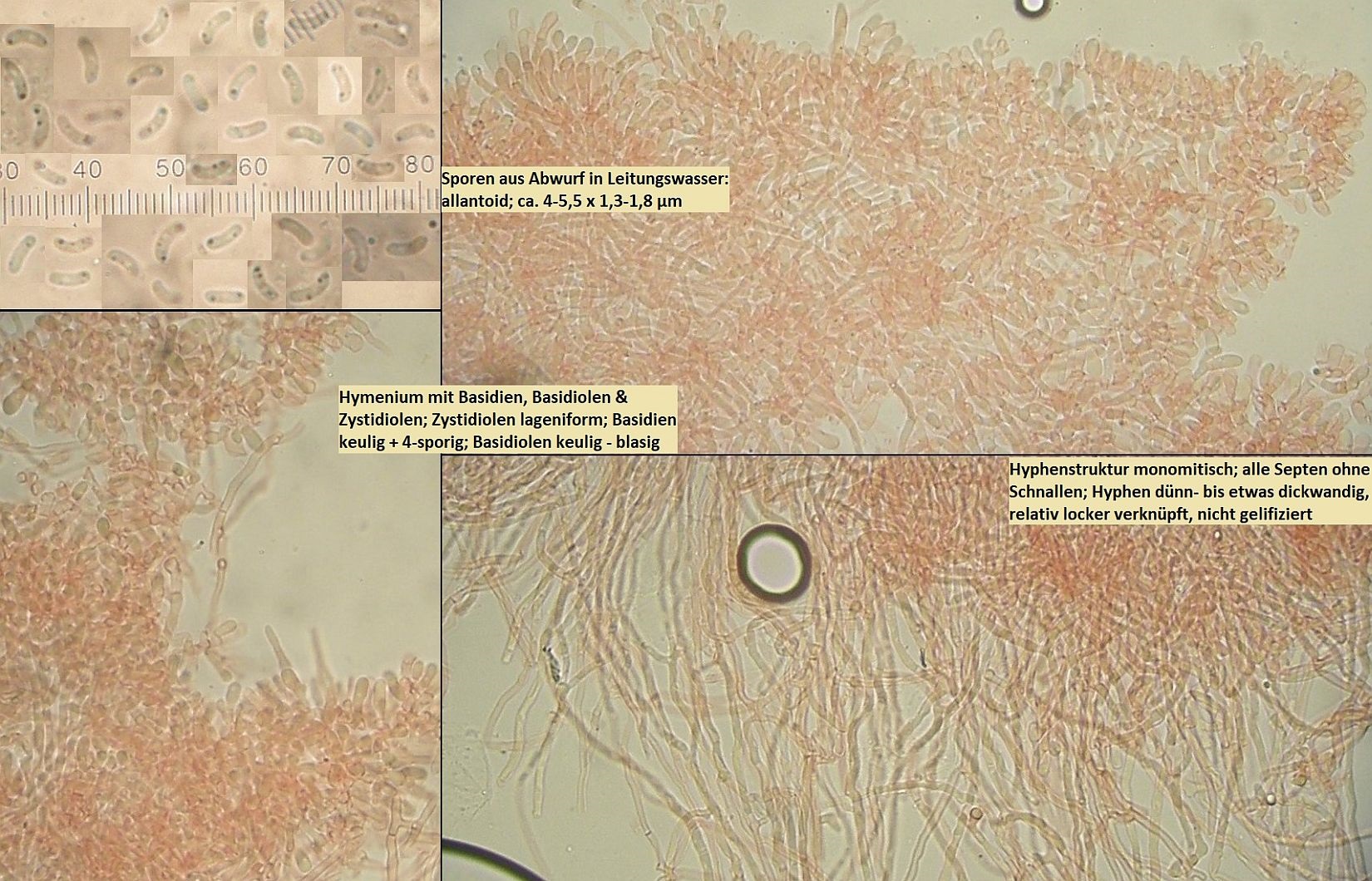 Bei beiden habe ich keine Sporen bis 6µm Länge messen können, wenn ich mich richtig erinnere. Aber die erste war eben schon recht alt, und die Sporen spärlich, die zweite vielleicht noch zu jung und die Sporen nicht ganz ausgereift.