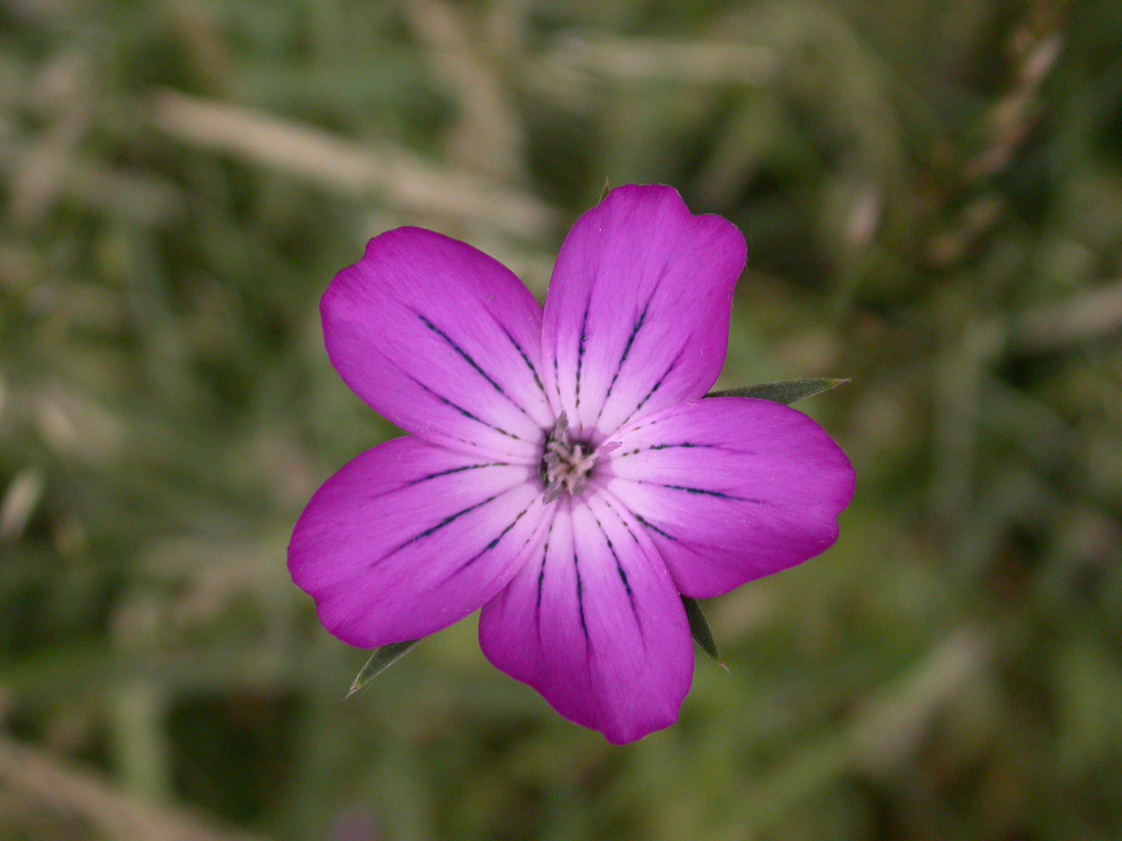 Dort fielen mir dann in einer hüfthohen Wiese diese durch die langen Kelchblätter sehr auffälligen schönen Kornraden, Agrostemma githago auf.