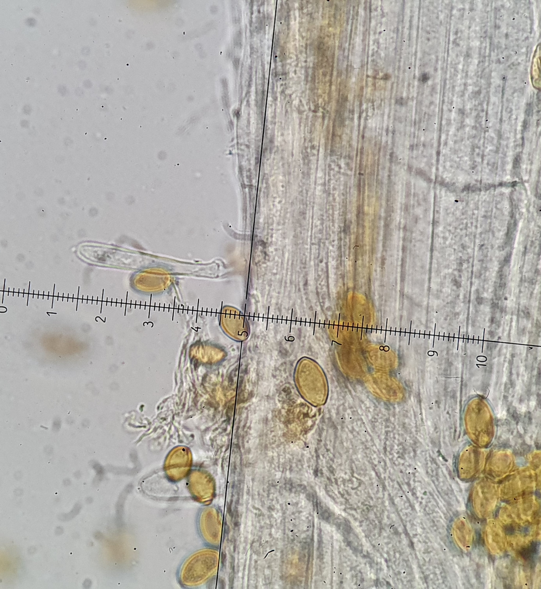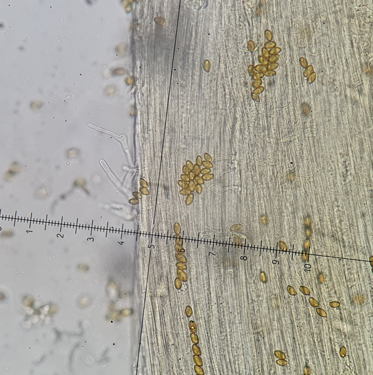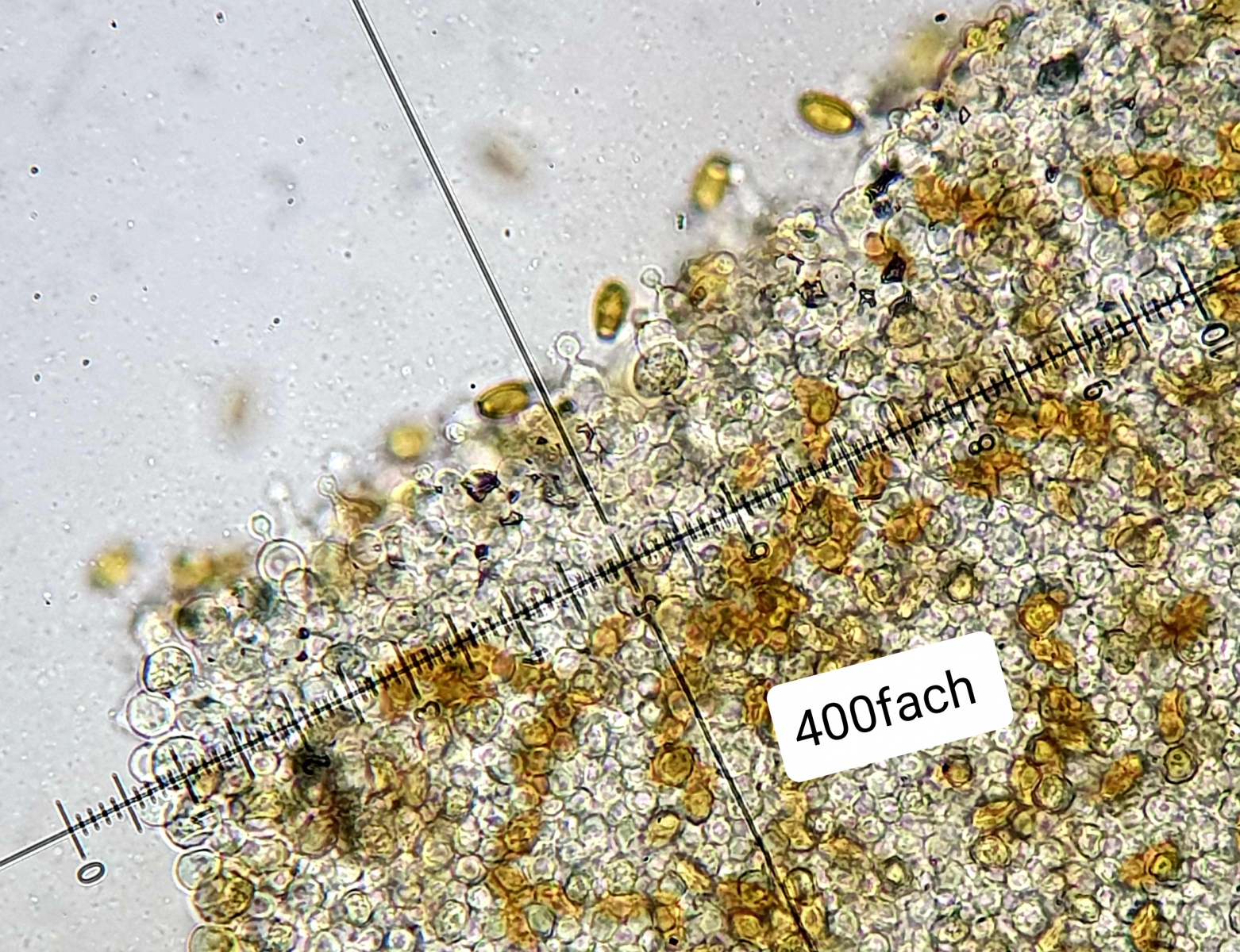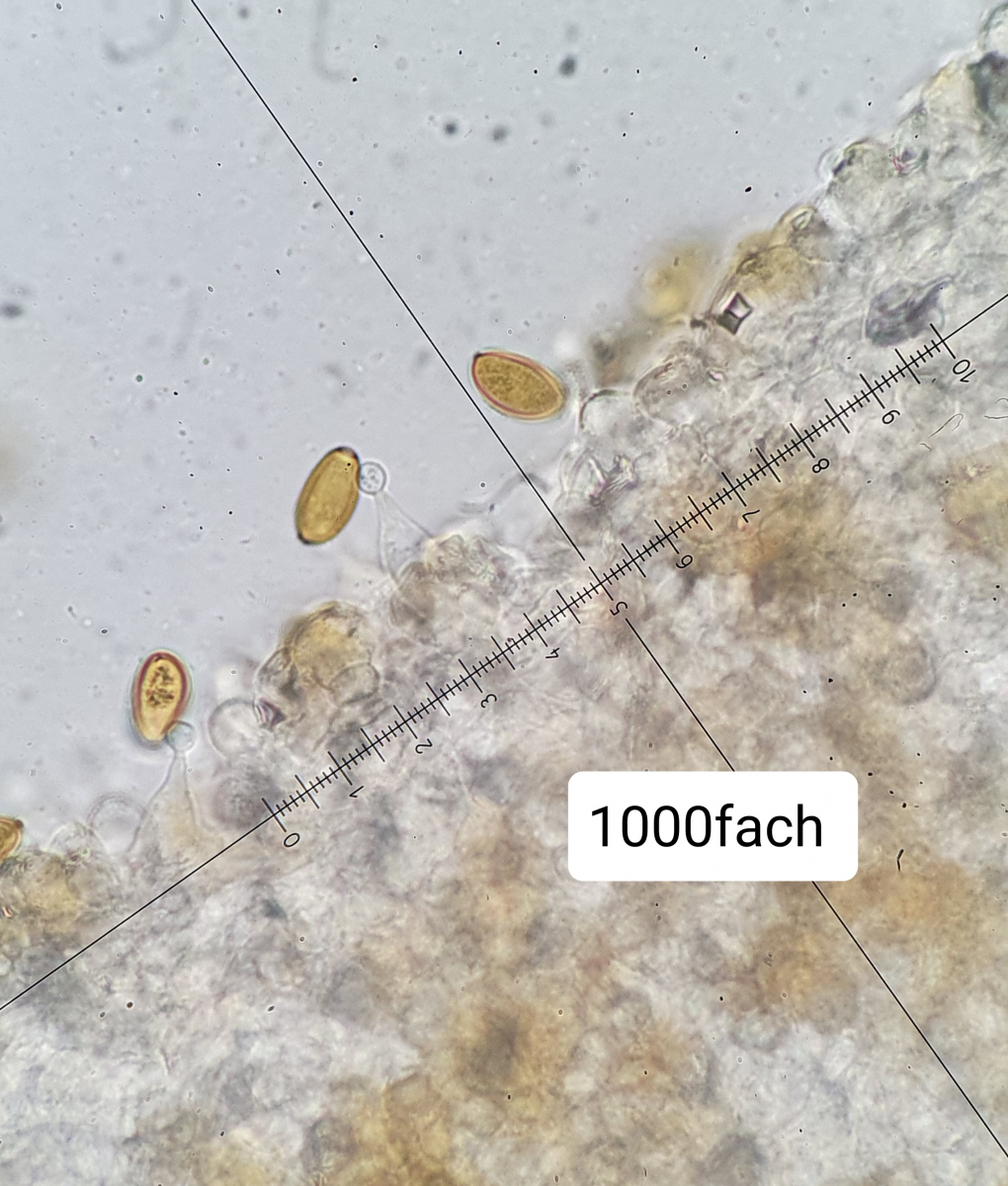 Mikromerkmale: Sporen 10x5(6)µm mit Keimporus, relativ dickwandig, in KOH aus meiner Sicht rotbraun (siehe Bilder)