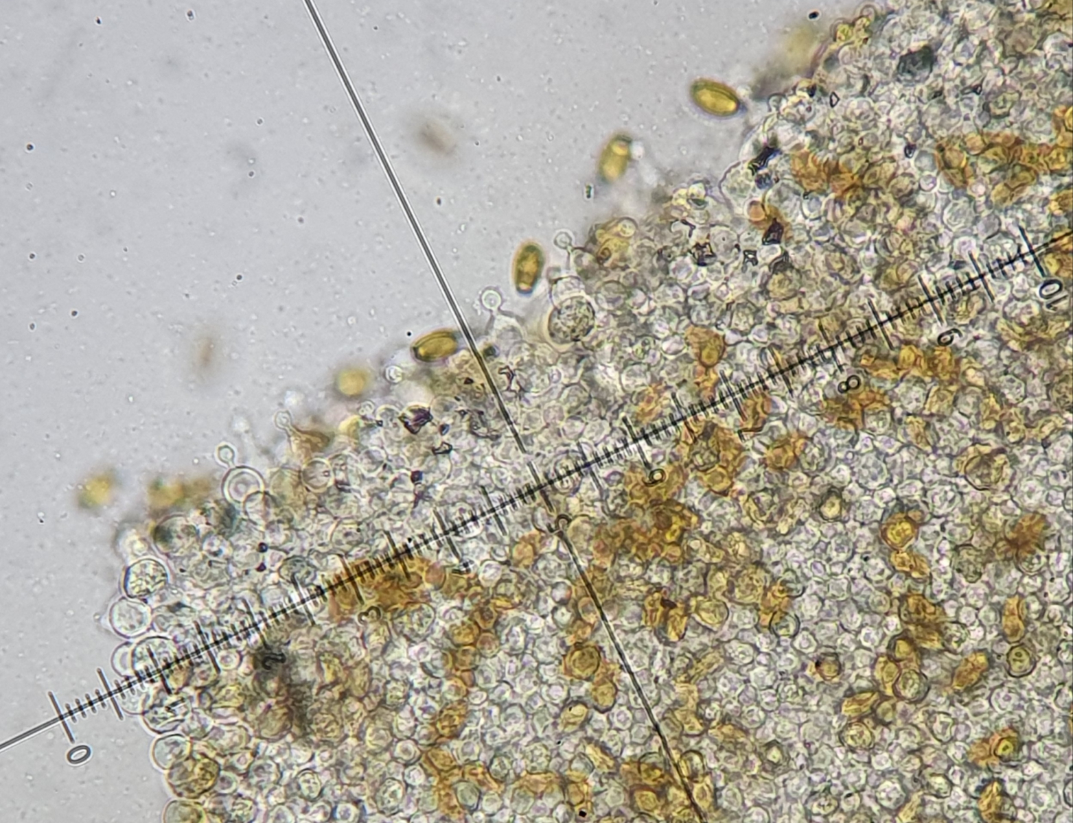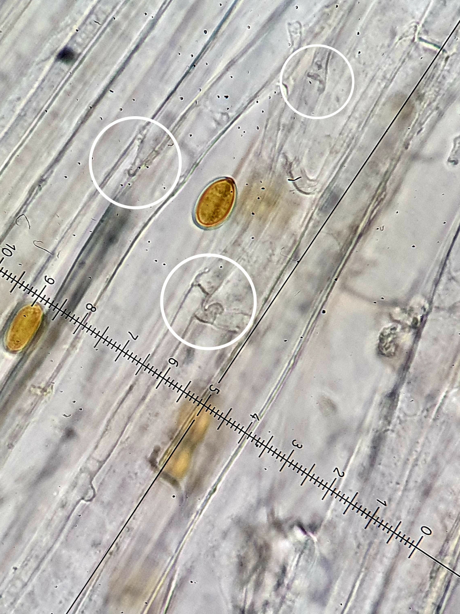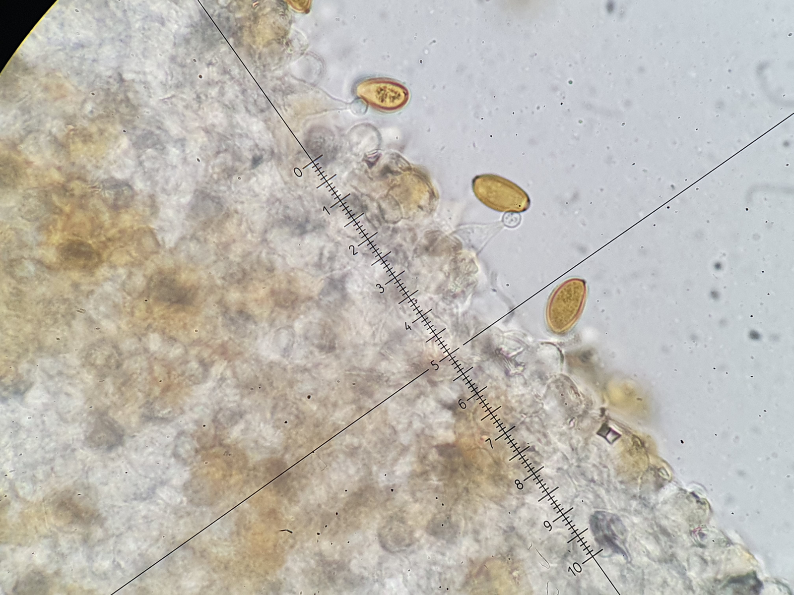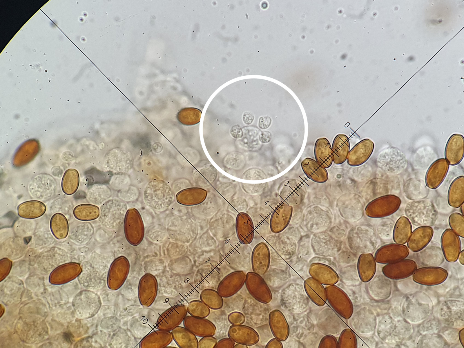 Mikromerkmale: Sporen 10x5(6)µm mit Keimporus, relativ dickwandig, in KOH aus meiner Sicht rotbraun (siehe Bilder)