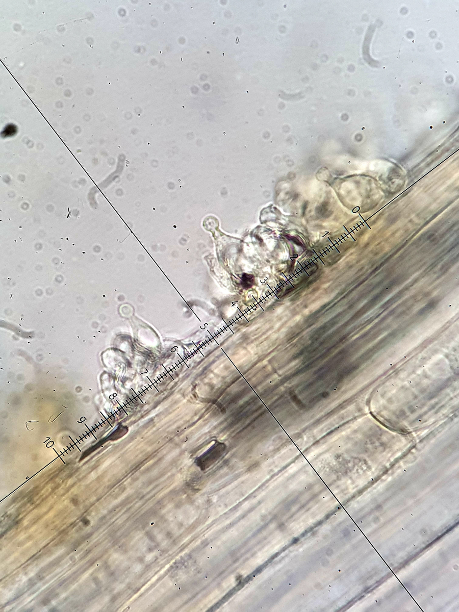 dicke und dünnere Stielhyphen, letztere auch mit Schnallen.
