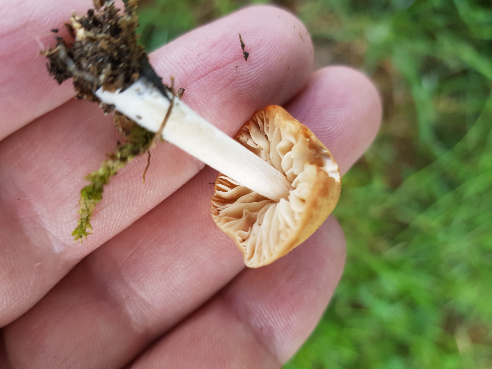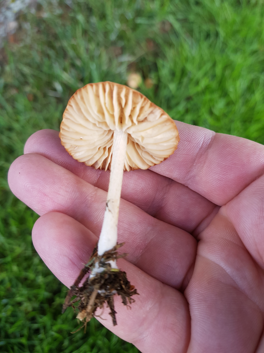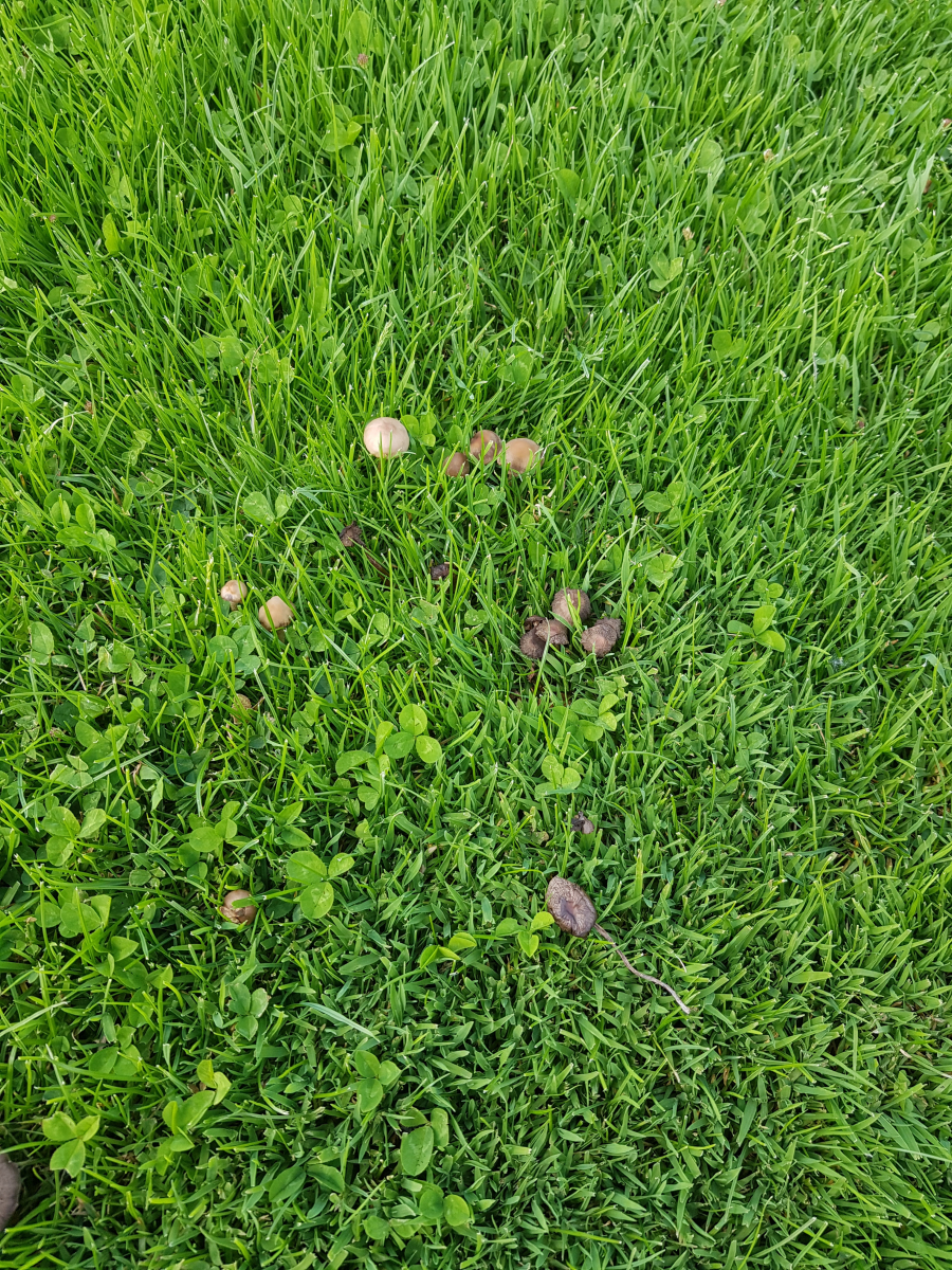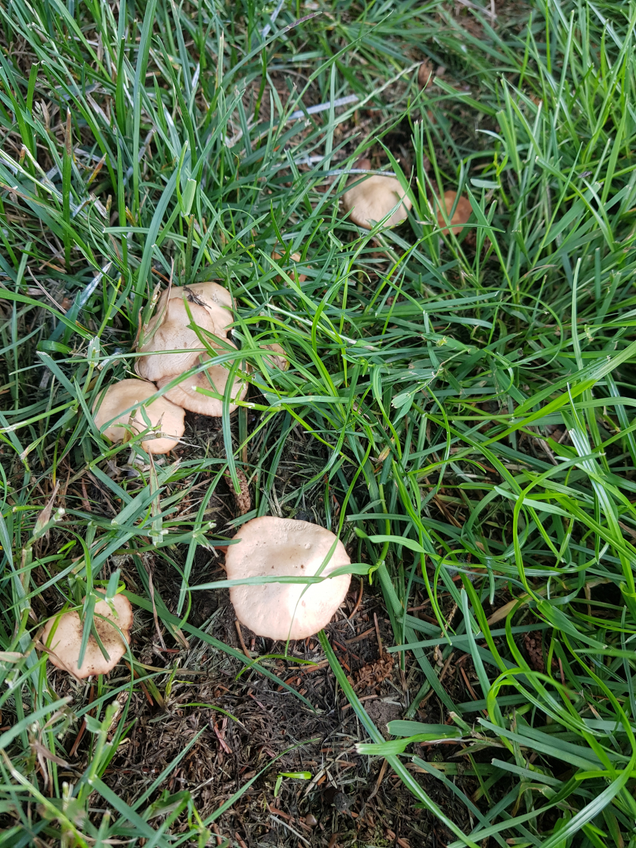 ich habe vorm Haus einen Fussballplatz und ich wollte mal gucken, ob ich Nelkenschwindlinge finden kann. Habe bisher nie welche gefunden und kenne die nur aus der Theorie (=Youtube). Ich habe mal ein paar Bilder gemacht von 4 Fundorten aber ich denke das sind nur 2 verschiedene Pilze mit je 2 Fundorten. Den helleren (Pilz 2) halte ich für einen Nelkenschwindling. Meine Überlegung ist hier die Zeit des Auftretens, Huthaut dunkler als die Lamellen und der Stil lässt sich stark verdrehen und springt beim Loslassen zurück in seine Ursprungsform. Was mich etwas irritiert sind zwei Dinge. Erstens wuchs der Pilz bei Fundort a nicht unbedingt in einem Hexenring sondern - so hatte ich das Gefühl - eher entlang der Wurzel von einem der Bäume von denen ich auch noch ein Bild mitgeschickt habe (Douglasie? Ich habe keine Ahnung von Bäumen leider). Ich denke von den Bäumen kommt es auch dass die Hutfarbe etwas dunkler ist als bei Fundort b der komplett sonnenexponiert ist. Das zweite was mich irritiert ist der Geruch. Für mich riecht das nicht unbedingt angenehm und auch nicht nelkig. Eher ein bisschen nach "bereits in der Zersetzung". Ich vermute aber dass die einfach zu alt sind. Ich glaube die stehen schon seit 3-5 Tagen. Falls es ein Nelkenschwindling ist würde ich aber nach dem nächsten Regen noch mal etwas zeitiger hingehen. Ich wollte die gerne mal auf der Kaffeemaschine trocknen und zu pulver zermahlen. Habe die Idee von hier: Der Nelkenschwindling, ein feiner, frueher Wuerzpilz
