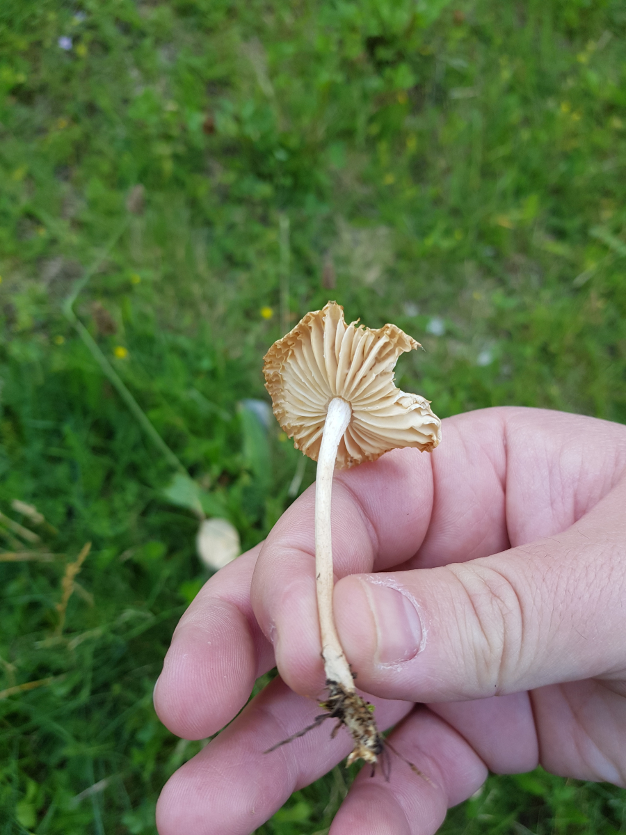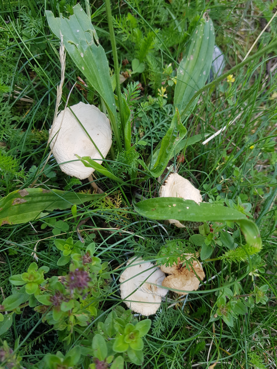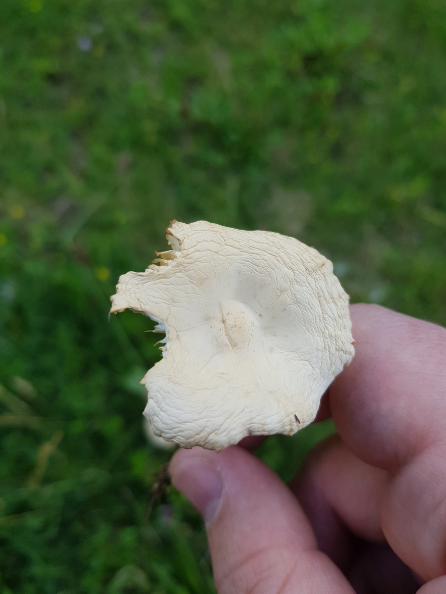 Beim anderen Pilz (Pilz 1) habe ich überlegt, dass es ein früher Mürbling sein könnte oder etwas anderes aus der Gattung. Der ist insofern interessant weil der in sehr grossen Mengen wächst, quasi über den ganzen Fussballplatz. Geruch ist sehr angenehm kräftig und typisch pilzig finde ich. Bei Fundort b habe ich versucht das gesellige Auftreten darzustellen und ein besonders altes Exemplar. Fundort a ist eher so ein "ganz typisches" Exemplar.