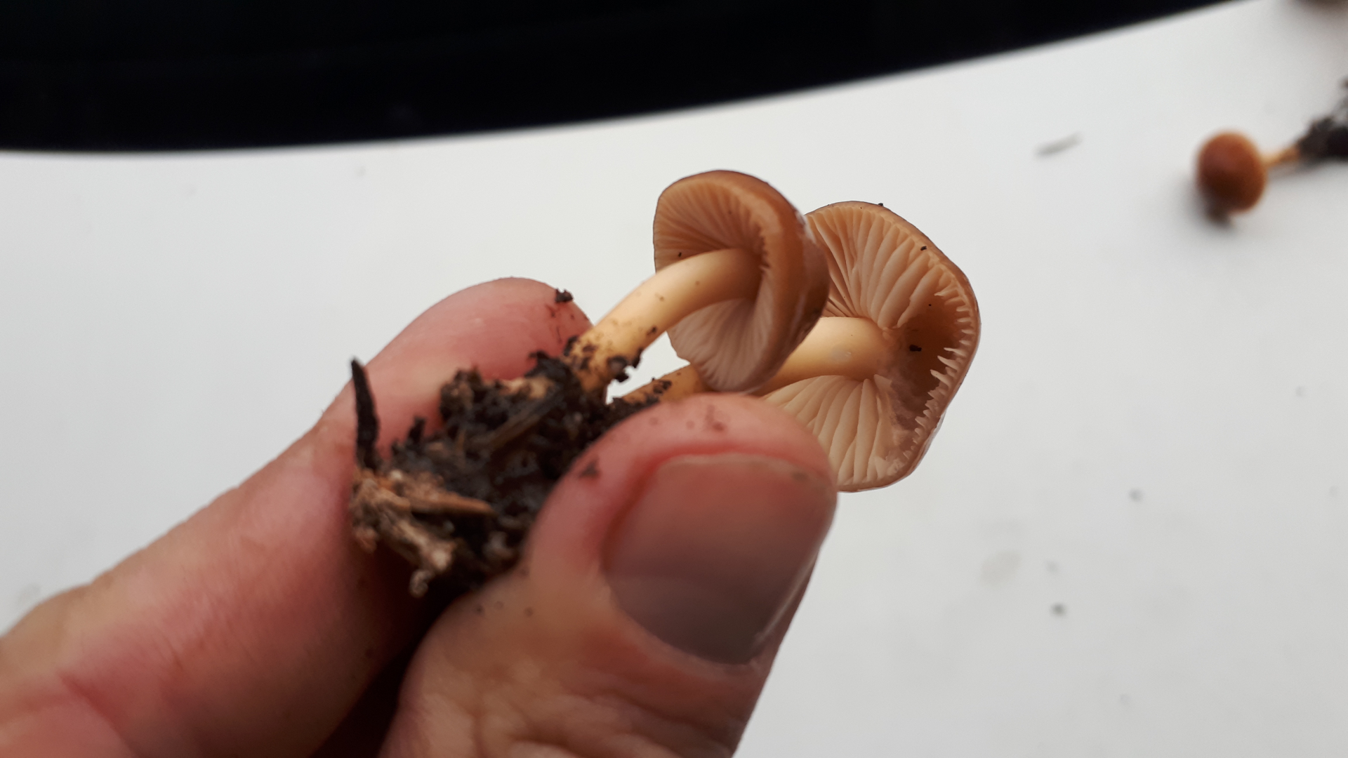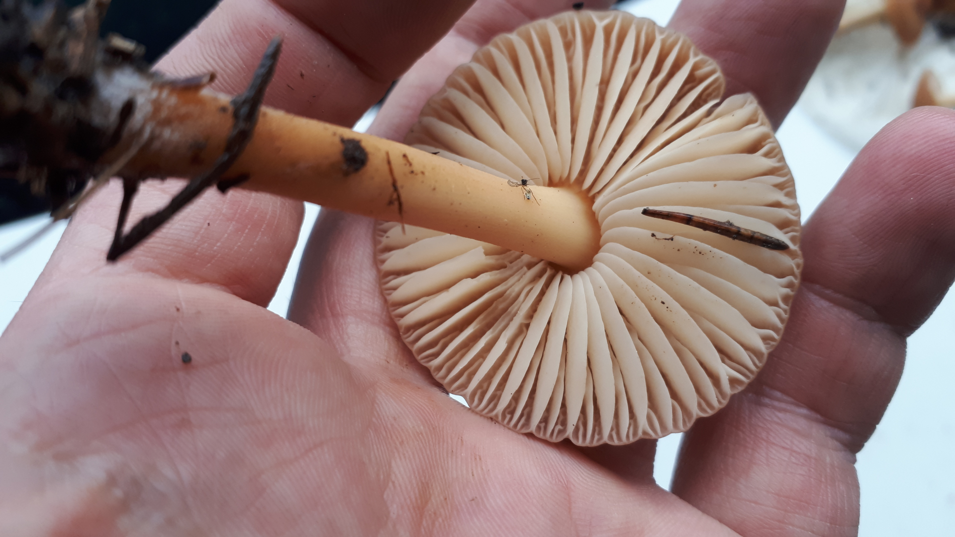 Hallo! Mein Vater hat die Schwammerl vom Waldrand mitgebracht. Ich tippe auf Nelkenschwindlinge. Breite Lamellen und zäher Stiel... riechen tut er für mich aber pilzig... was denkt ihr?