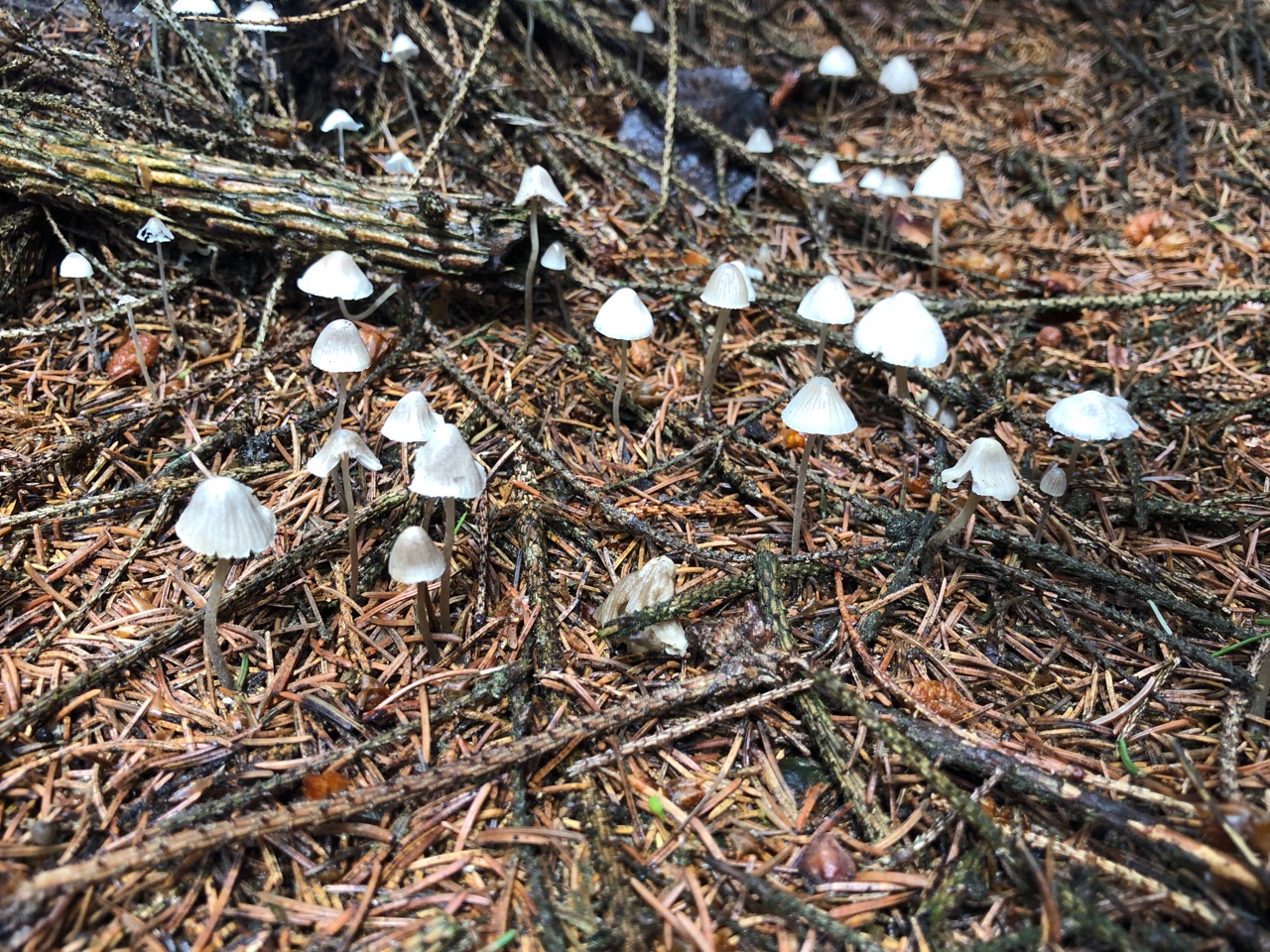 Überall standen nebelnasse Rosshaarschwindlinge.