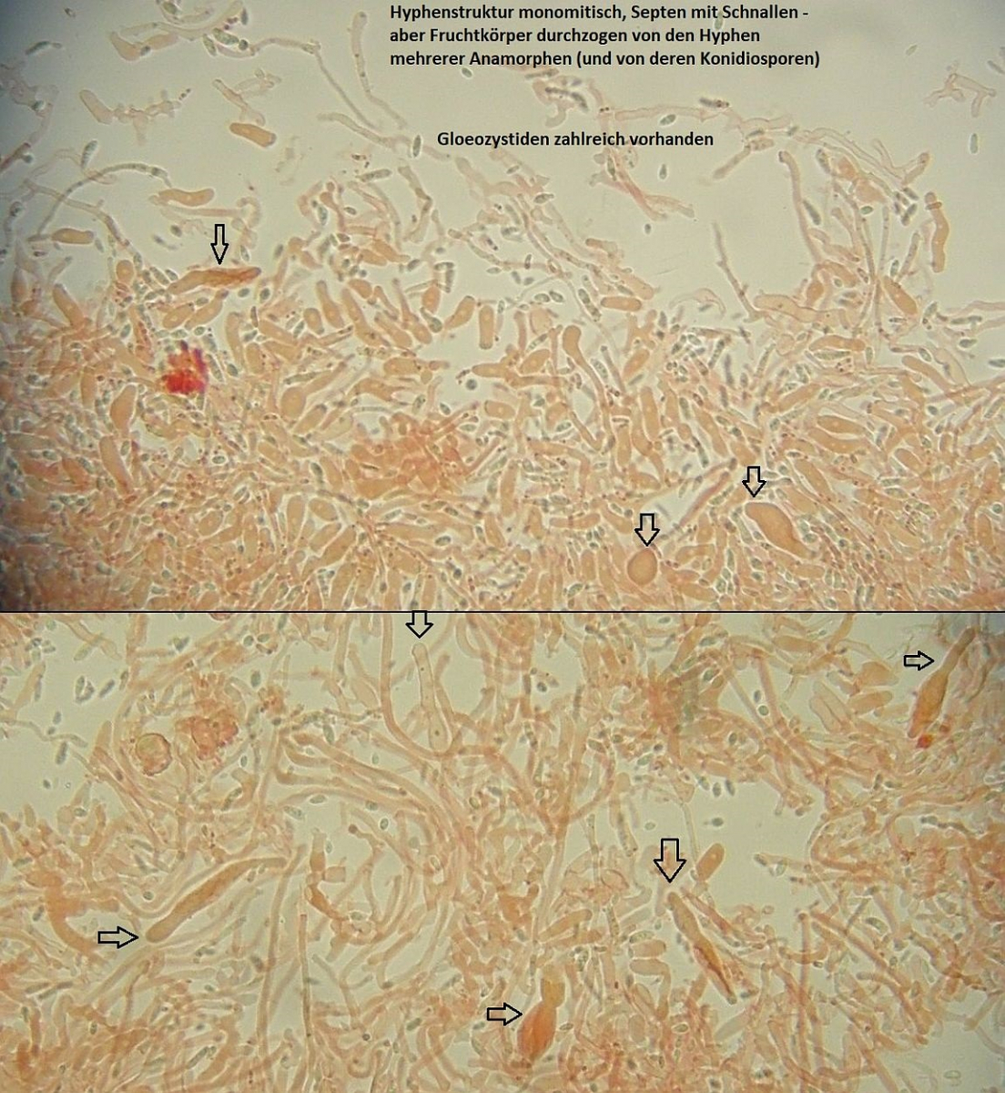 • Vielen Dank Pablo für die ausführliche Erklärung dieser mir fast völlig unbekannten Gattung. Darauf werde ich mit Sicherheit zurückkommen, wenn es mir einmal gelingt, selbst einen rötenden Baumpilz zu entdecken. Wobei ich ja immer ein Problem damit habe, die zu mikroskopieren. Aber ich weiß glücklicherweise jemanden, der das ggf. für mich tun und Zweifel ausräumen kann.==Gnolm13