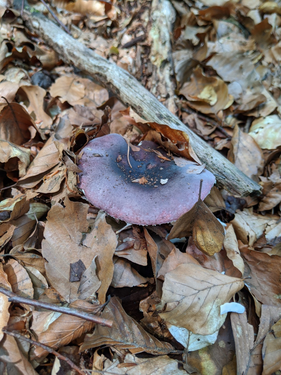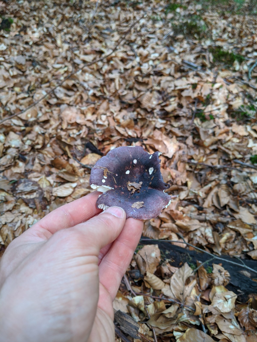 4) Irgendein Täubling, die Farben täuschen hier, der Pilz war kräftig Lila und hatte spröde Lamellen: