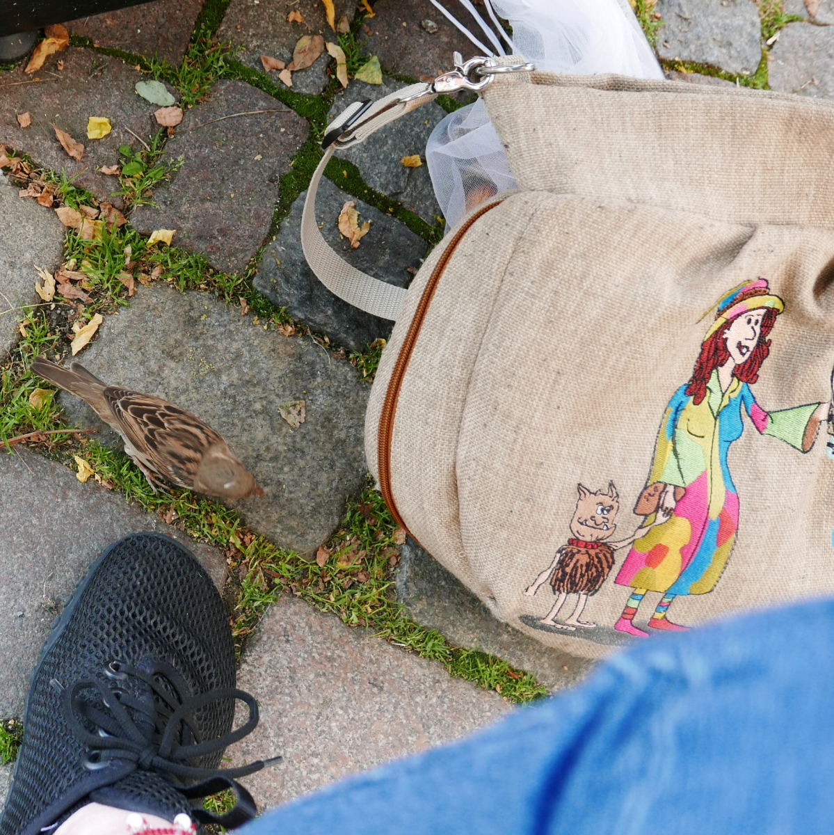 19 Hungriger Spatz mit Tuppies Fuß und Tasche