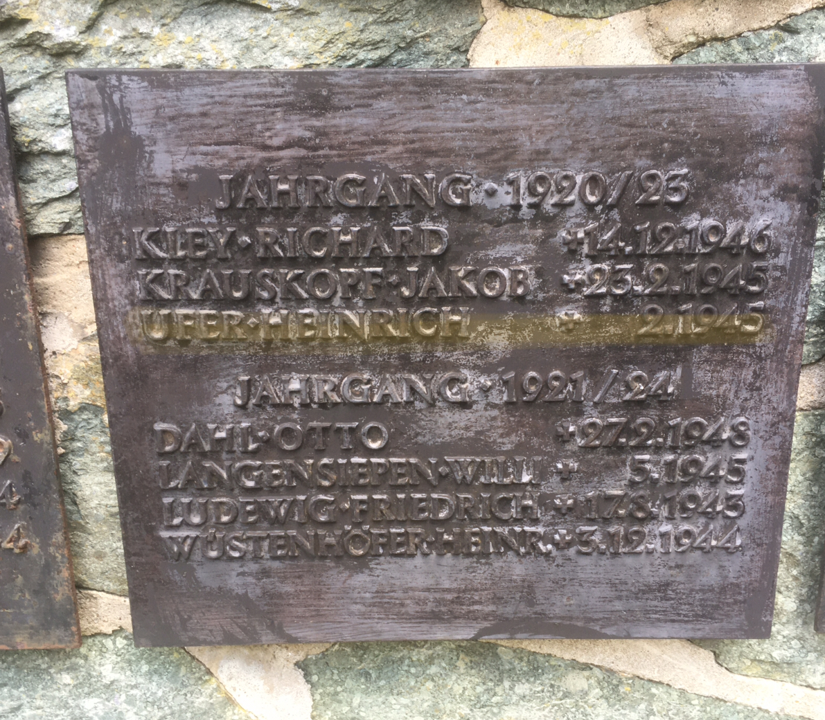 4.: Der Name unseres Opas Heinrich Ufer auf einer Plakette der im zweiten Weltkrieg gefallenen ehemaligen Absolventen des Wetzlarer Lehrerseminars.