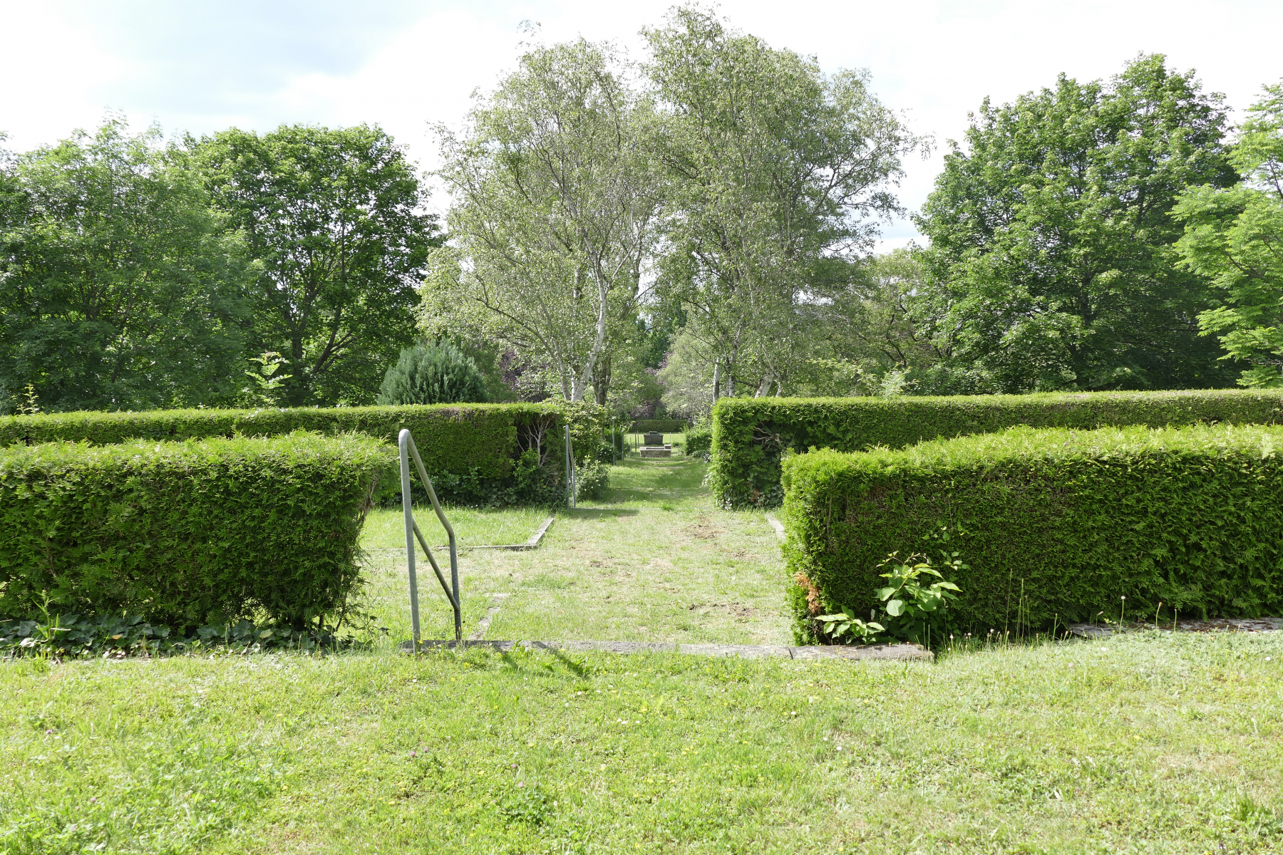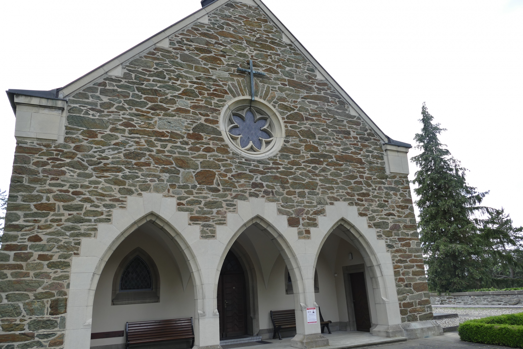 Die 1928 erbaute Kapelle unter der sich das Krematorium befand. Hinter der Kapelle sieht man die Kaskaden. Diese wurden irgendwann mit Erde gefüllt, vergessen und erst vor ein paar Jahren wieder entdeckt und restauriert.