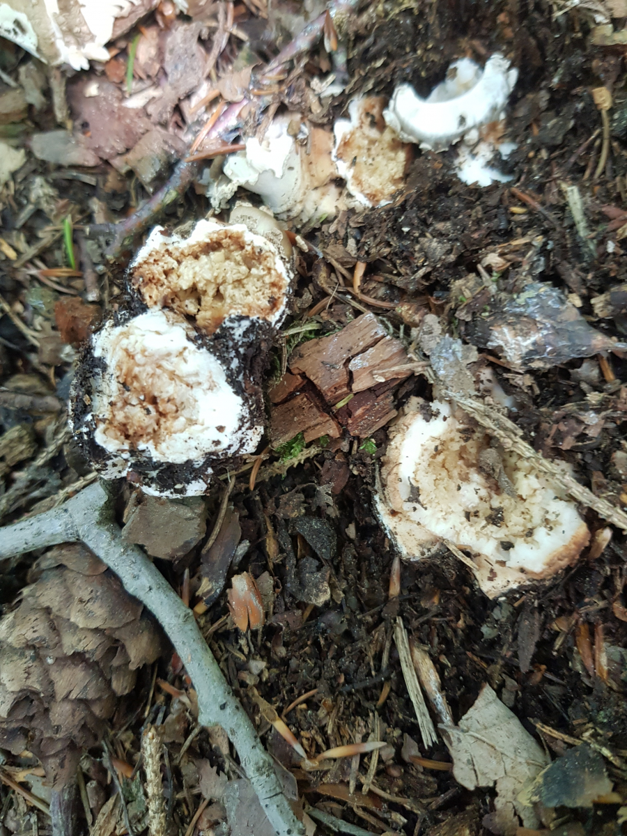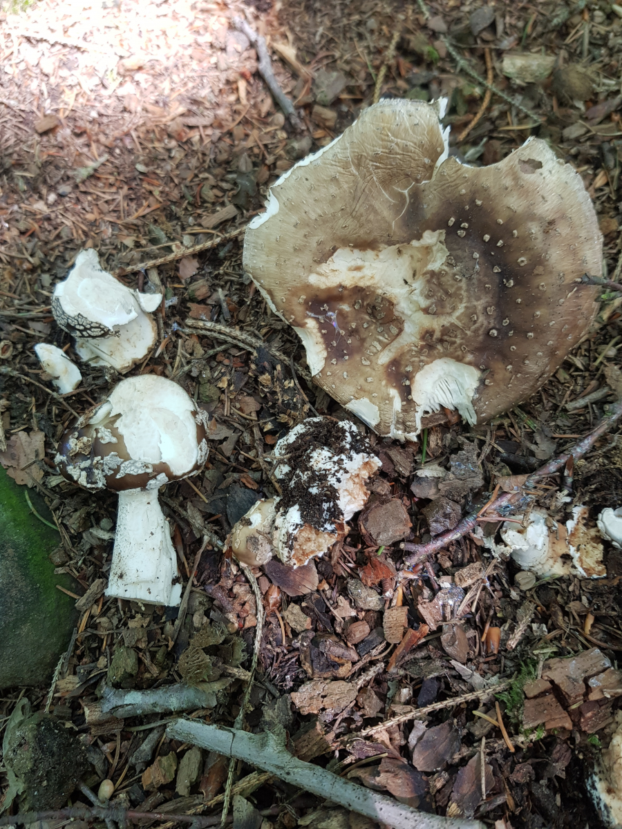 folgende Kandidaten habe ich gerade im Mischwald gefunden. Leider haben die Würmer ordentlich Arbeit geleistet. Jetzt meine Frage: von den Hutfarben her sind ja alle drei Kandiaten möglich (Panther, Grauer, Perli).
