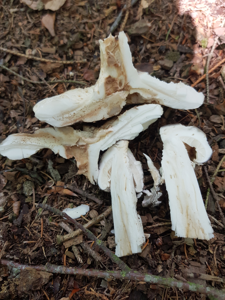 Jetzt sind an den Madengängen bräunliche Verfärbungen zu sehen. Hat der Graue Wulstling überhaupt irgendwelche Möglichen Brauntöne an Stellen, wo er schon am Vergehen ist?