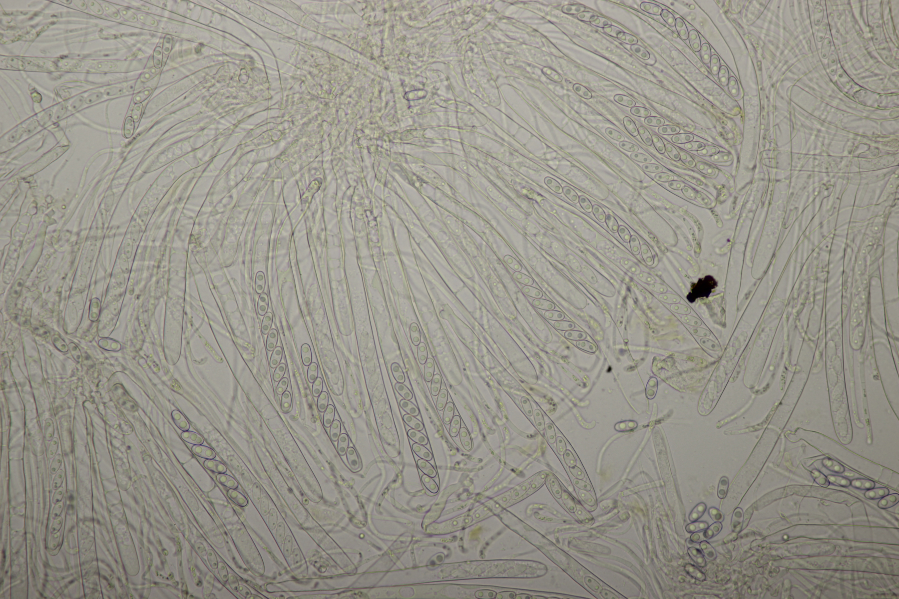 9. Otidea alutacea, Sporengröße (14.8+-0.7) µm x (6.9+-0.3) µm, Q=2.1+-0.1