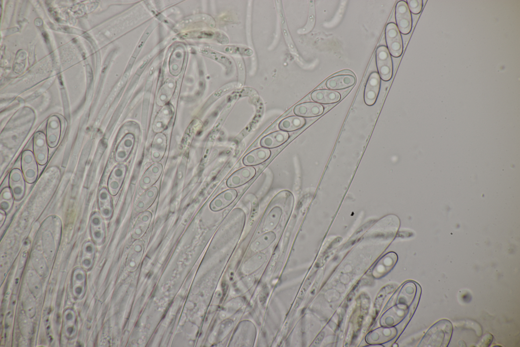 9. Otidea alutacea, Sporengröße (14.8+-0.7) µm x (6.9+-0.3) µm, Q=2.1+-0.1