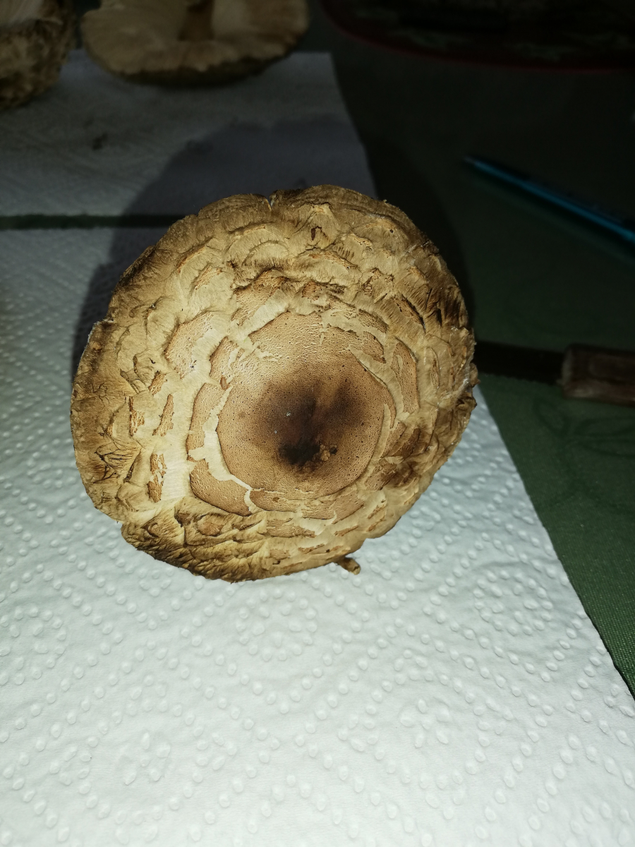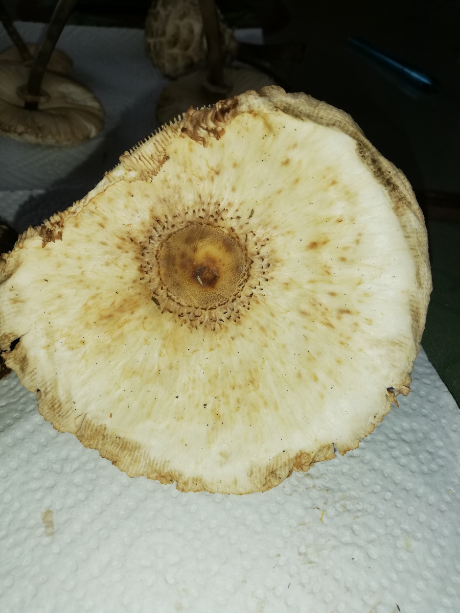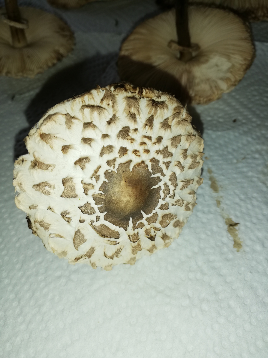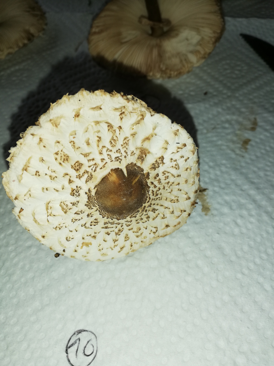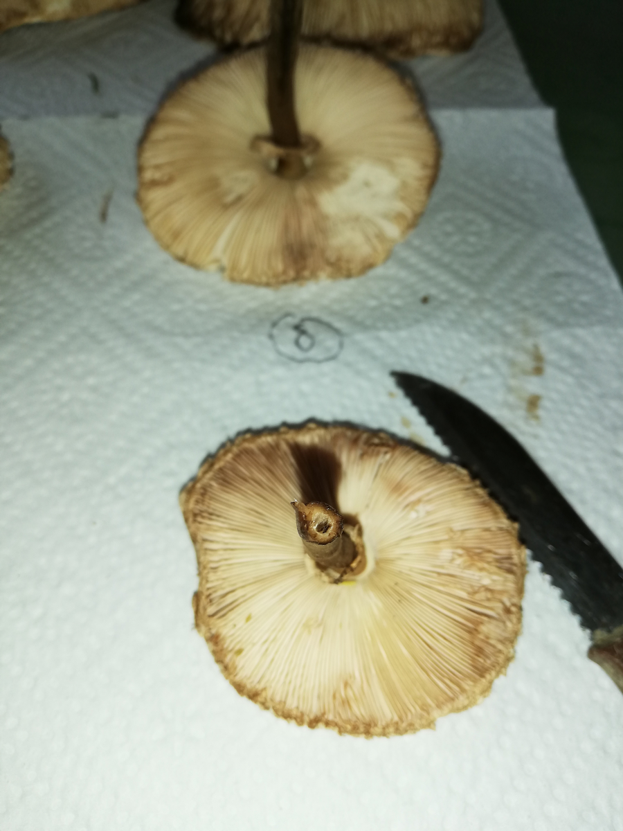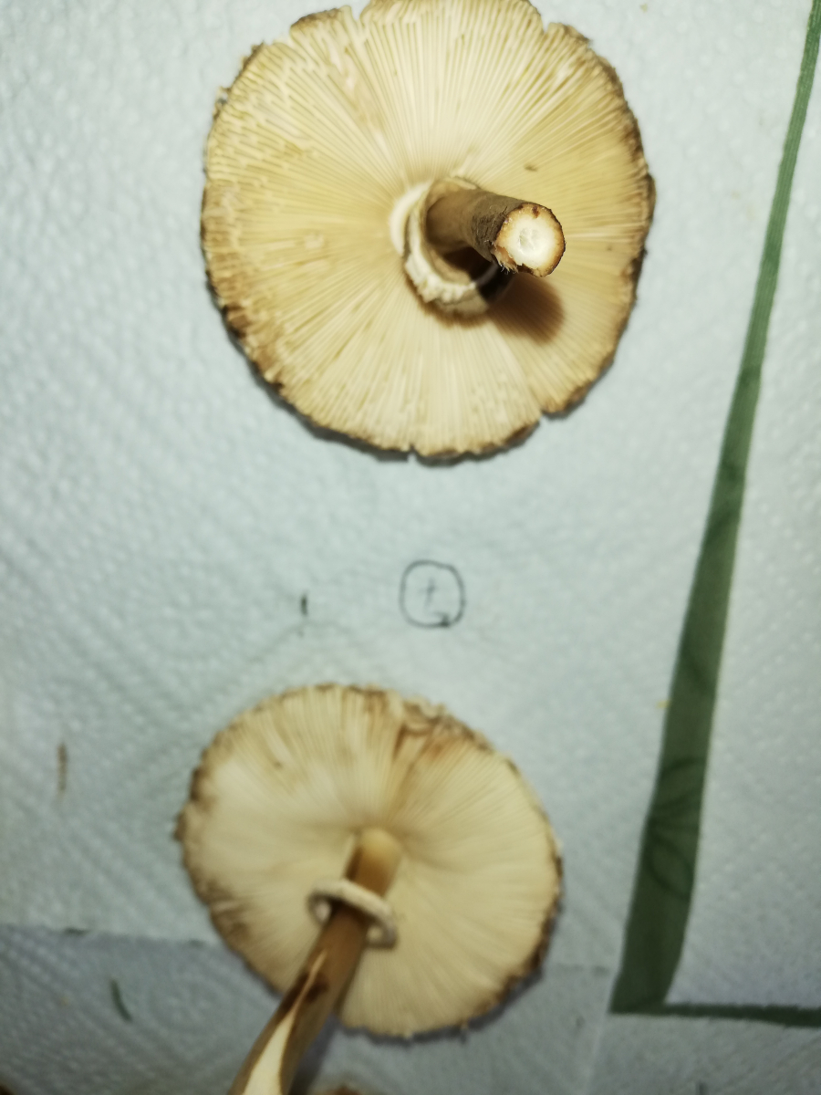 ich war heute im Wald und habe 14 Stück Pilze gefunden. Zuerst dachte ich, das sind alles Parasole. Allerdings ist mir dann aufgefallen, dass kein einziger Stiel die typische Natterung aufweist. Die Ringe sind alle verschiebbar, manche aber erst nach etwas "Bearbeitung".
