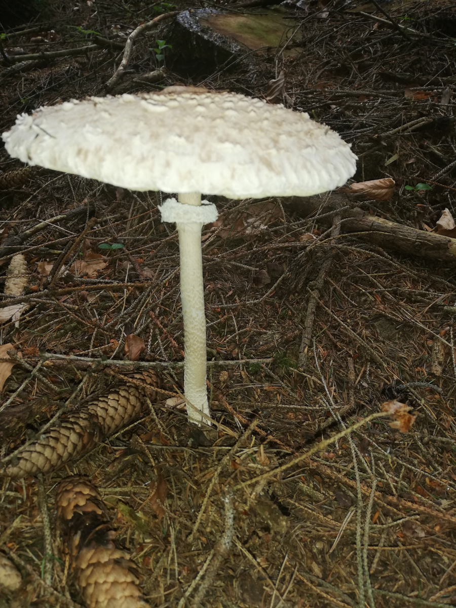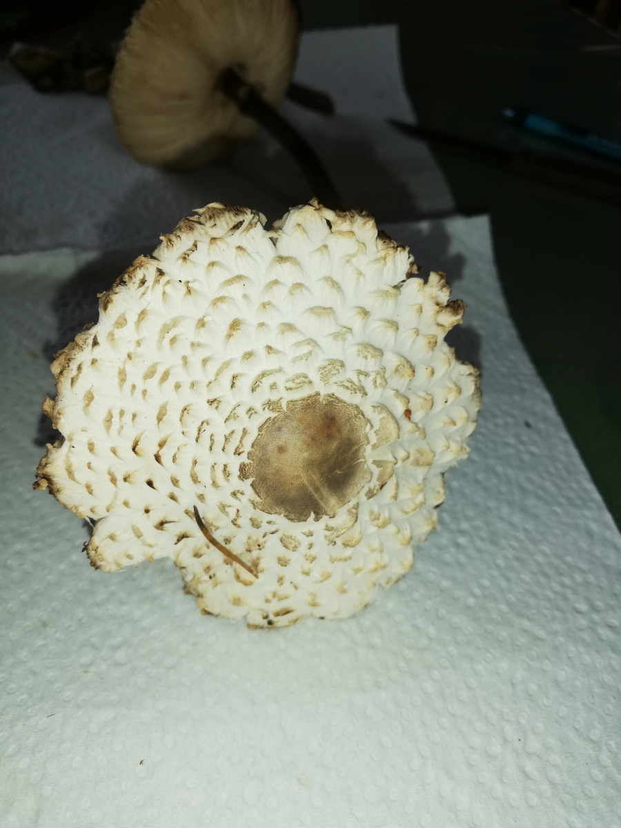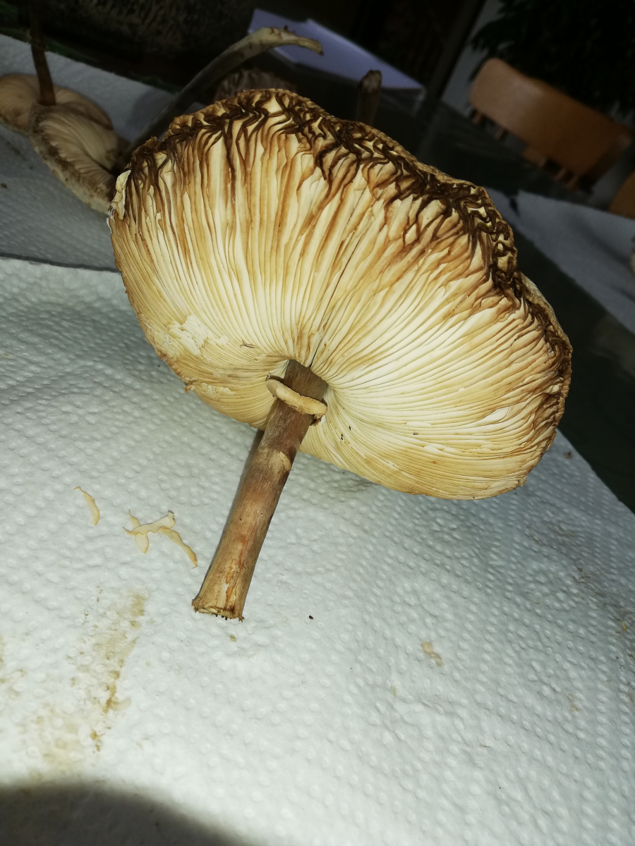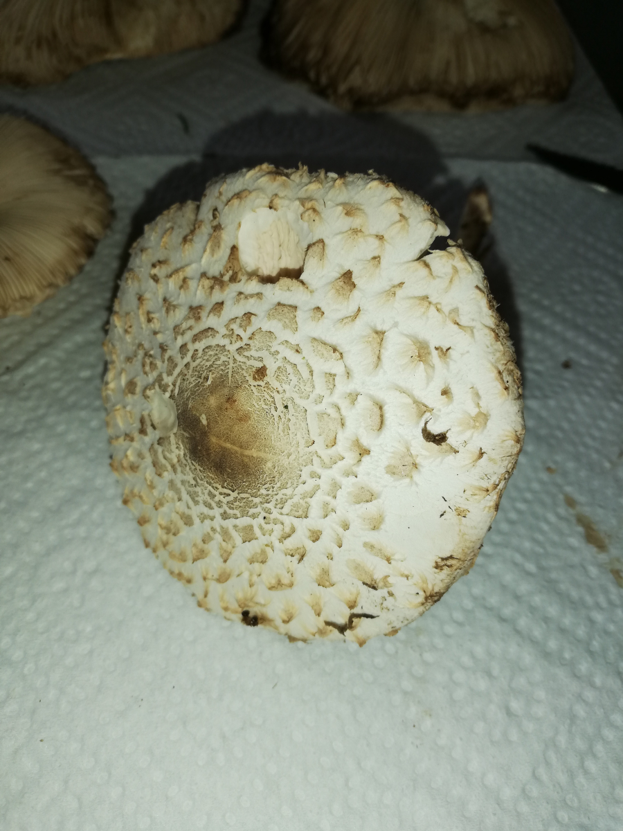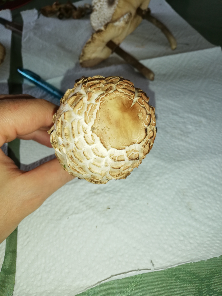 ich war heute im Wald und habe 14 Stück Pilze gefunden. Zuerst dachte ich, das sind alles Parasole. Allerdings ist mir dann aufgefallen, dass kein einziger Stiel die typische Natterung aufweist. Die Ringe sind alle verschiebbar, manche aber erst nach etwas "Bearbeitung".