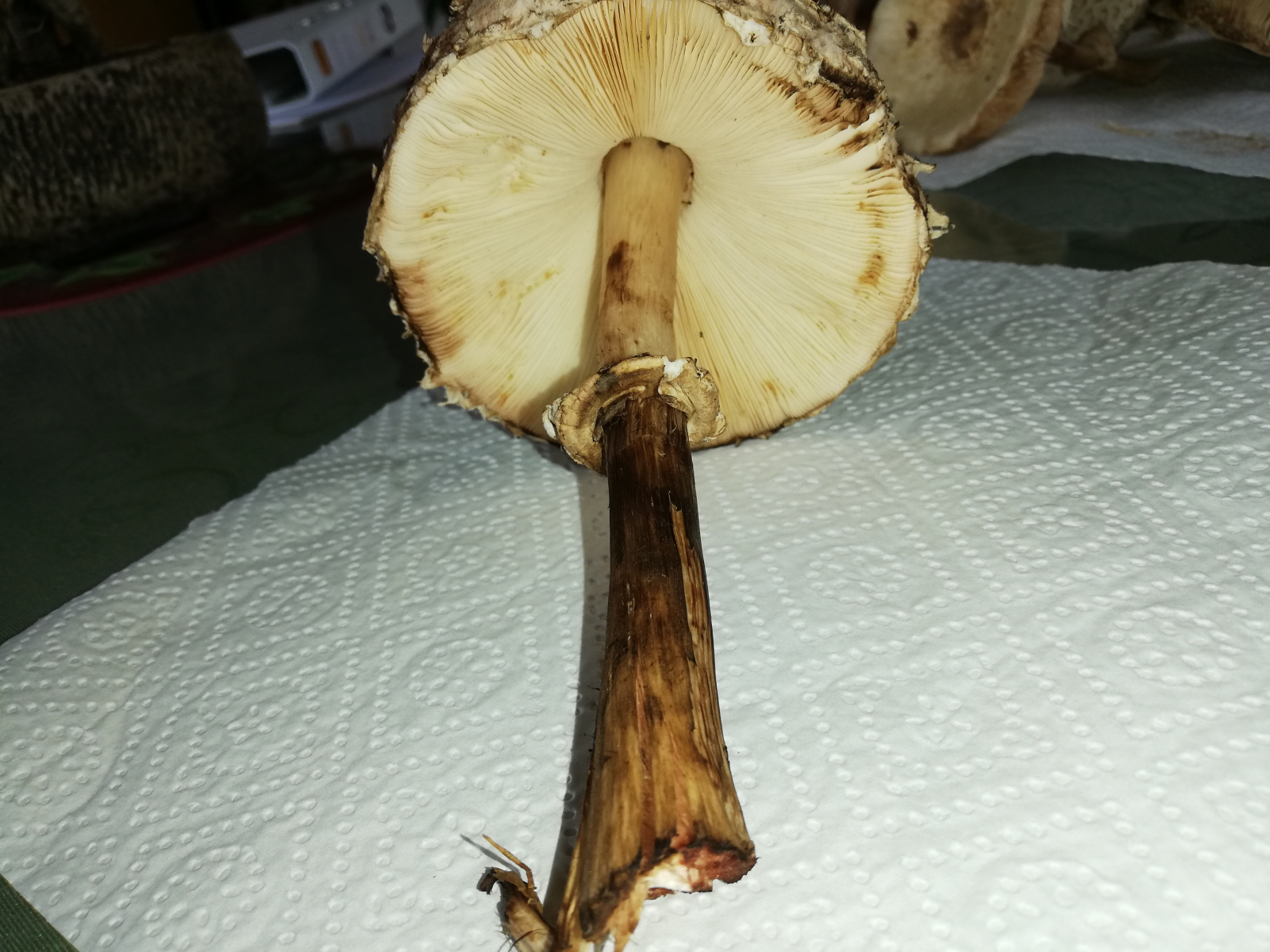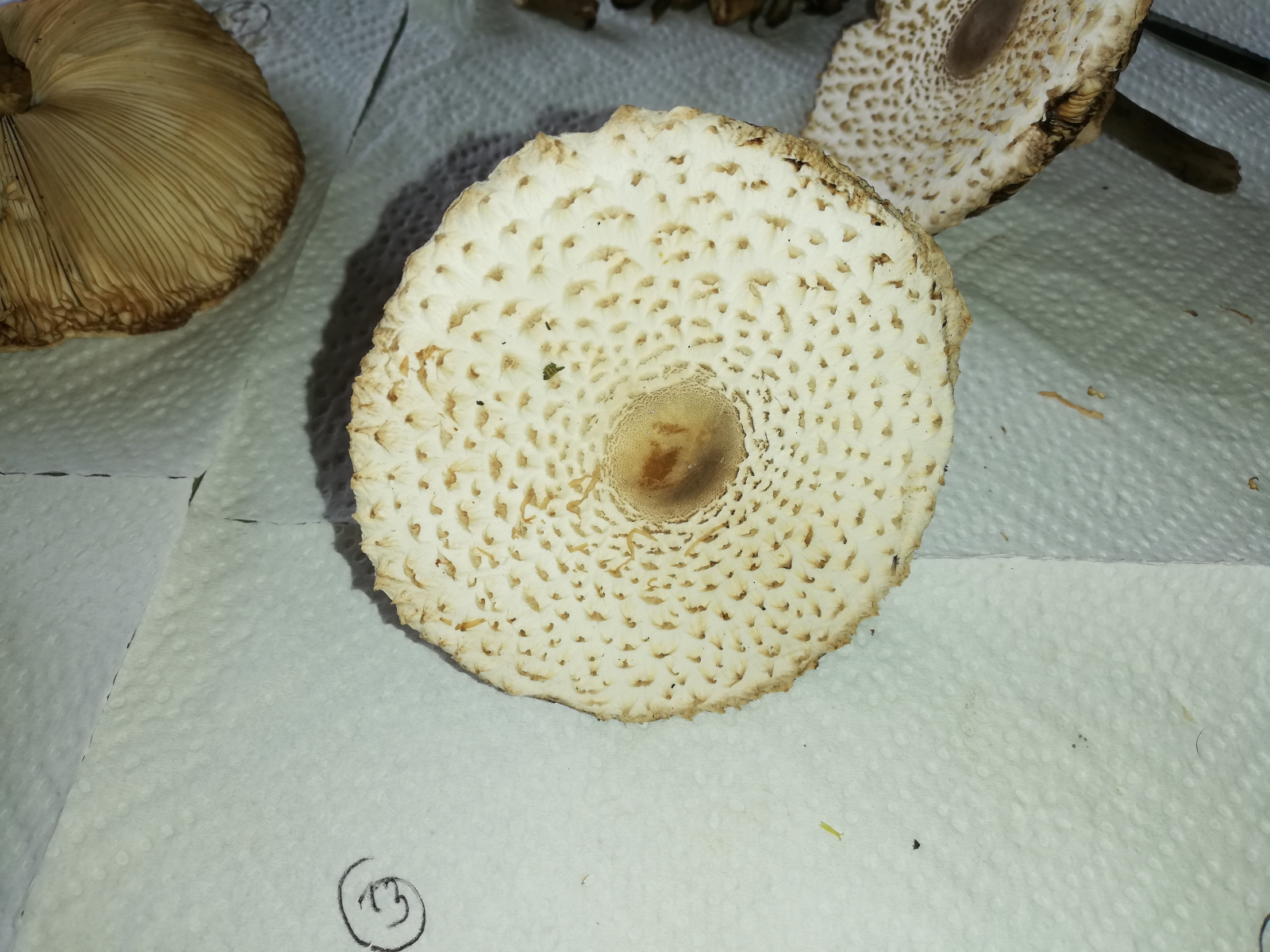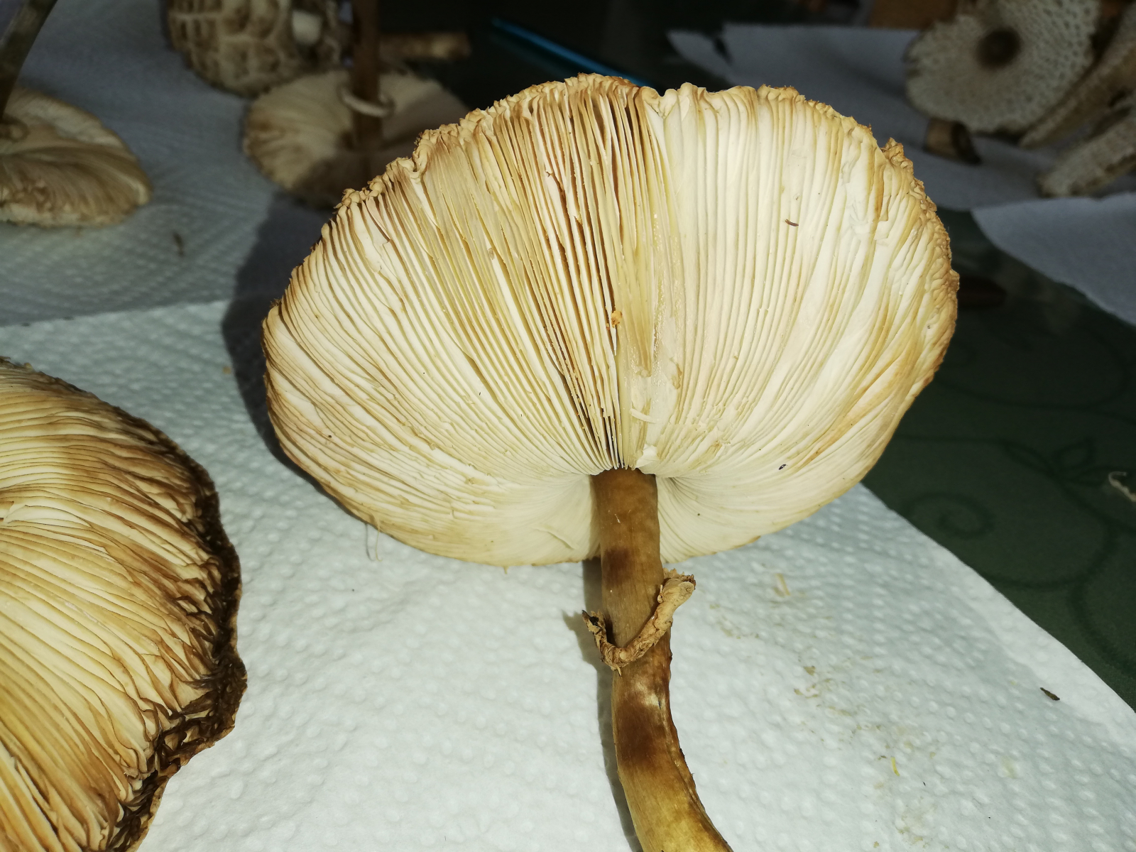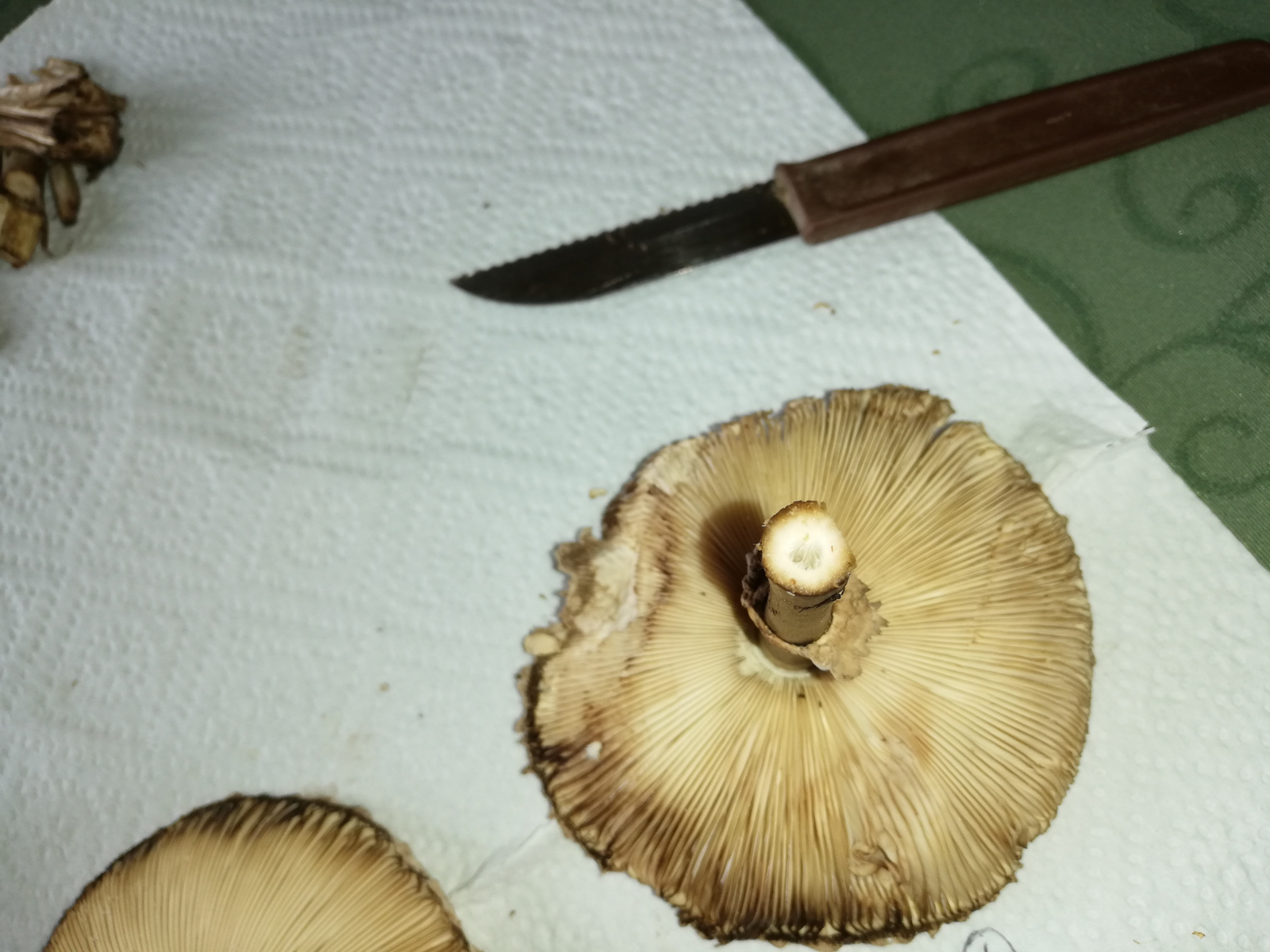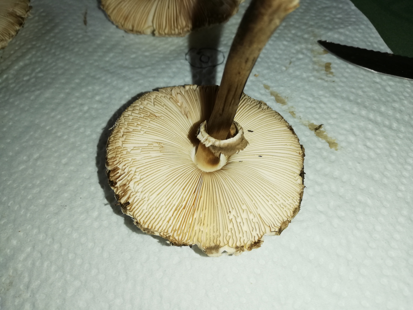 ich war heute im Wald und habe 14 Stück Pilze gefunden. Zuerst dachte ich, das sind alles Parasole. Allerdings ist mir dann aufgefallen, dass kein einziger Stiel die typische Natterung aufweist. Die Ringe sind alle verschiebbar, manche aber erst nach etwas "Bearbeitung".