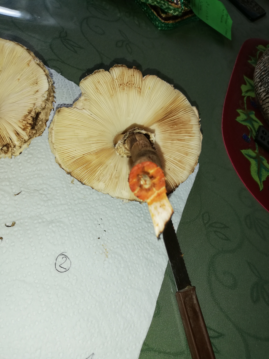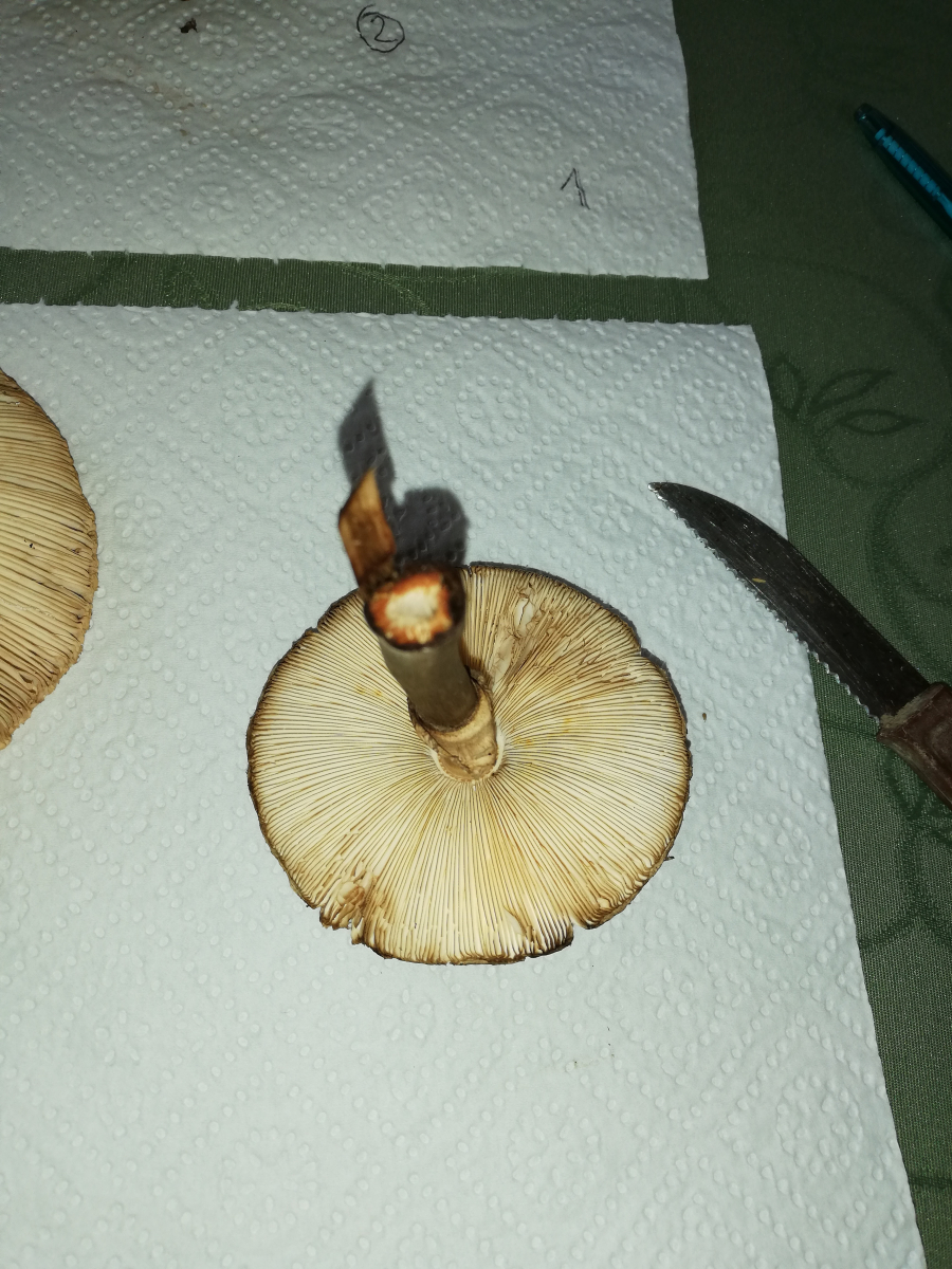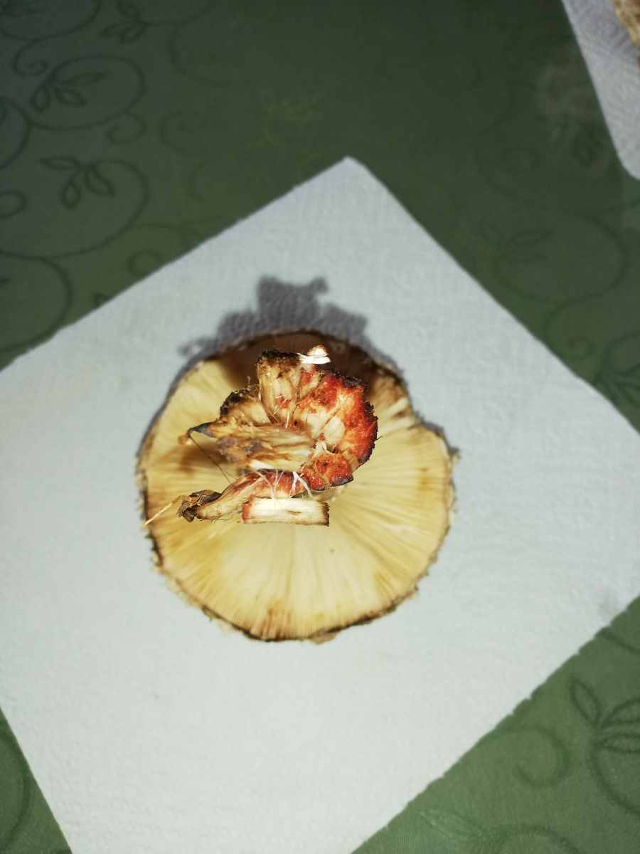 Der Geruch ist bei allen in etwa der gleiche, geht so in die Richtung nussig. Bei anschneiden des Stiels verfärbt sich das Fleisch entweder leicht gräulich oder ganz rot. Die rote Farbe dürfte ein Hinweis auf den Safranschirmling sein oder?