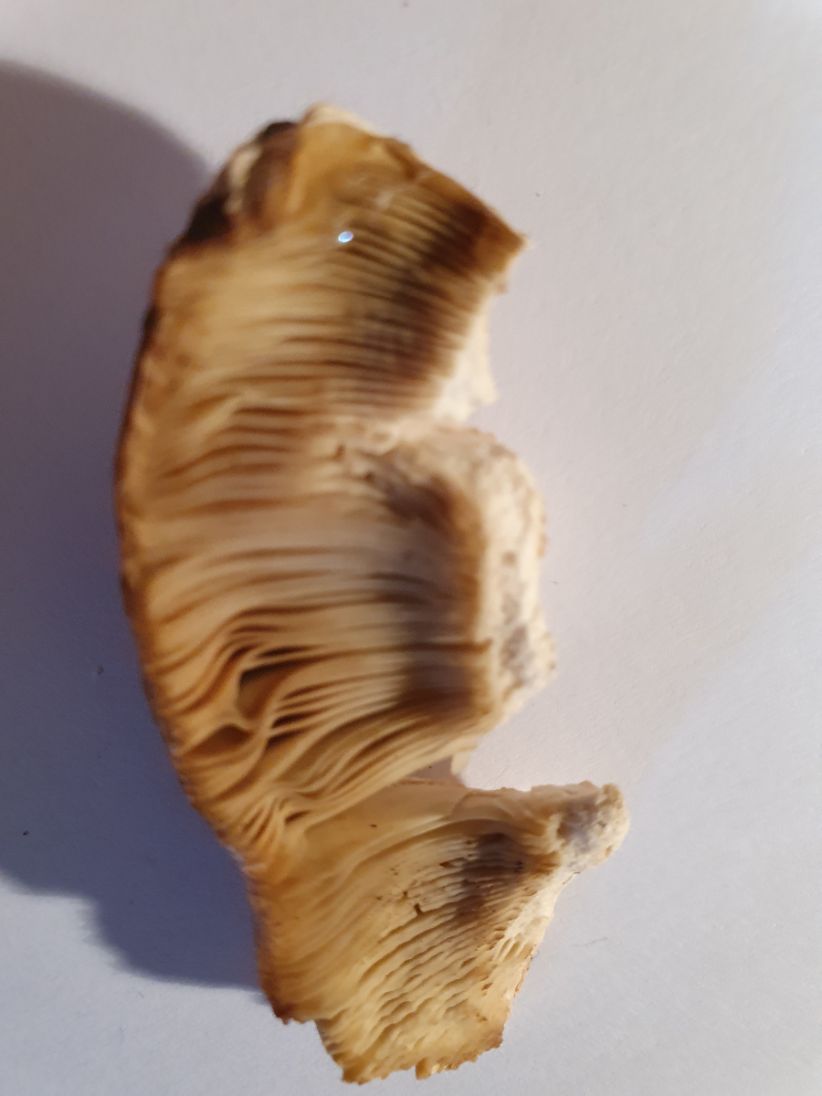 Ich kann mich aber noch sehr gut daran erinnern, das auch beim Frischpilz die Lamellen deutlich cremefarben waren. Mein Gedanke war, dass er gestern eher sogar noch unreif statt überaltert schien (dazu passen aus meiner Sicht auch der stark eingerollte Hut und die wenigen Sporen).