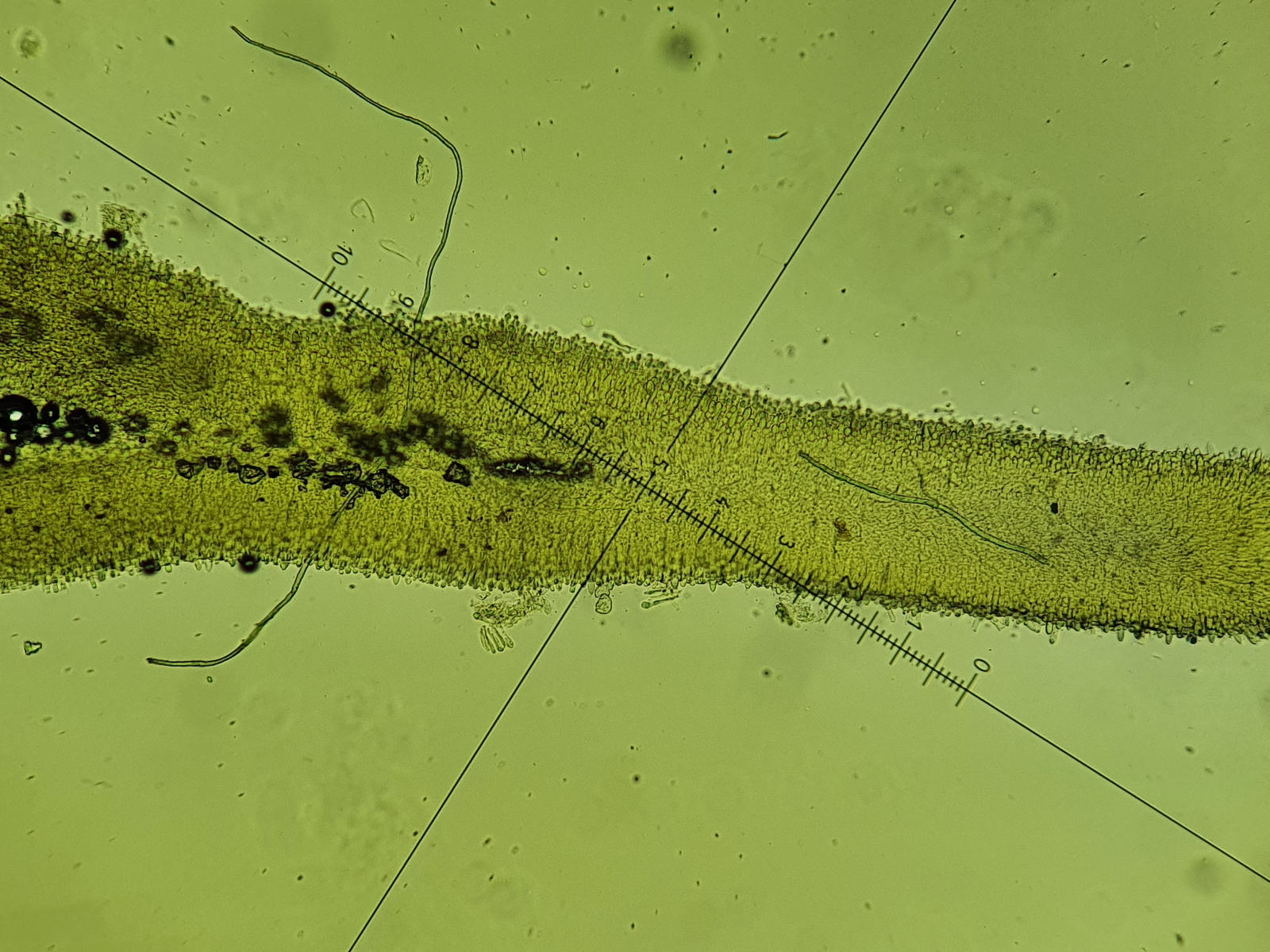 also ich sehe da Eisensulfat-positiv, damit ist der Frauentäubling raus aus dem Geschäft. Das dürfte eher eine Griseinae sein, erkennbar an den unseptierten, keuligen Dermatozystiden. Womit die Bestimmungsprobleme anfangen: Form der Haare, Sporenpulverfarbe (werden wir hier nicht bekommen), Sporenornament, Stärke der Eisensulfatreaktion...